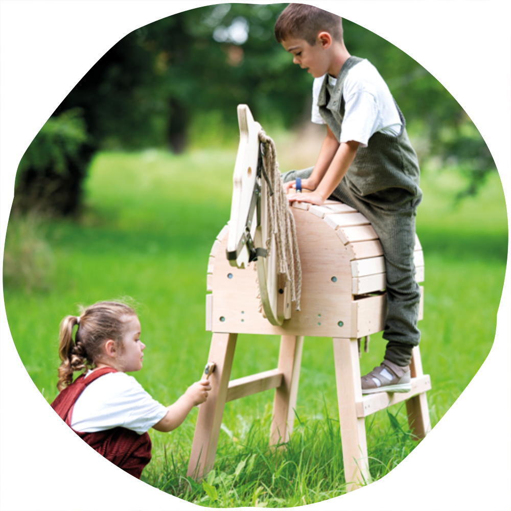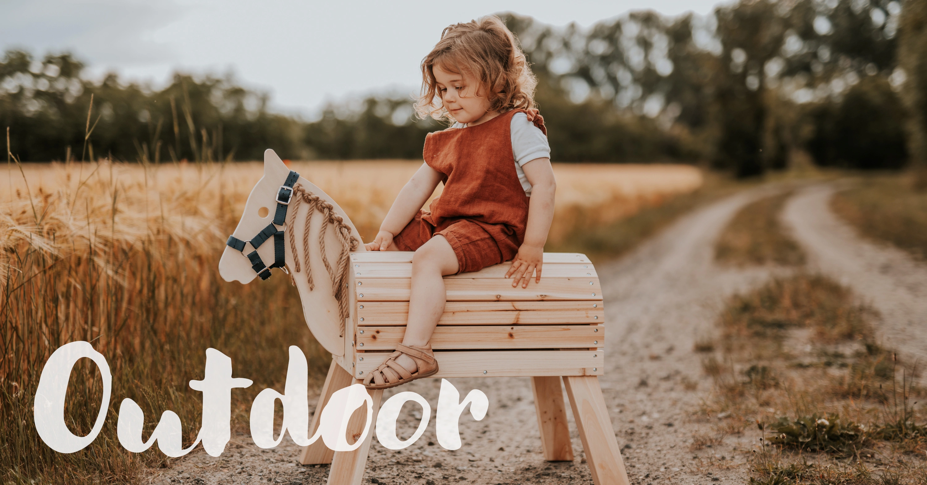 Bereich Outdoorspielzeug ist Holz der perfekte Partner für Spielzeug: Laufräder und Trikes, Matschküchen und Holzpferde machen Draußen eine gute Figur!