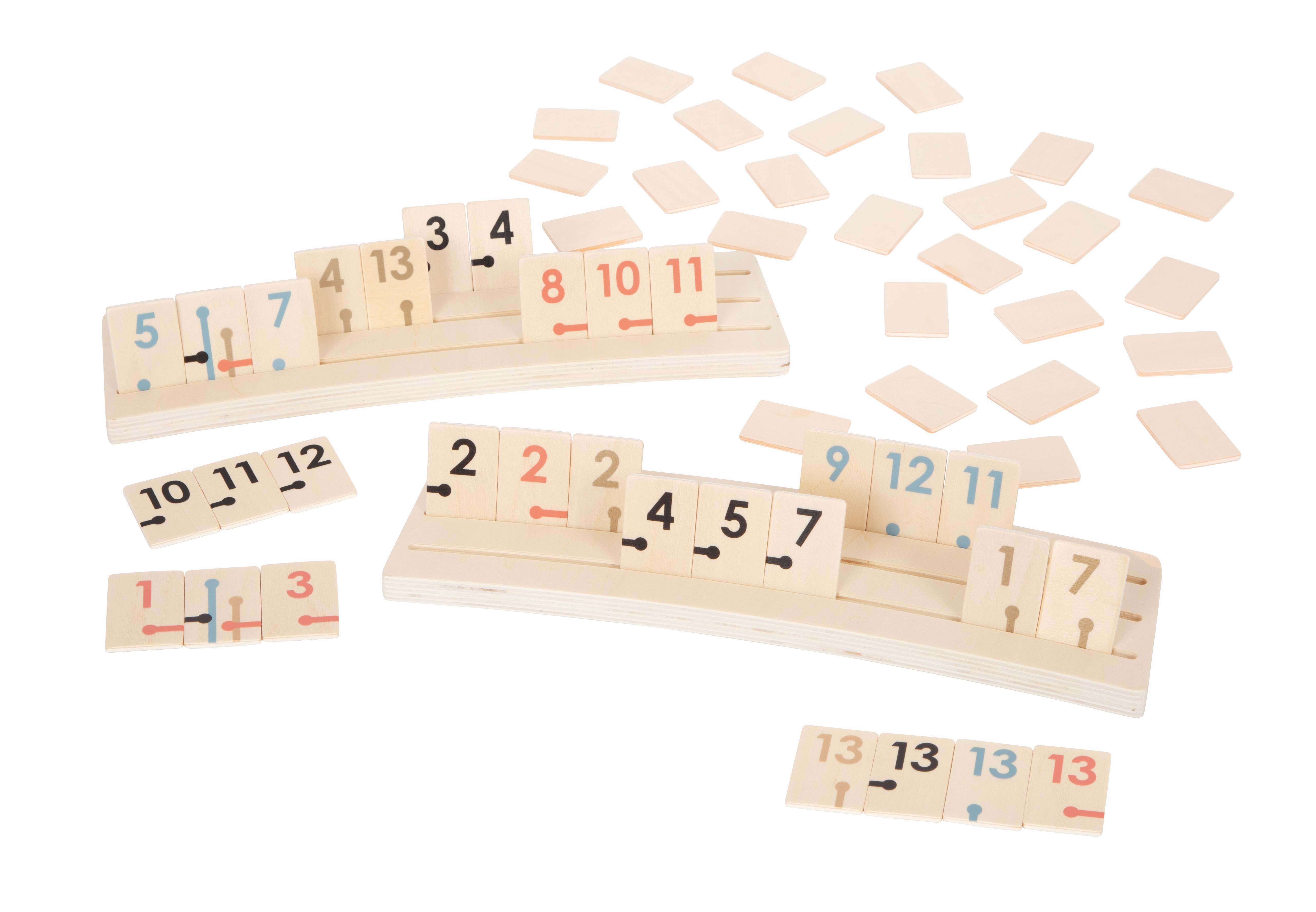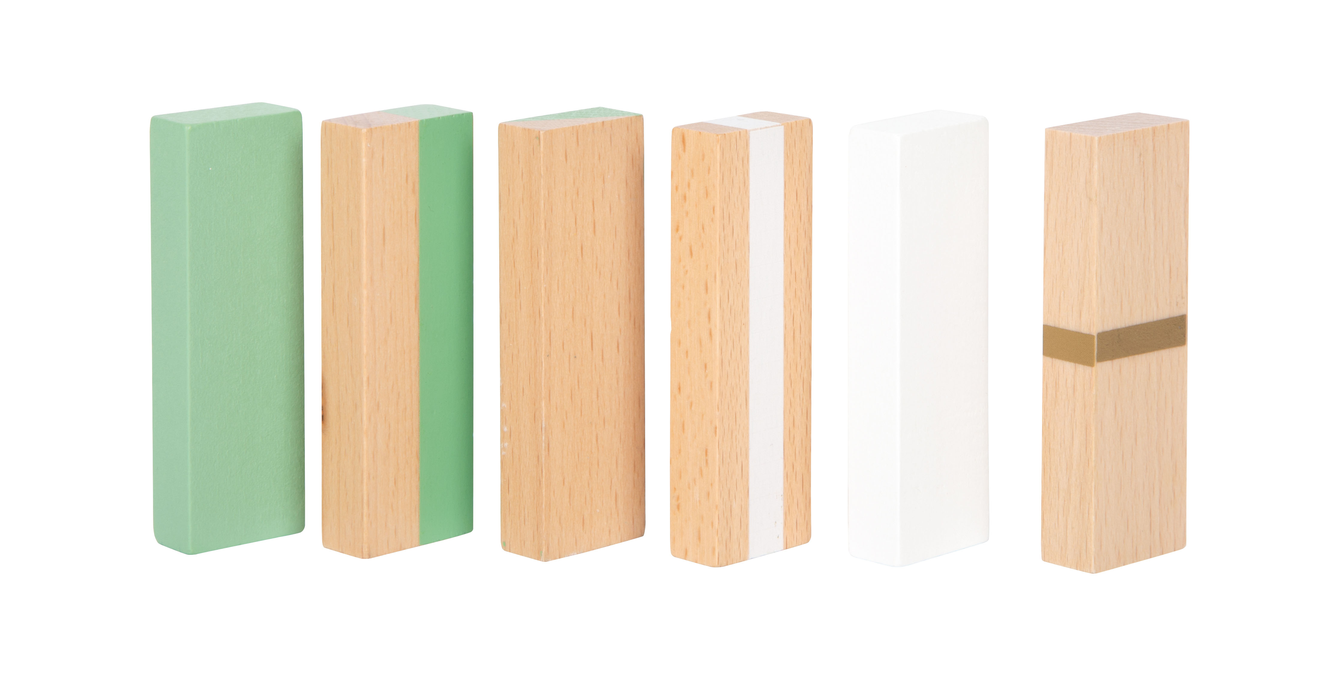 - 54 high-quality, solid wooden game blocks with various designs