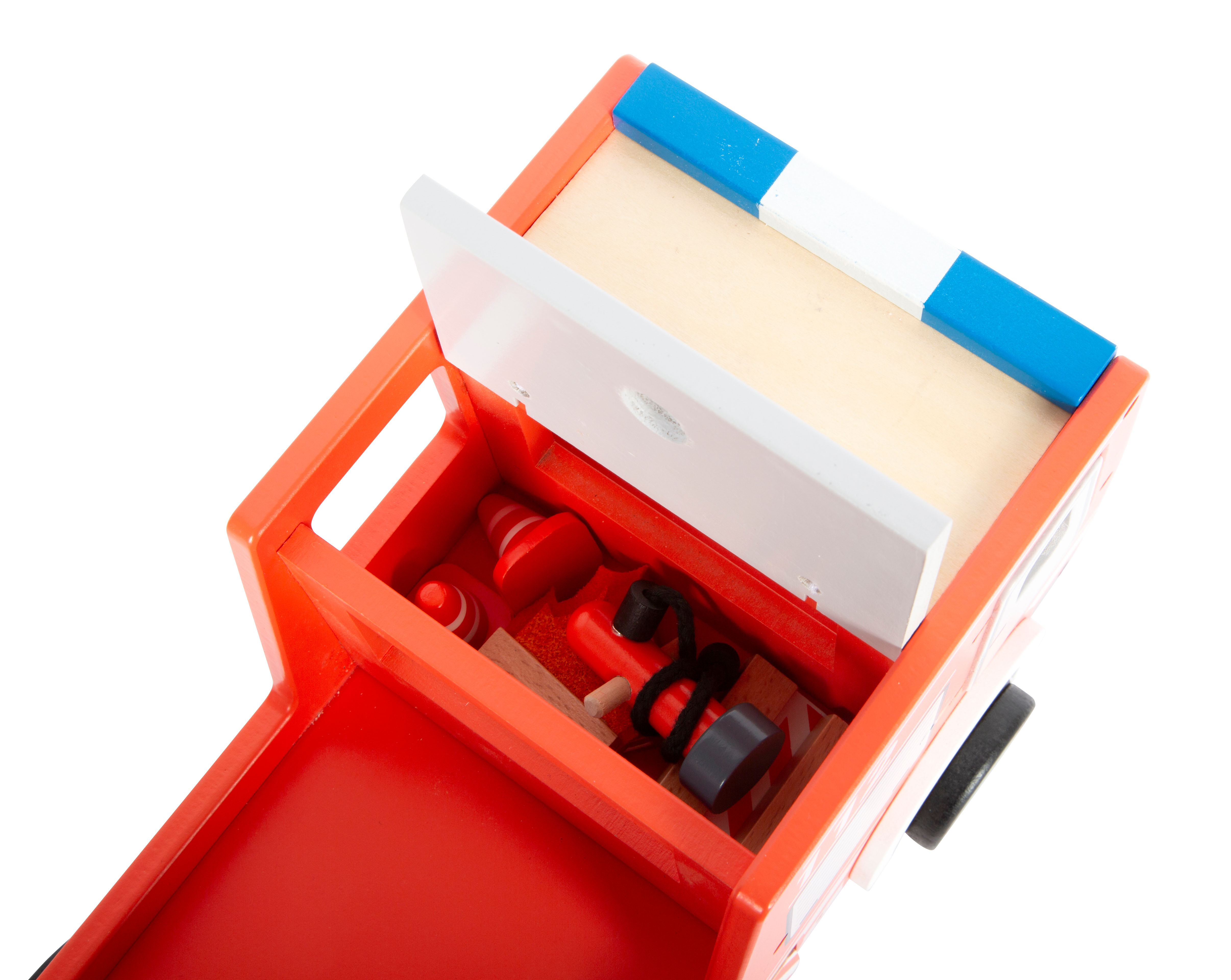 Ya sea para asegurar lugares de accidentes con vallas y pilones o para extinguir incendios con la manguera retráctil y el pulverizador de agua, el set de juego ofrece innumerables posibilidades para un juego de rol creativo sobre el tema de la extinción de incendios y el rescate. El diseño funcional y detallado garantiza una experiencia de juego especialmente auténtica.