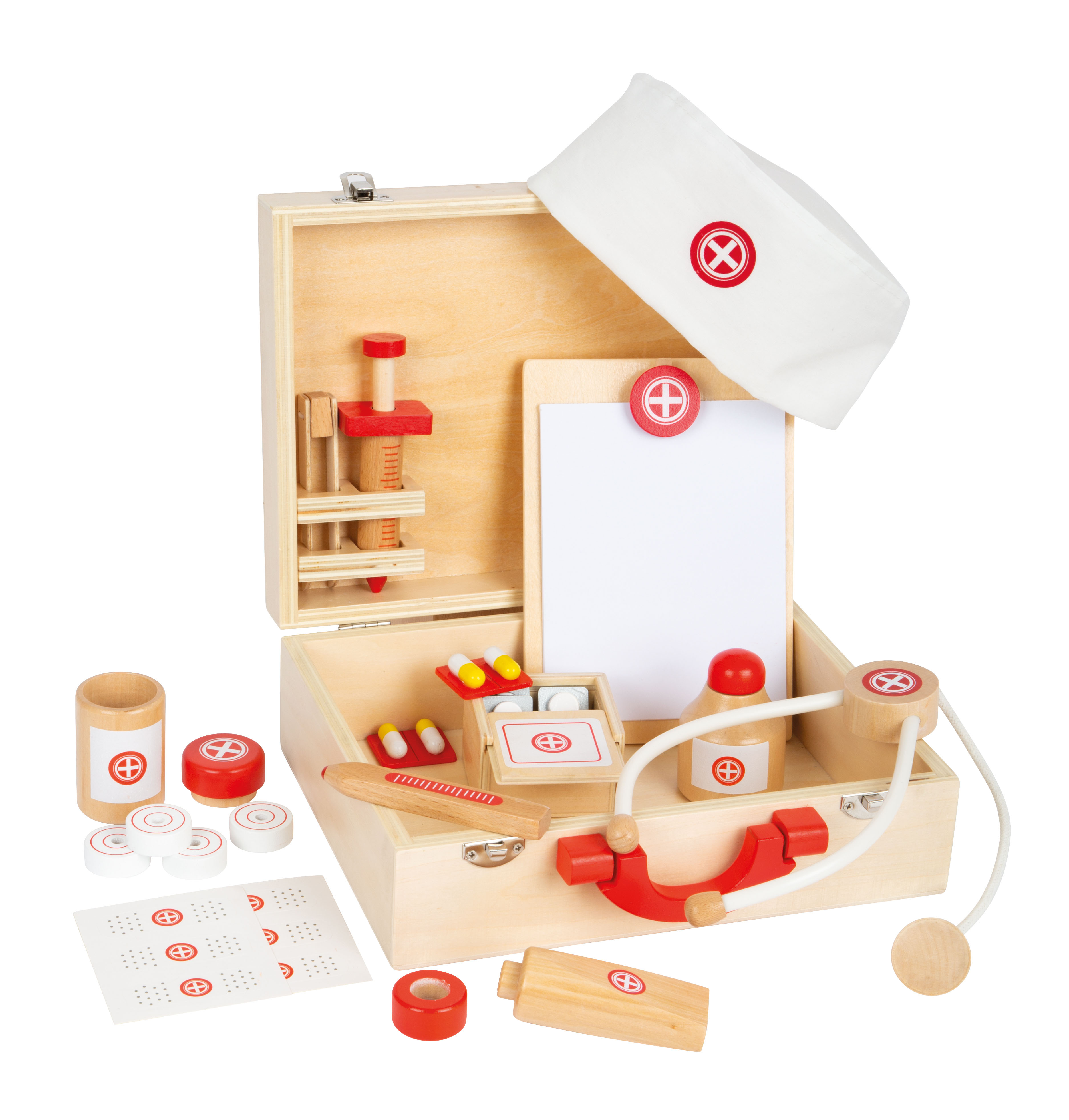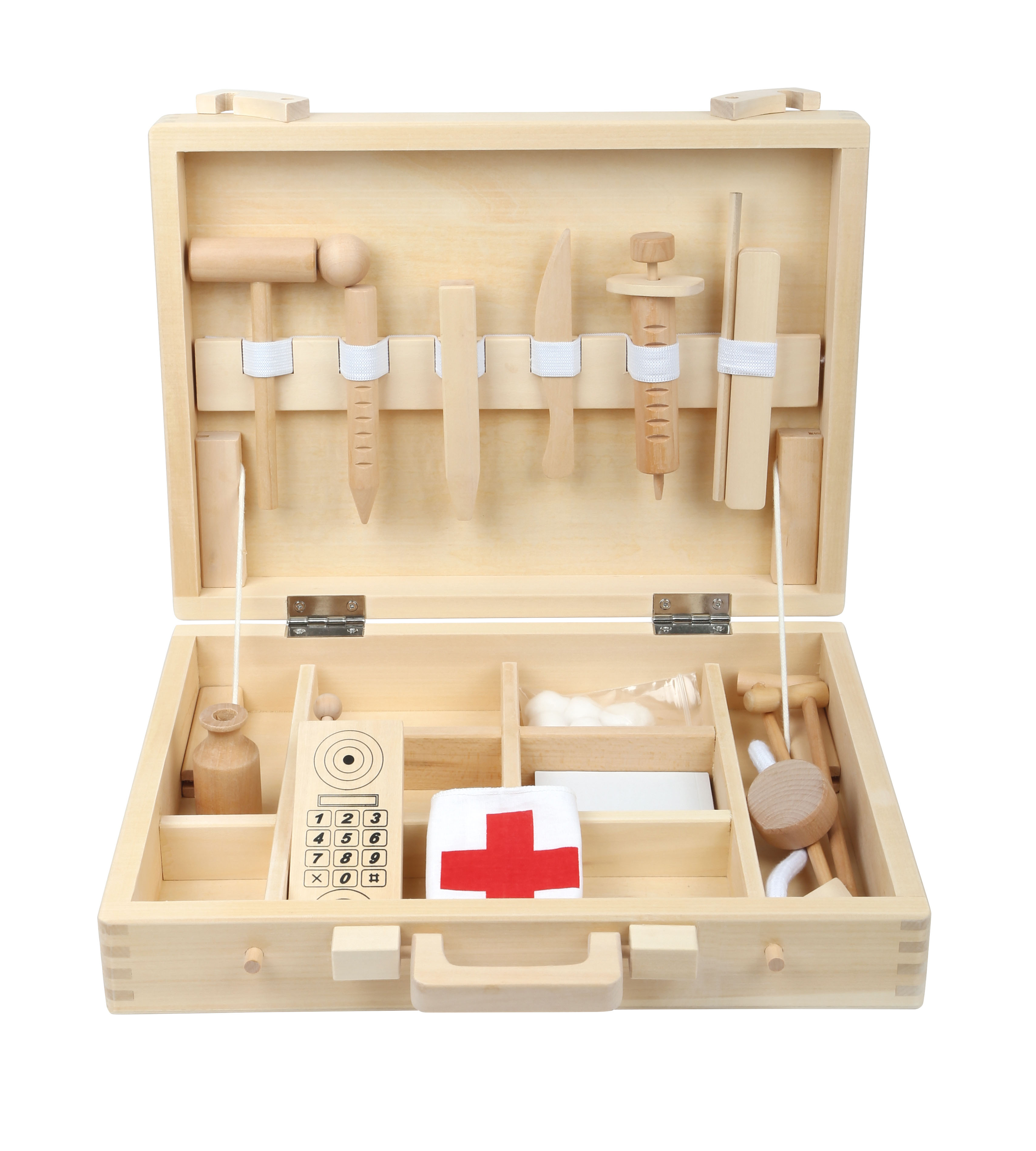 Avec une trousse de médecin en bois ou un sac médical, les enfants