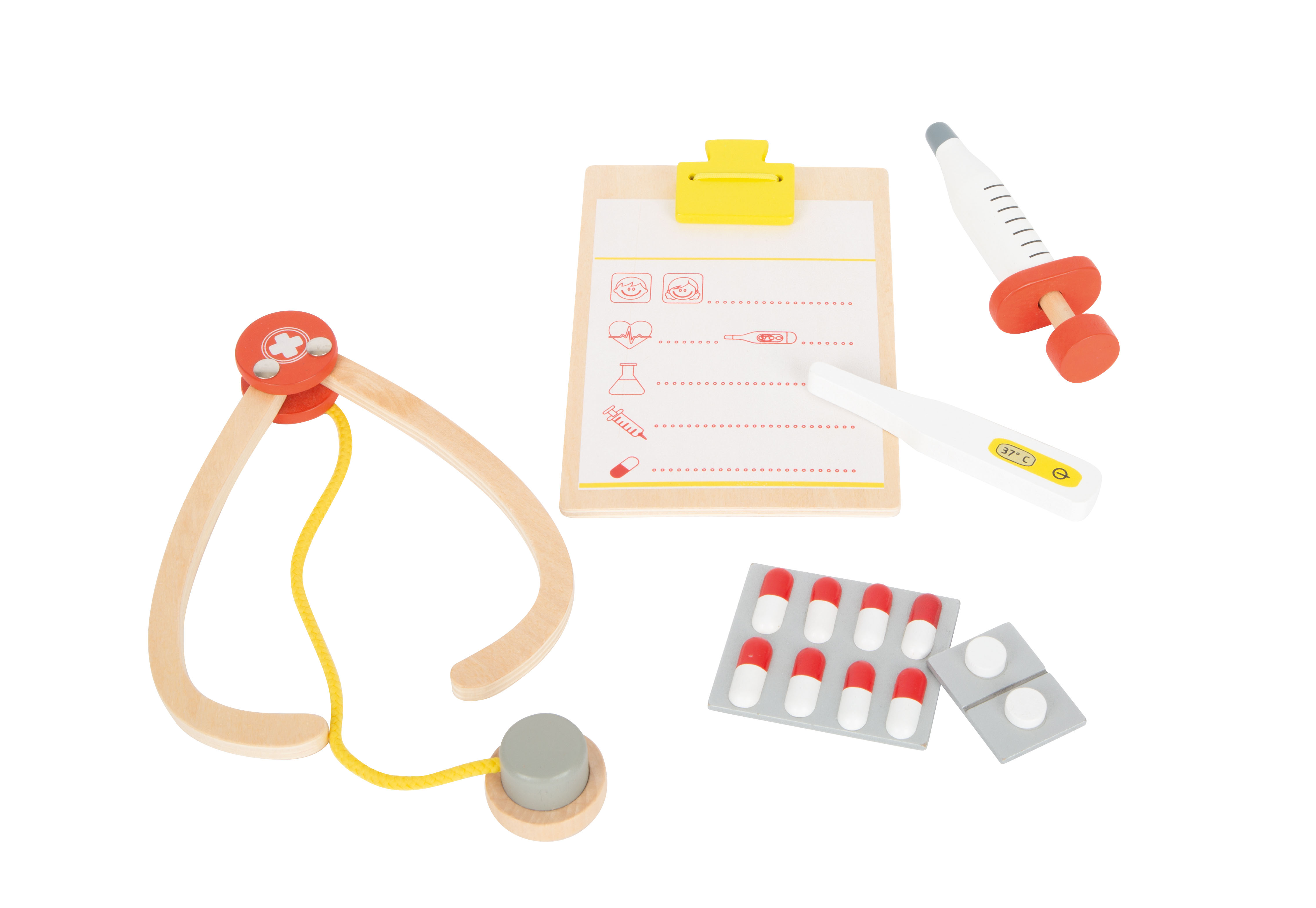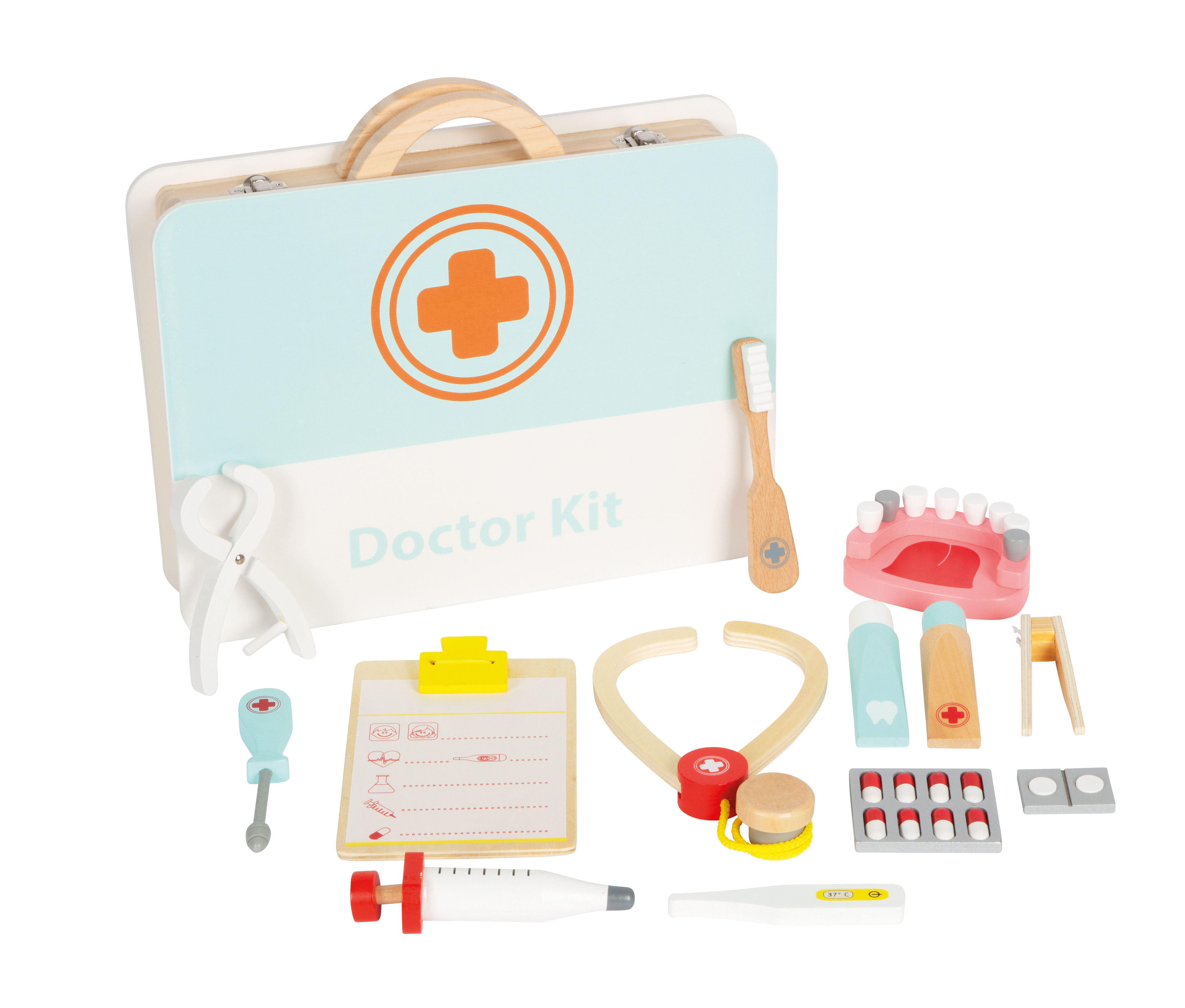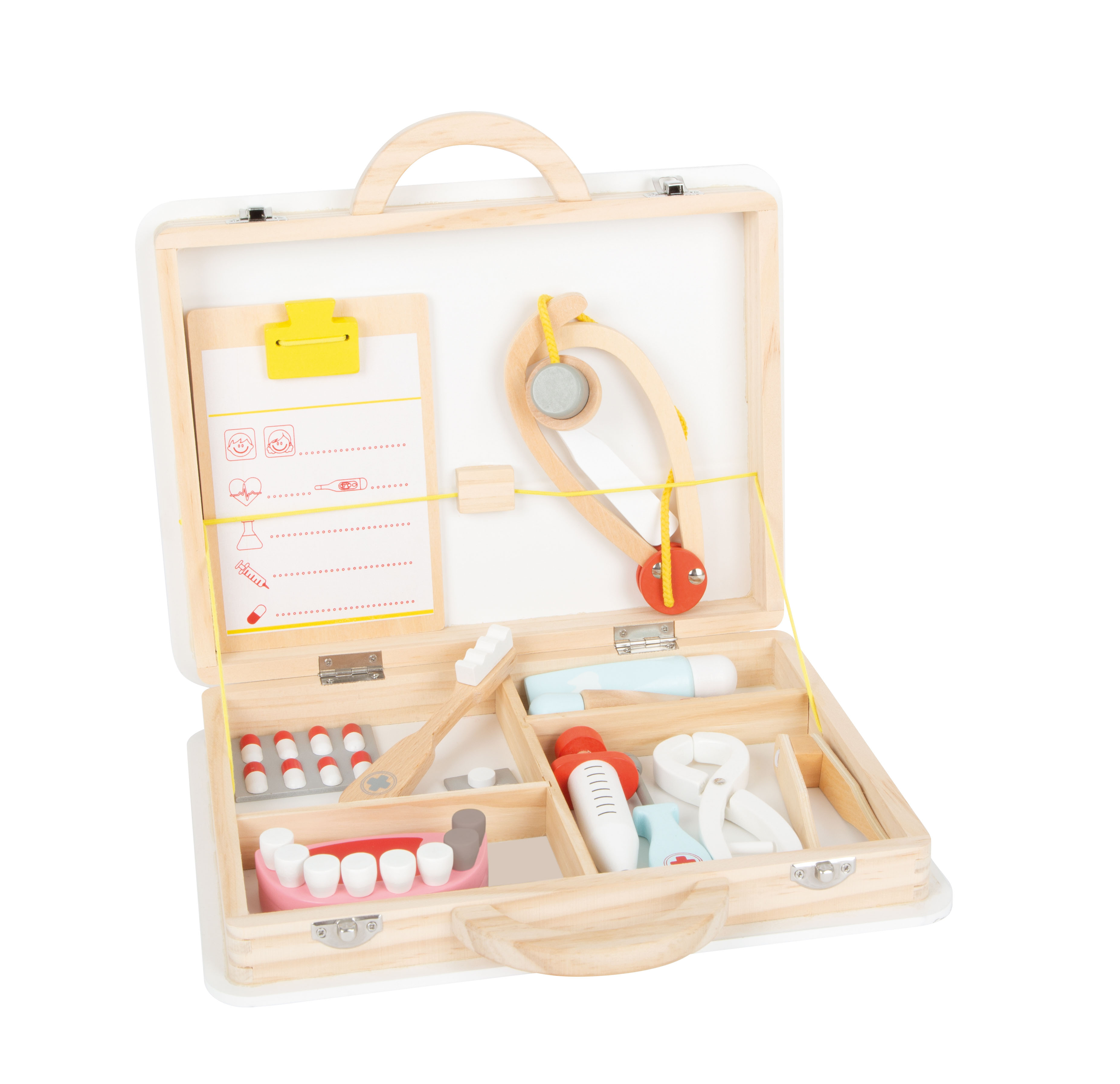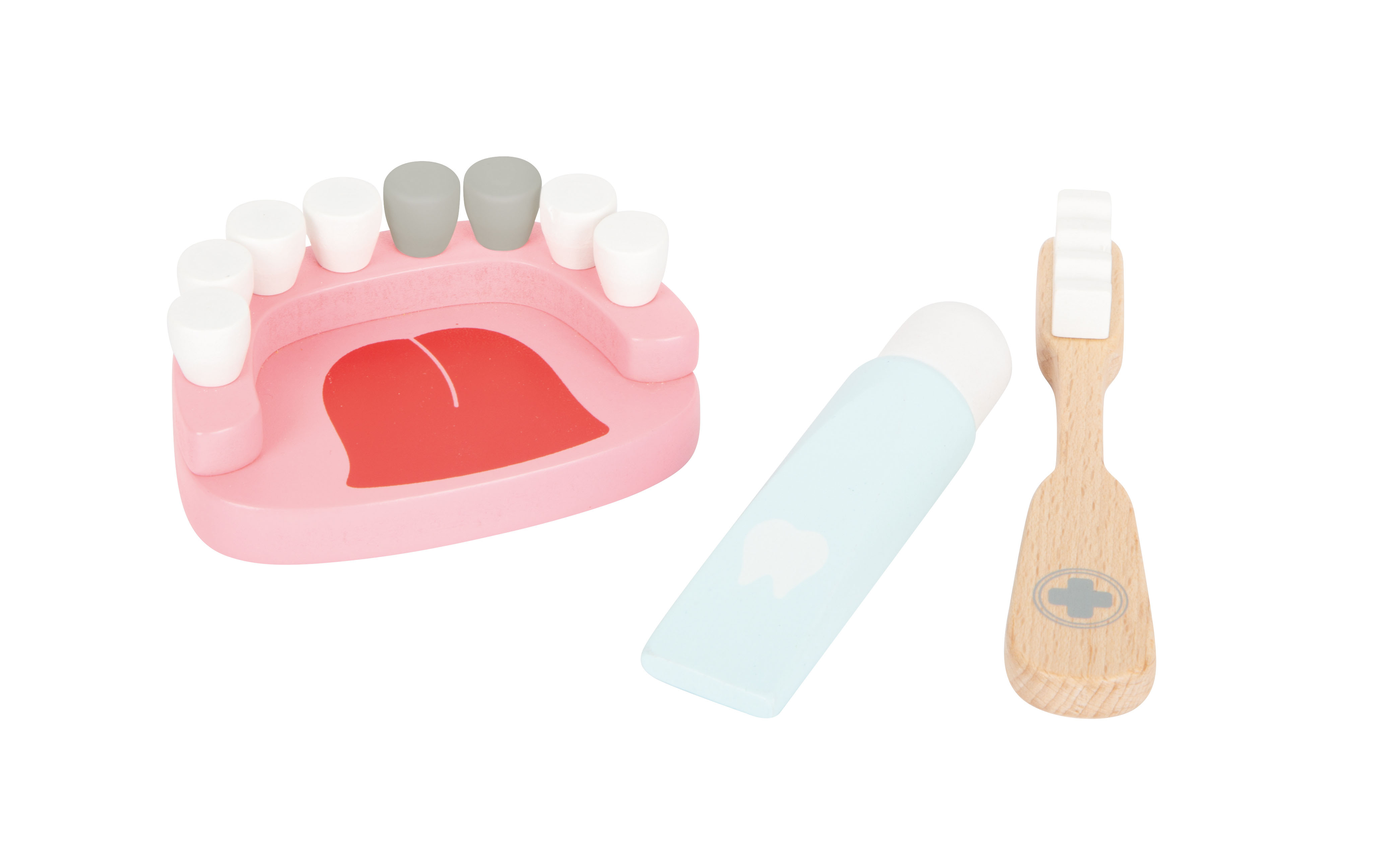 Parfait pour les jeux de rôle et la préparation de la visite du médecin (dentiste), car le jeu de rôle contient tout ce dont vous avez besoin pour soigner les patients dans un jeu de rôle actif ! Jouer le rôle d'un médecin et s'occuper des patients stimule la créativité et renforce également la confiance en soi des enfants. Les accessoires complets sont rangés dans la spacieuse caisse en bois. Ce décor permet d'ouvrir le cabinet (dentaire) à domicile.