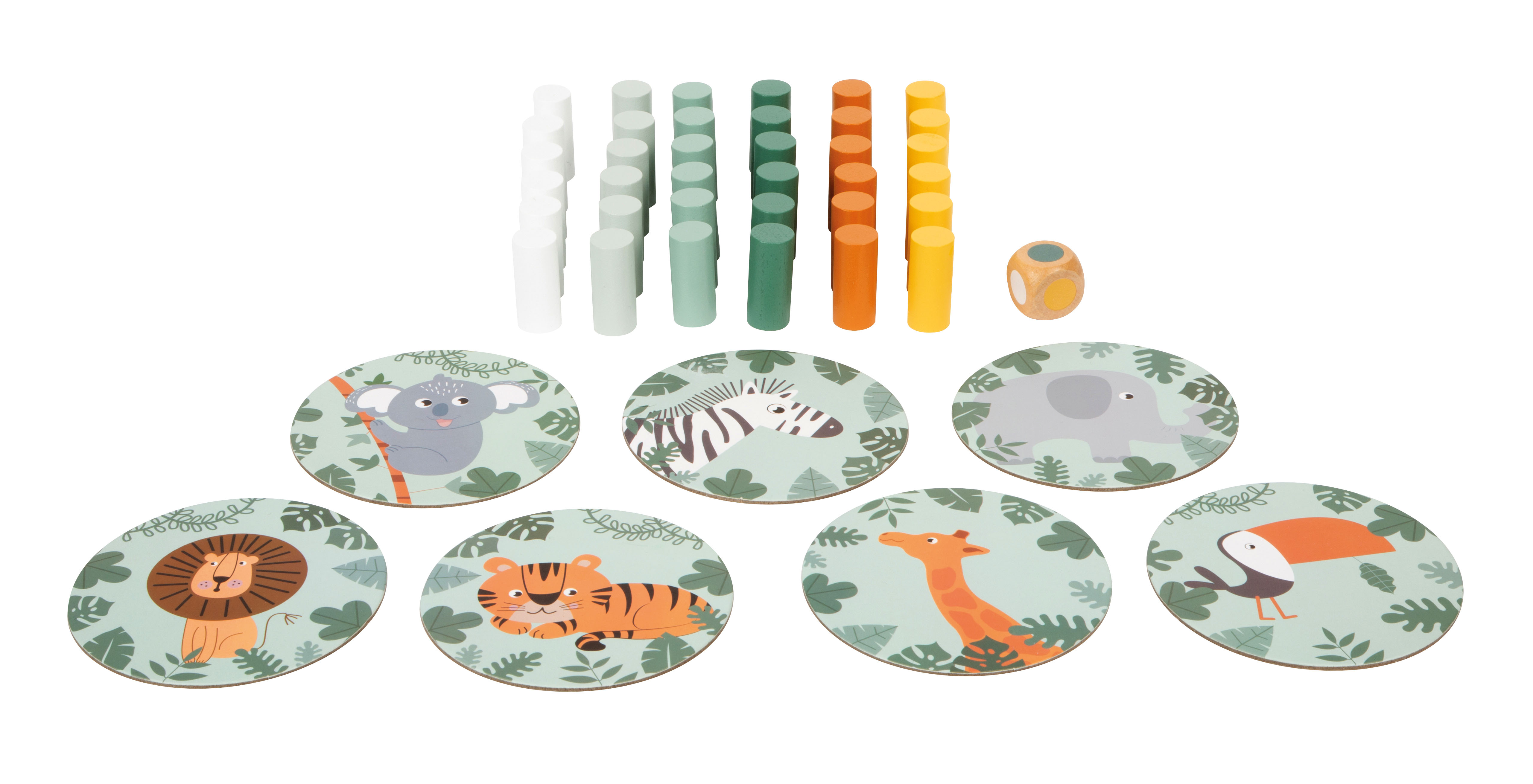 Un jeu de société classique au look safari moderne qui ravira toute la famille et qui est particulièrement attrayant pour les enfants grâce à de jolis motifs du monde animal. En outre, la concentration, la motricité et la coordination œil-main sont entraînées de manière ludique. Qui prouve qu'il a la main sûre ?