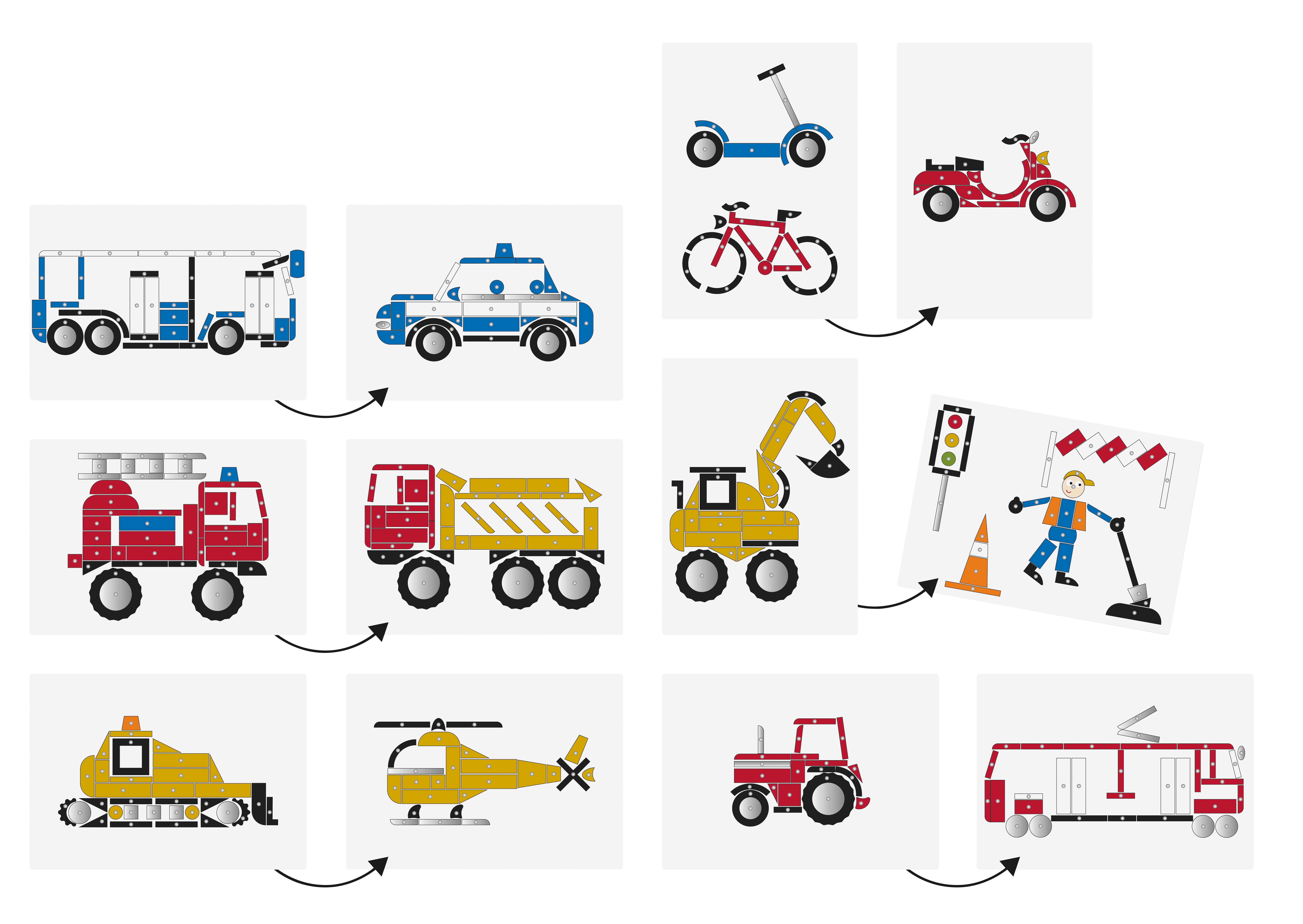 - umfangreiche Auswahl an Motiv-Elementen zum Thema Mobilität, Fahrzeuge und Szenen aus dem urbanen Umfeld