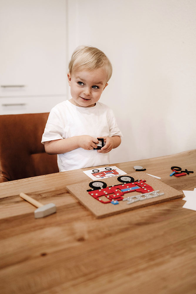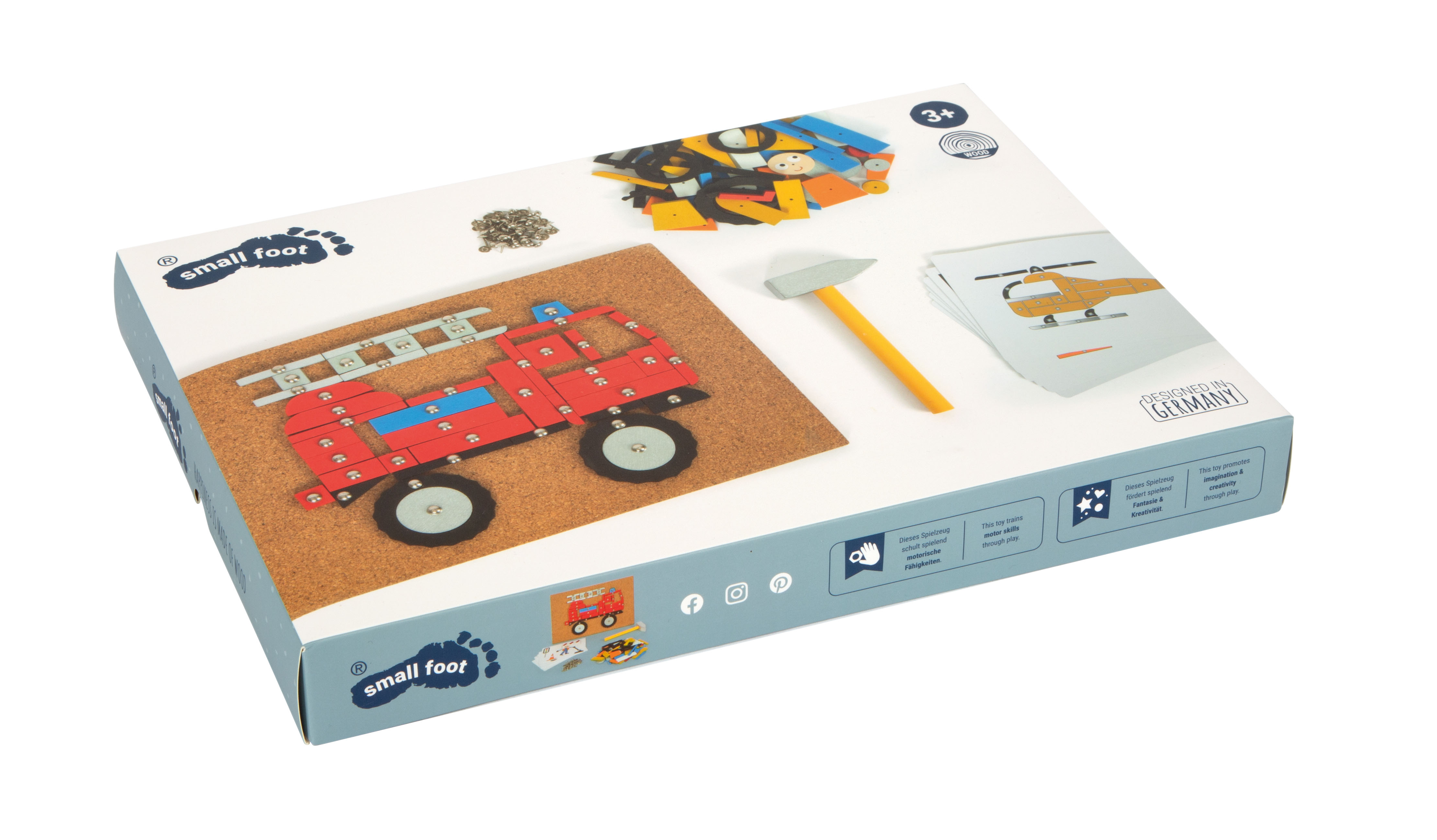 Klassisches Nagelspiel in modernen Farben und zeitgemäßen Motiven. Dabei steht die Entscheidung frei, eigene Kreationen zu verwirklichen oder sich an den Bildvorlagen zu orientieren. Beim Erstellen eigener Bilder wird die Kreativität gefördert. Gleichzeitig trainieren Kinder mit Hämmerchenspielen ihre Geschicklichkeit, lernen Farben und Formen besser kennen und verbessern ihre visuelle Wahrnehmung. Vorteil: Hämmmerchenspiele sind für Kinder unterschiedlichen Alters geeignet und bleiben lange spannend.