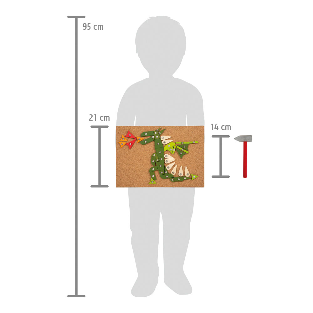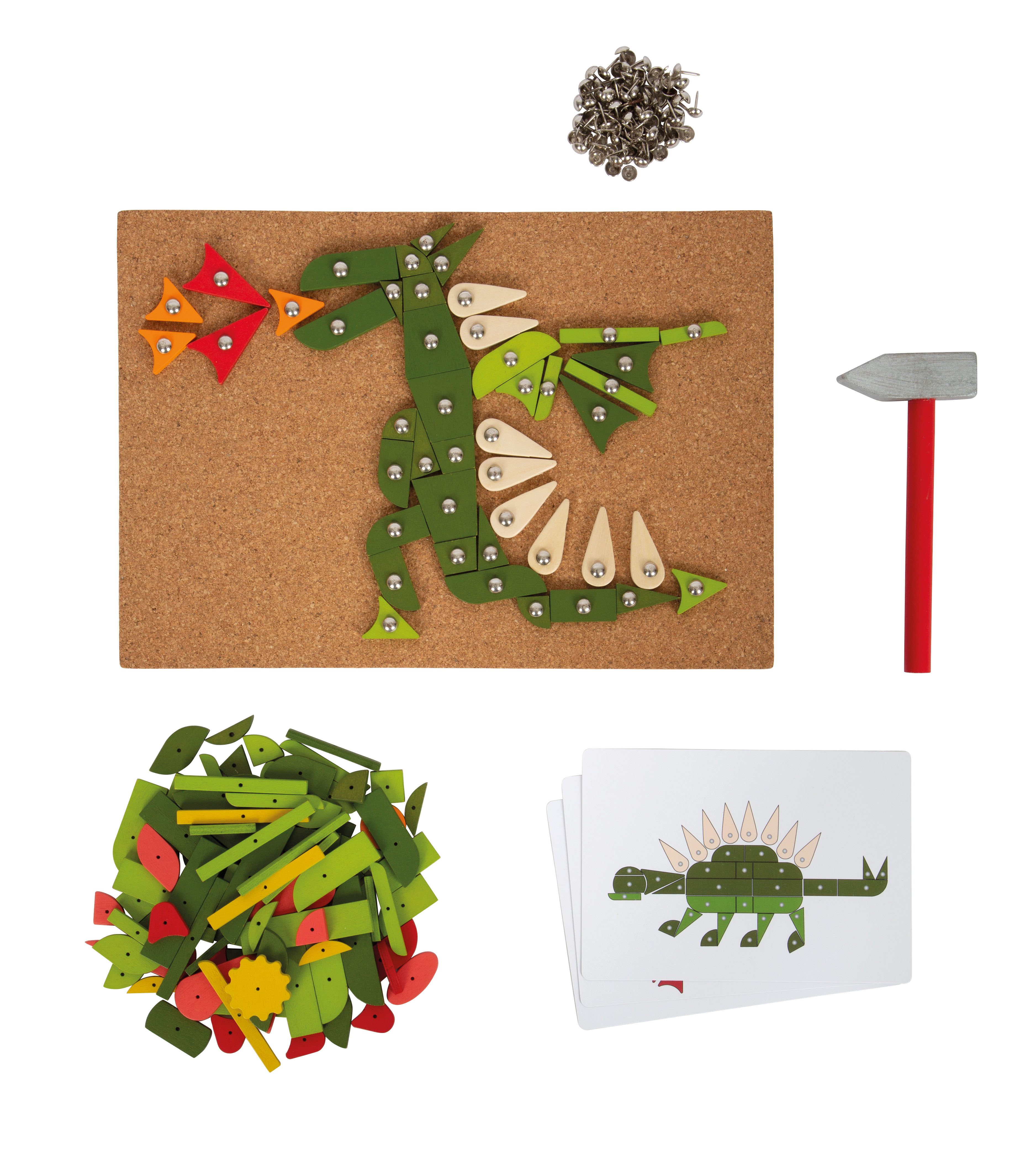 Klassisches Nagelspiel in modernen Farben, mit dem fantasievolle Pflanzen, Lebewesen, Muster, Dinos, Fabelwesen und vieles mehr erstellt werden können. Dabei steht die Entscheidung frei, eigene Kreationen zu verwirklichen oder sich an den Bildvorlagen zu orientieren. Beim Erstellen eigener Bilder wird die Kreativität gefördert. Gleichzeitig trainieren Kinder mit Hämmerchenspielen ihre Geschicklichkeit, lernen Farben und Formen besser kennen und verbessern ihre visuelle Wahrnehmung. Vorteil: Hämmmerchenspiele sind für Kinder unterschiedlichen Alters geeignet und bleiben lange spannend.