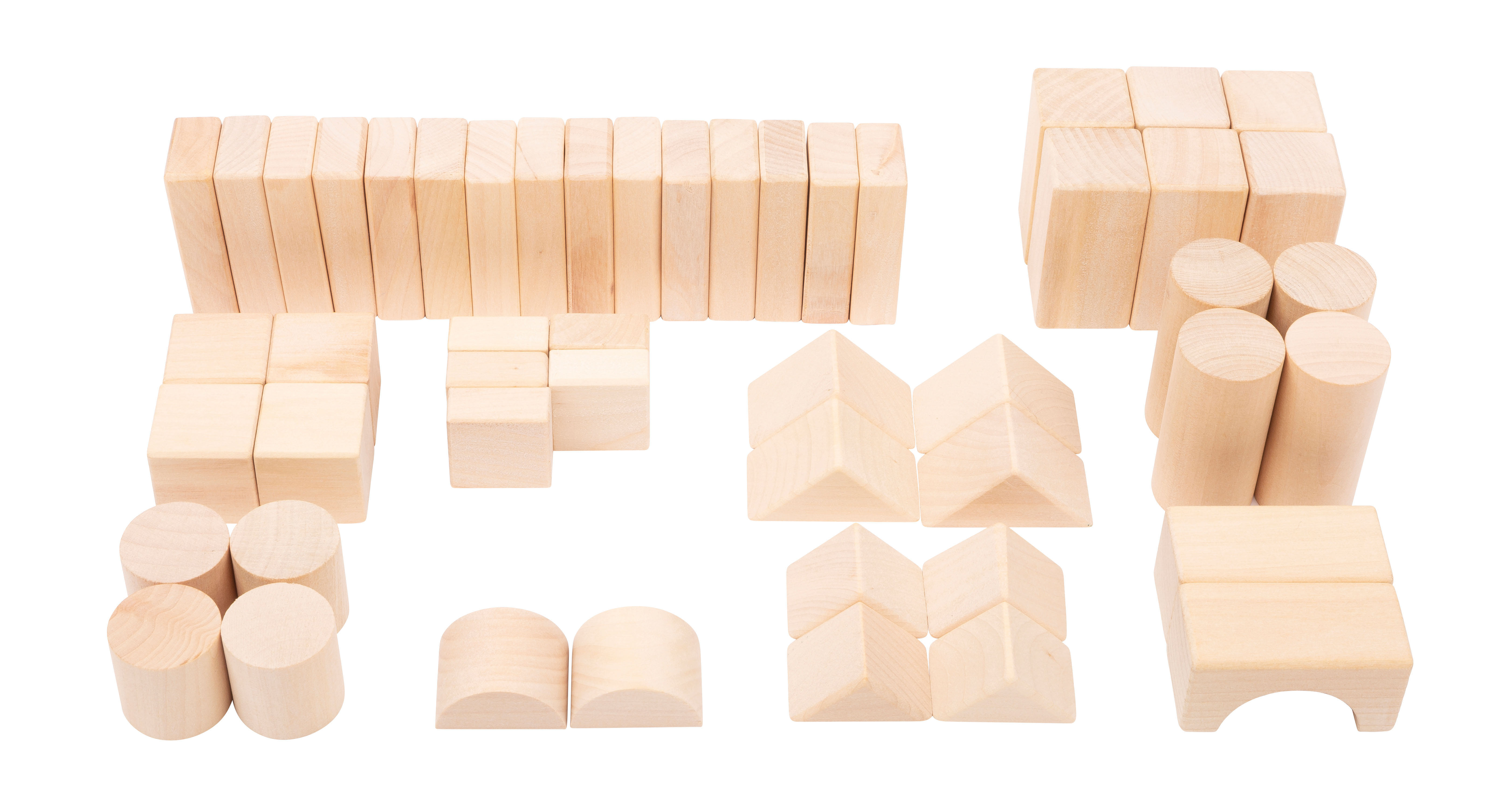 - verschiedene Formen wie Zylinder, Quader, Bögen und Würfel schulen die geometrische Formerkennung