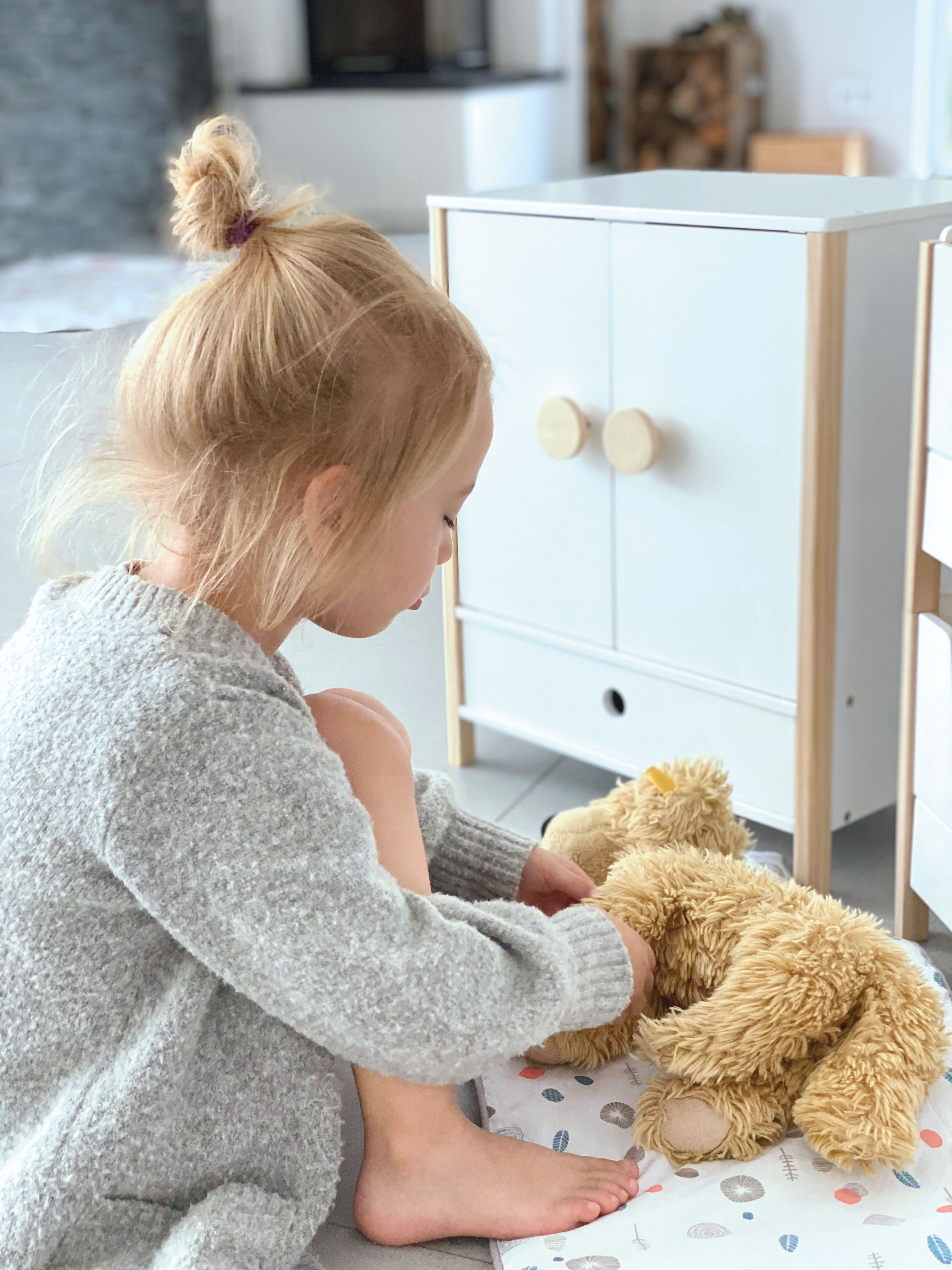 - La linearità scandinava, i colori sobri e gli elementi di design ricorrenti della serie di mobili per bambole "Little Button" creano un quadro d'insieme armonioso