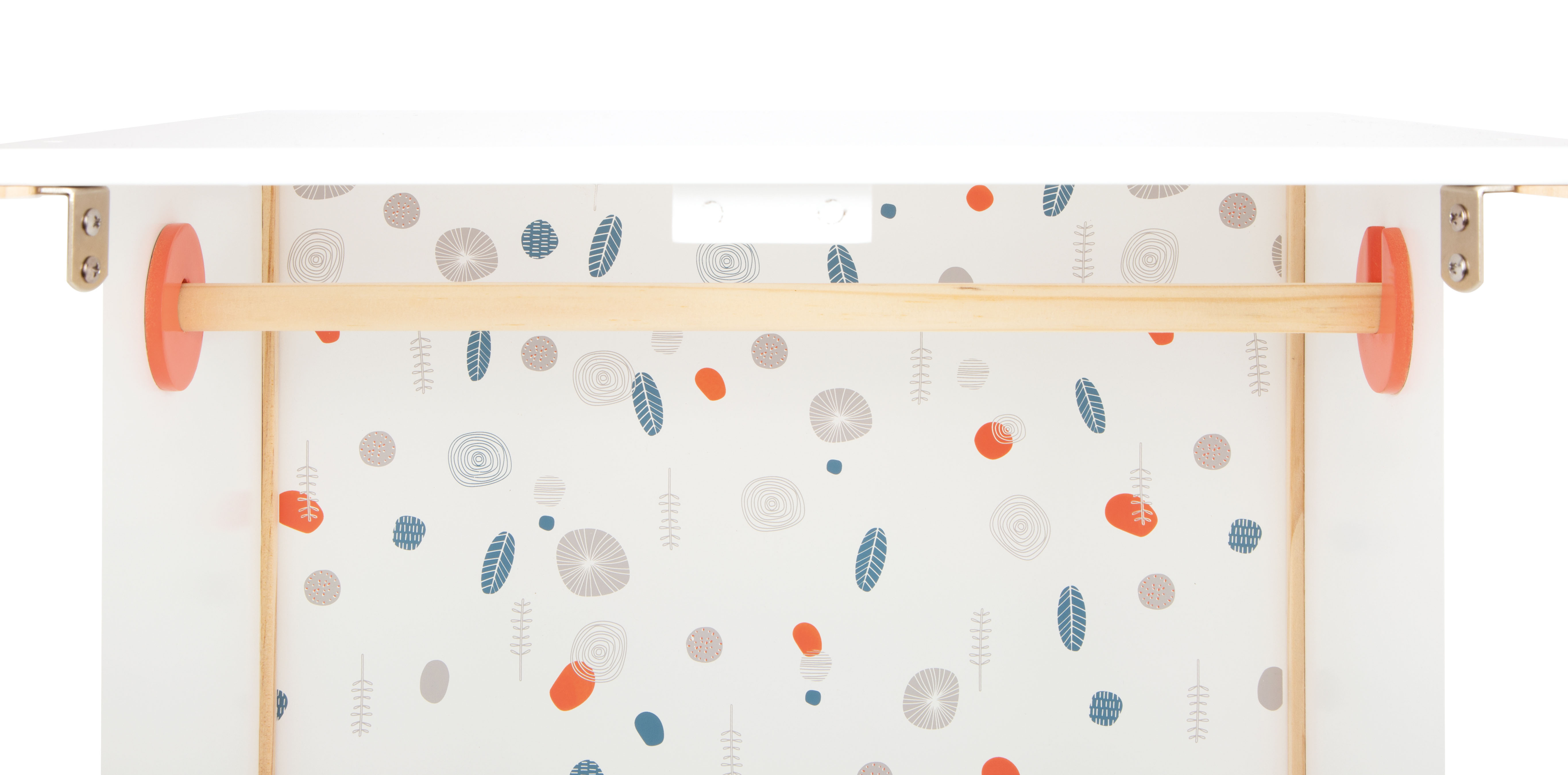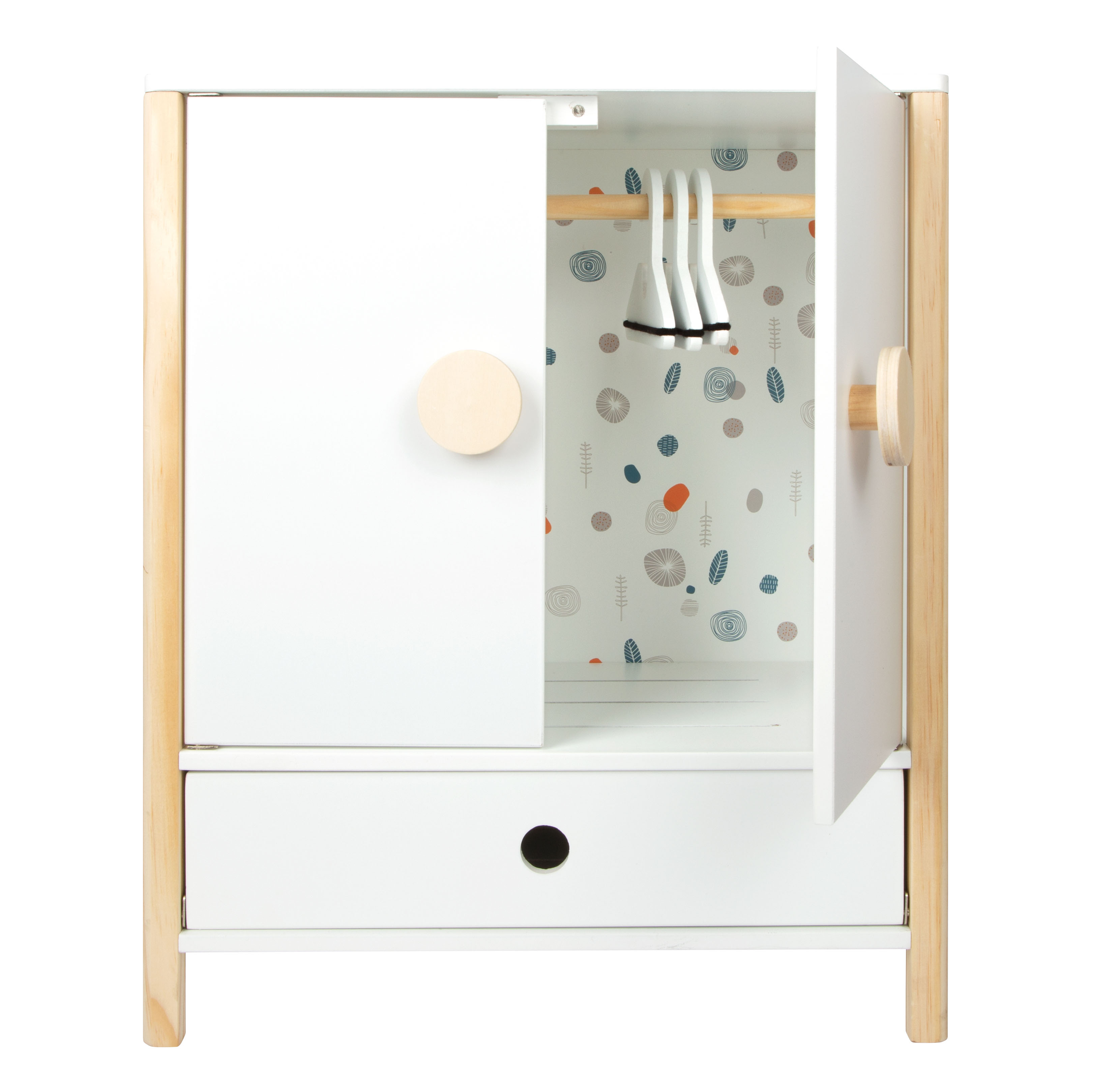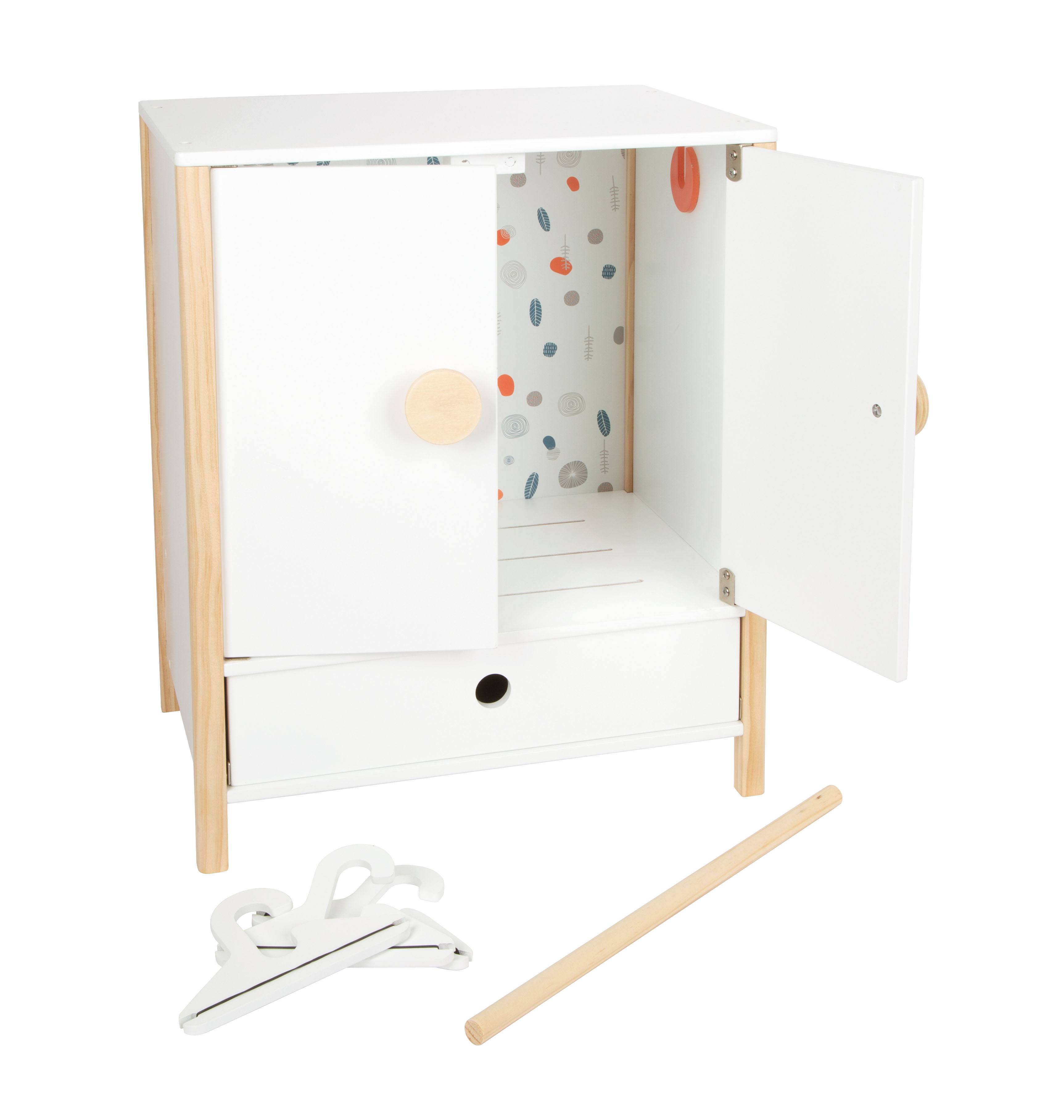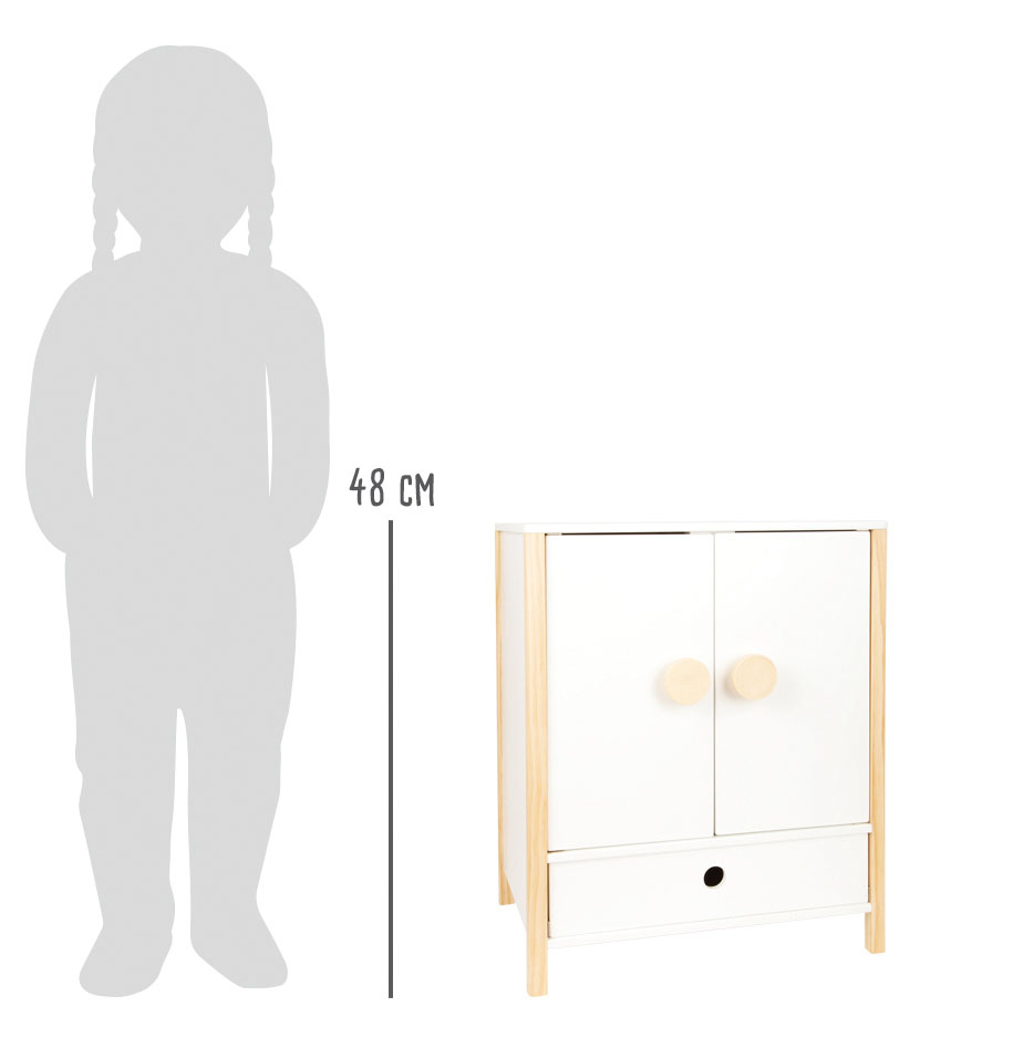 Un mobile per bambole moderno con elementi in legno massello visibili, che si inserisce perfettamente nella cameretta. Giocando alle bambole si allena il comportamento sociale dei piccoli genitori delle bambole i quali, allo stesso tempo, imparano a tenere tutto in ordine. Un completamento di gioco di gran stile per la cameretta, dalla lavorazione di gran pregio!