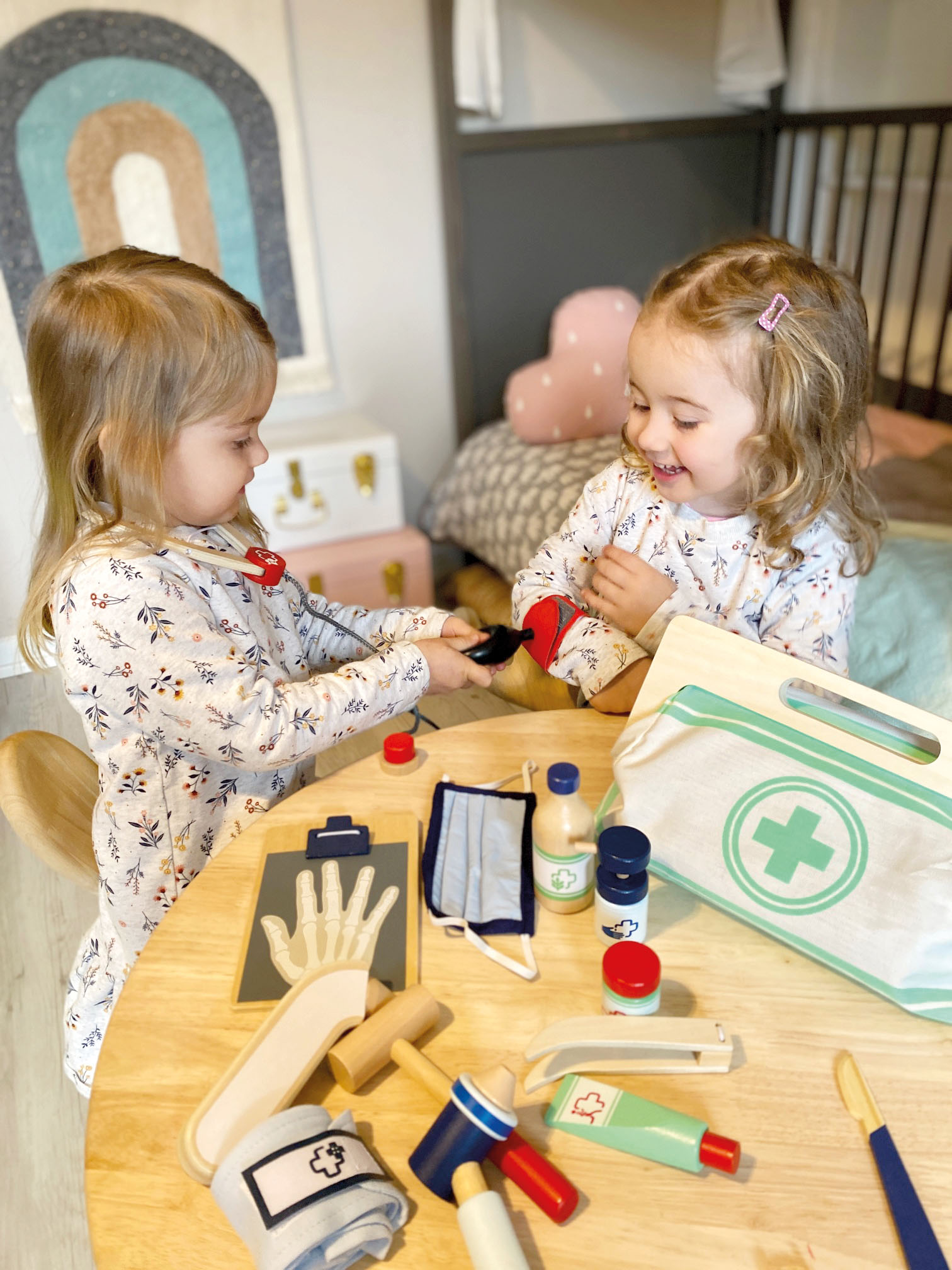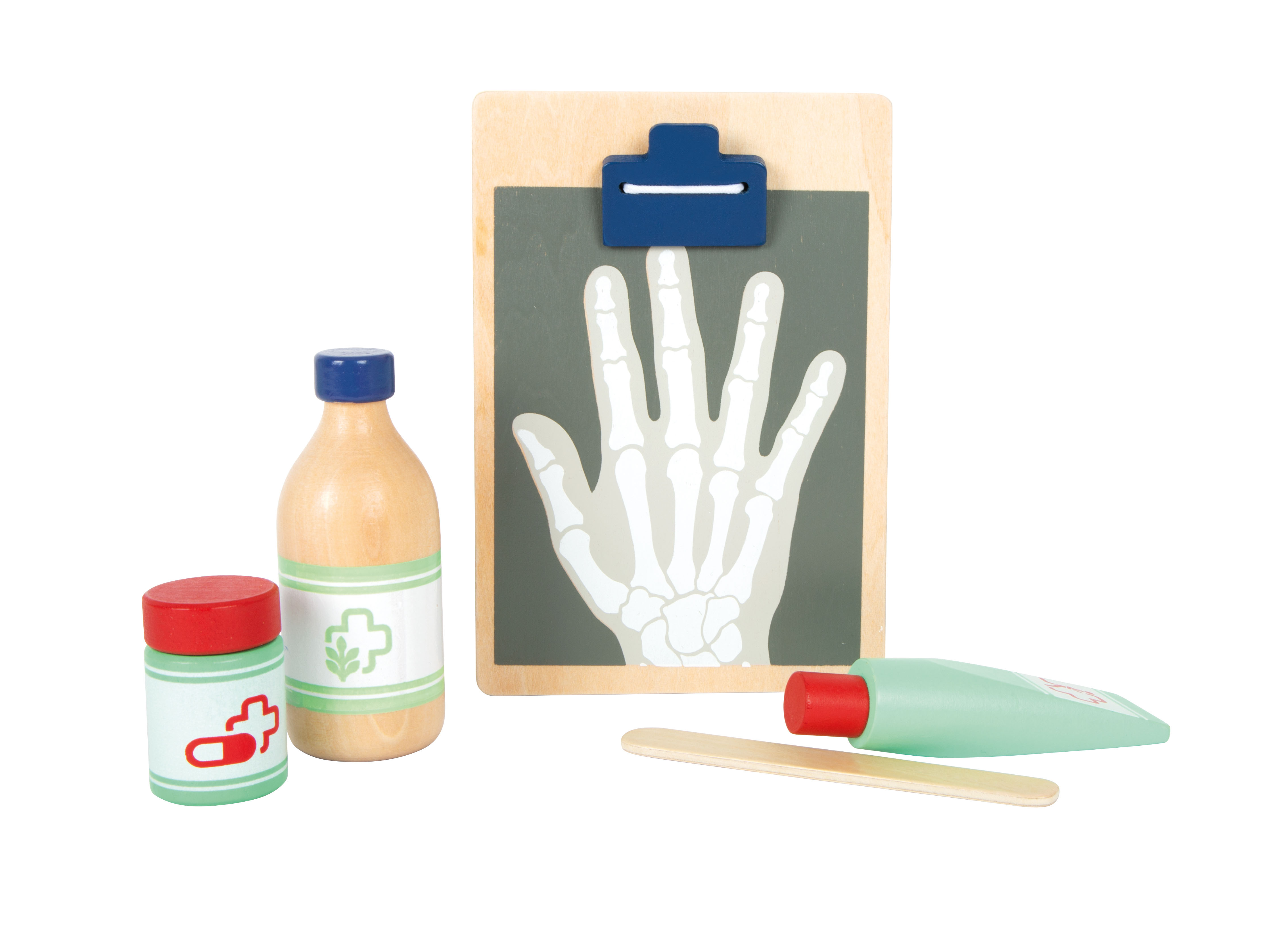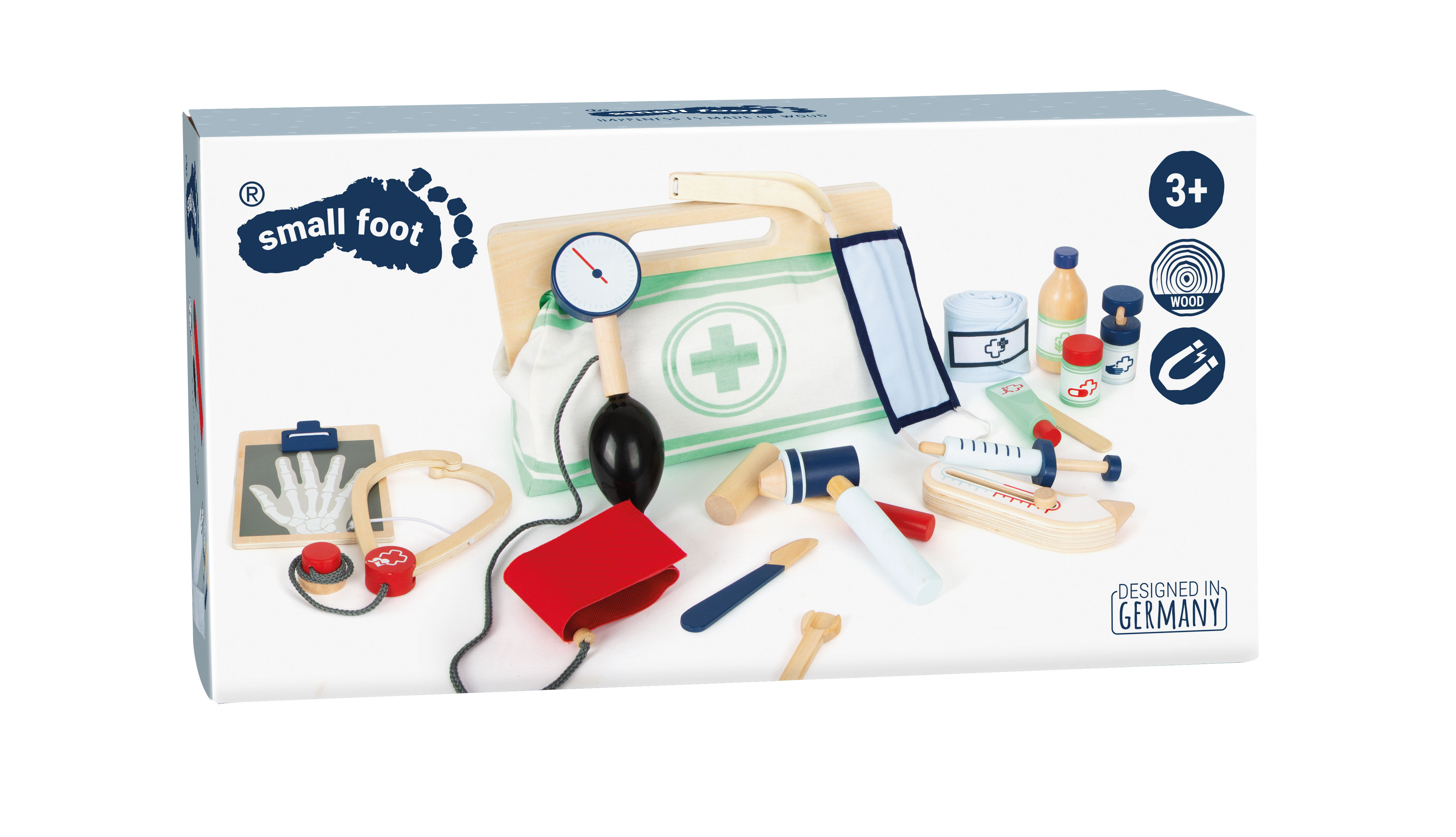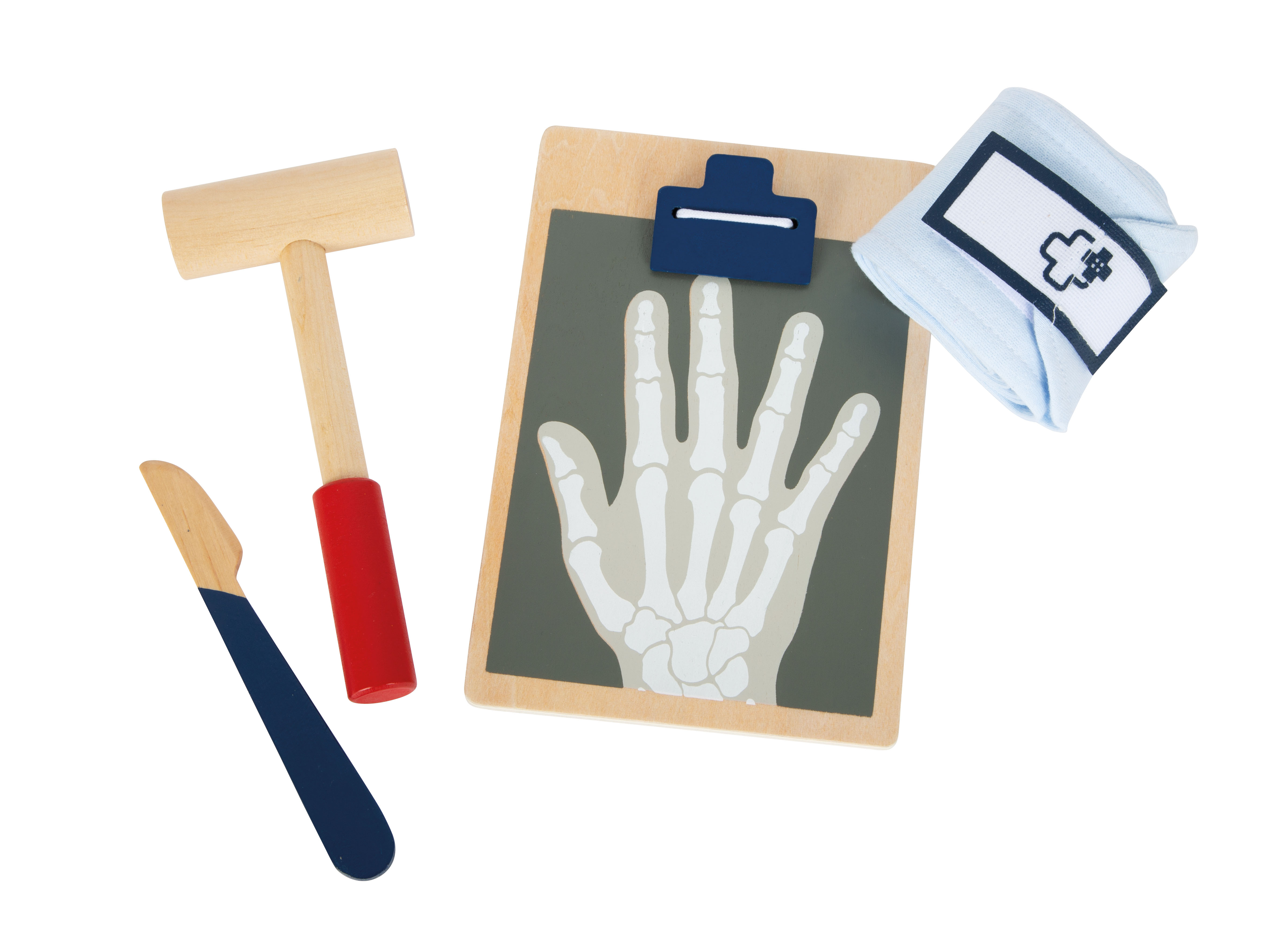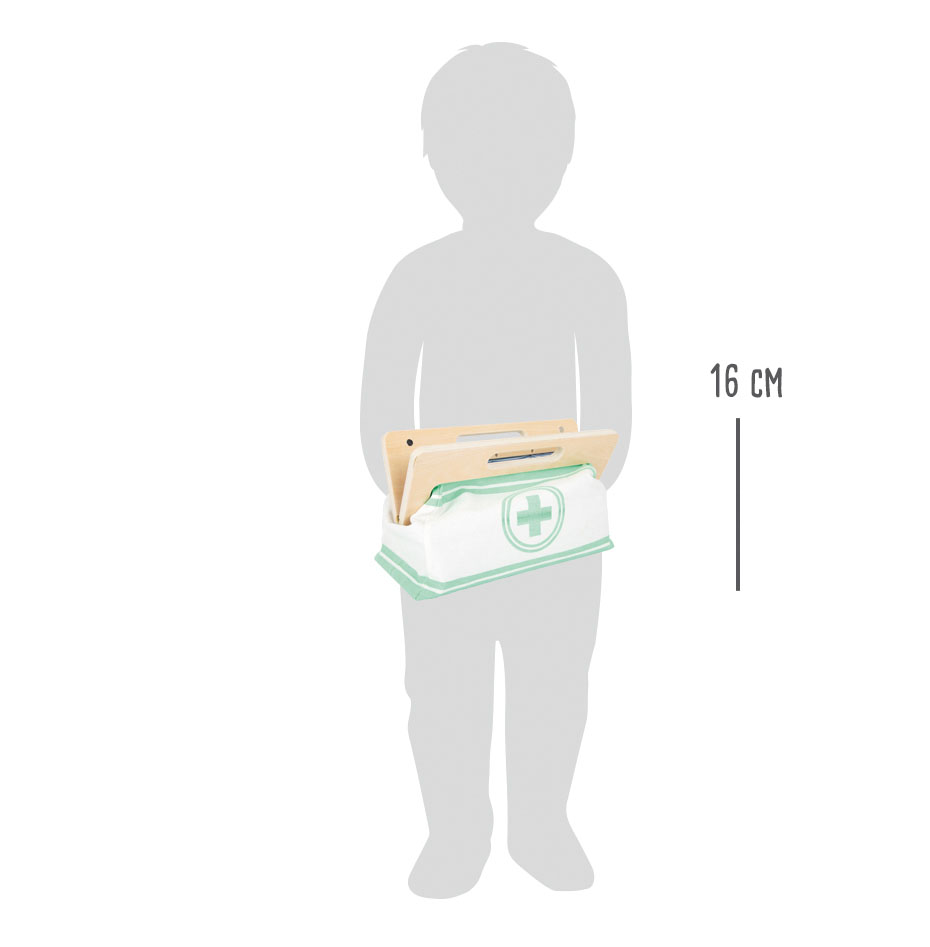 Un set completo per giocare al dottore, che contiene molti utensili e strumenti "veri" dell'ambito medico e che riunisce in una pratica borsetta tutto ciò di cui hanno bisogno i bambini per il gioco di ruolo medico-paziente! Con gli strumenti del dottore in legno robusti e piacevoli al tatto, i bambini possono fare tante scoperte durante il gioco di ruolo ed esercitare le capacità necessarie per le cure mediche. Le figure sugli utensili indicano per cosa questi potrebbero essere usati durante il gioco. Ideale da portare con sé!