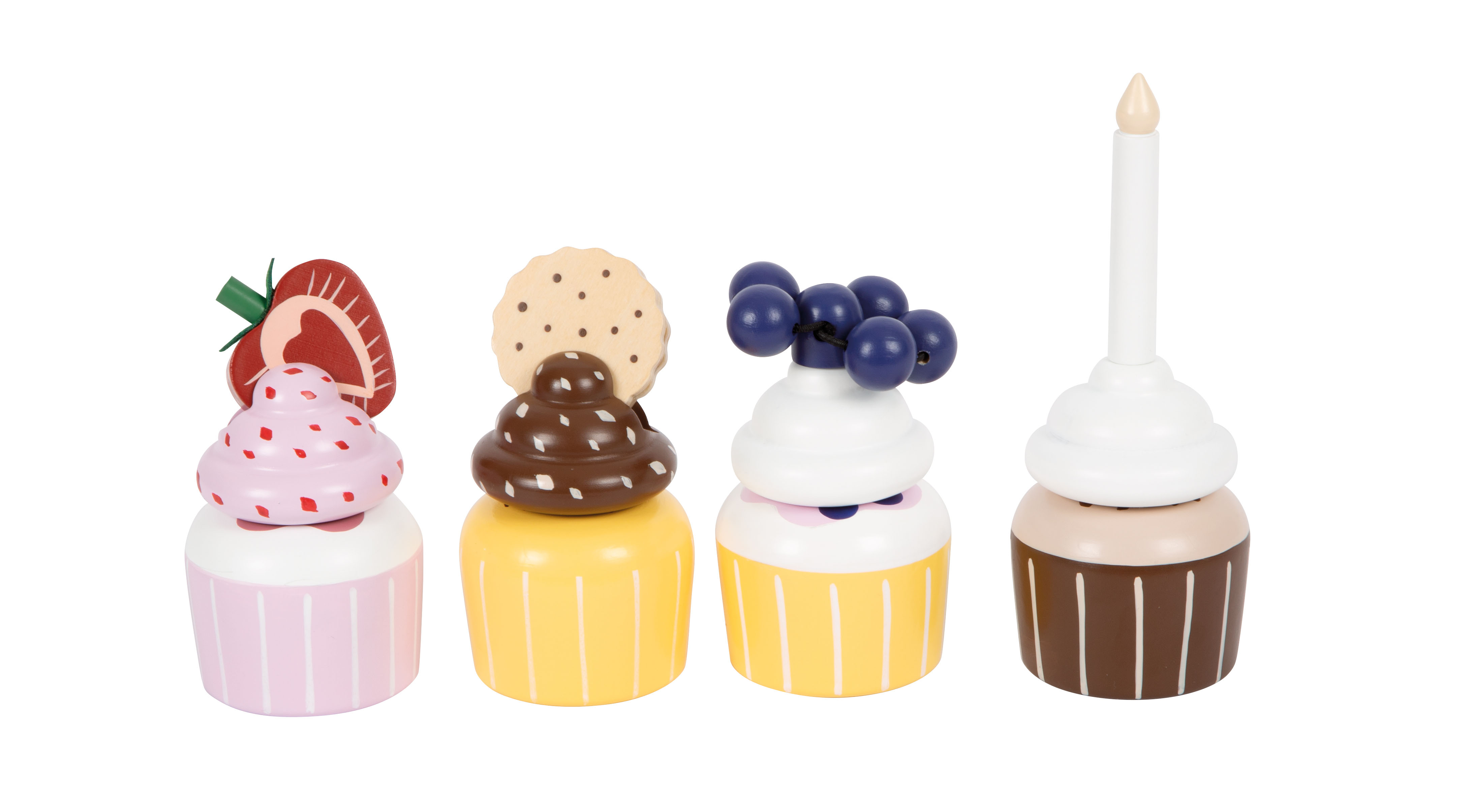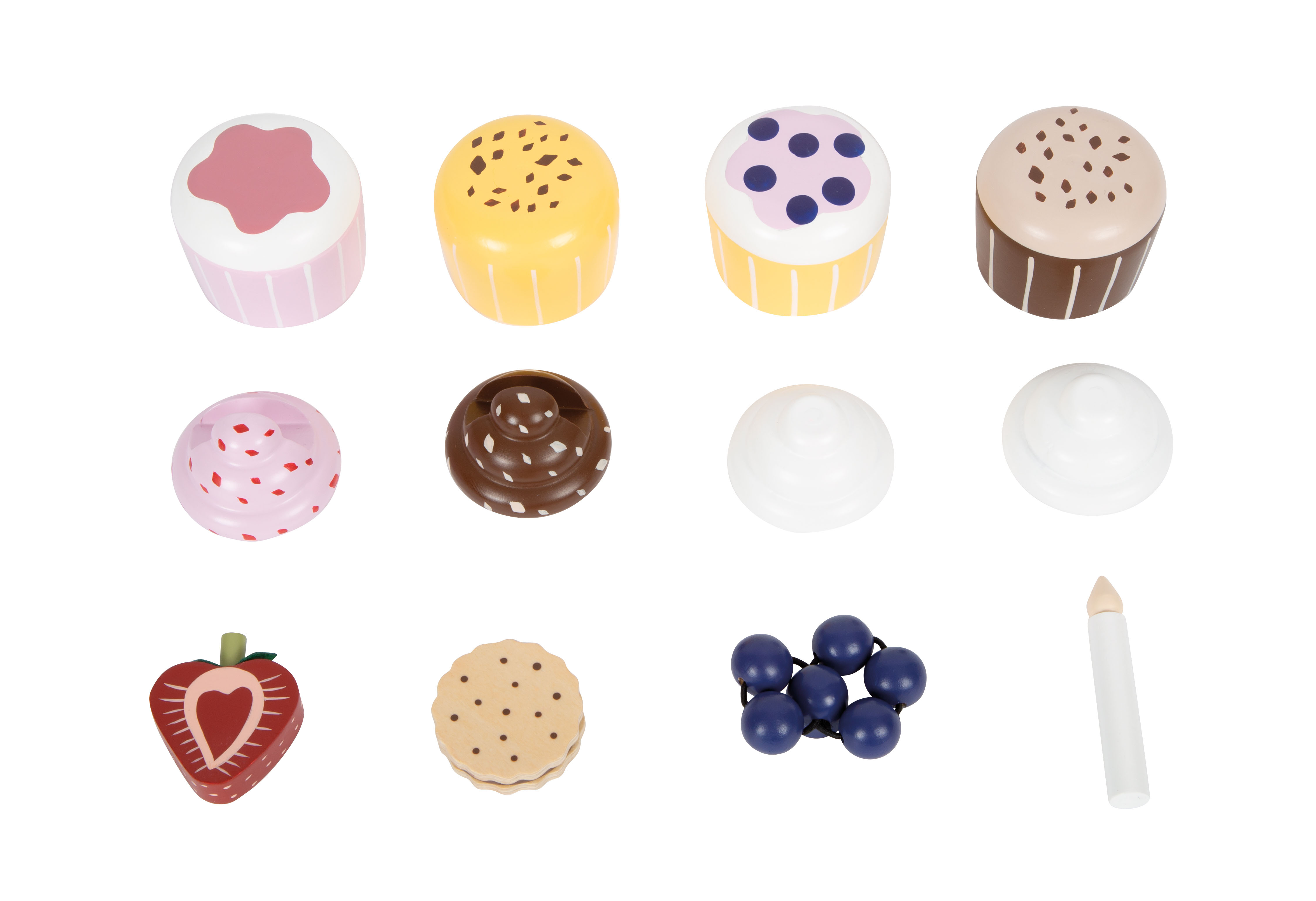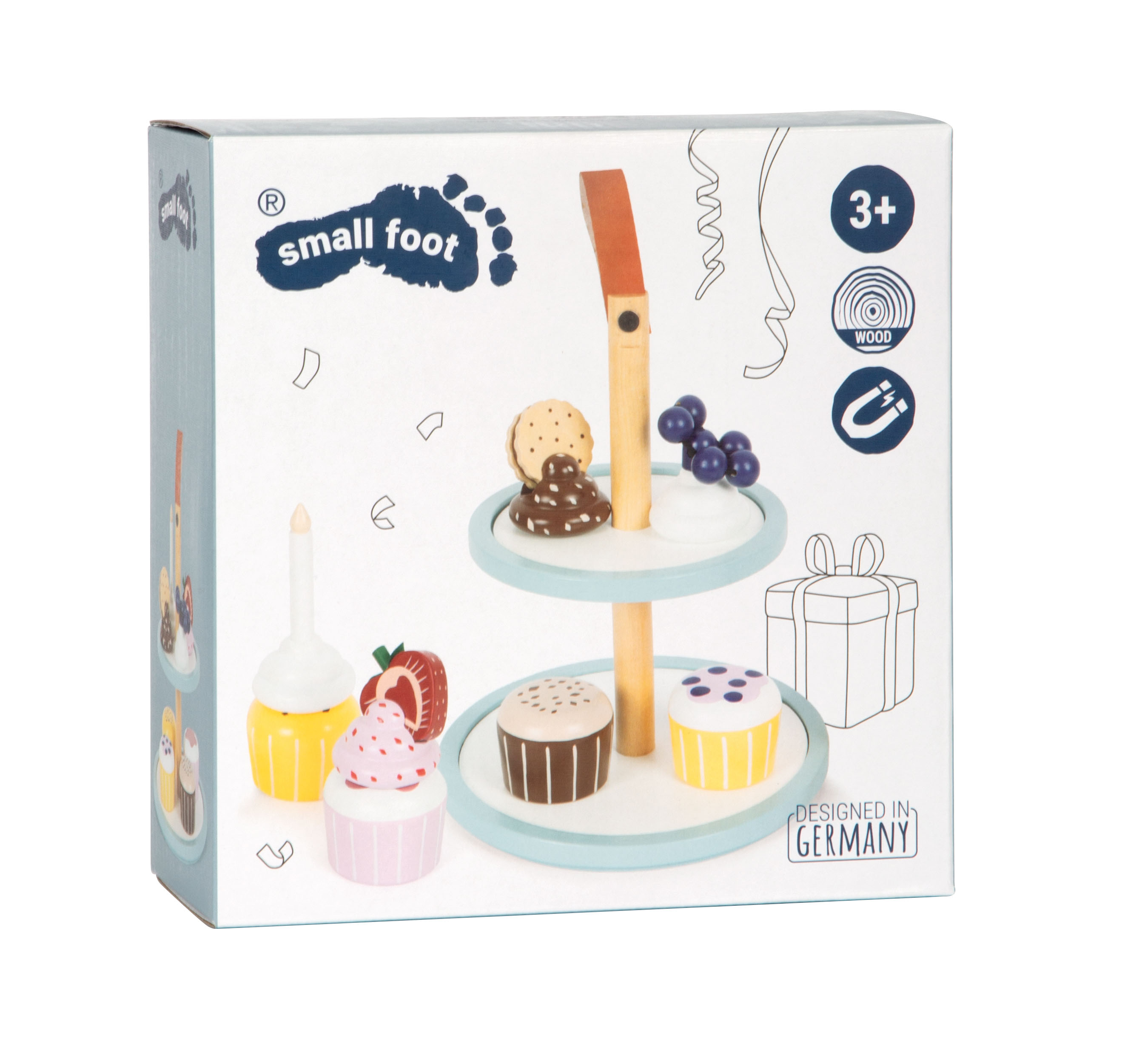 A chi non viene l'acquolina in bocca a vedere questi cupcake? Un completamento ideale per la cucina gioco e il negozio. I dettagli quali un manico in ecopelle marrone scuro, calamite integrate e colori moderni e scandinavi sobri rendono questo set per il gioco di ruolo una decorazione di gran pregio e di gran stile per la cameretta!