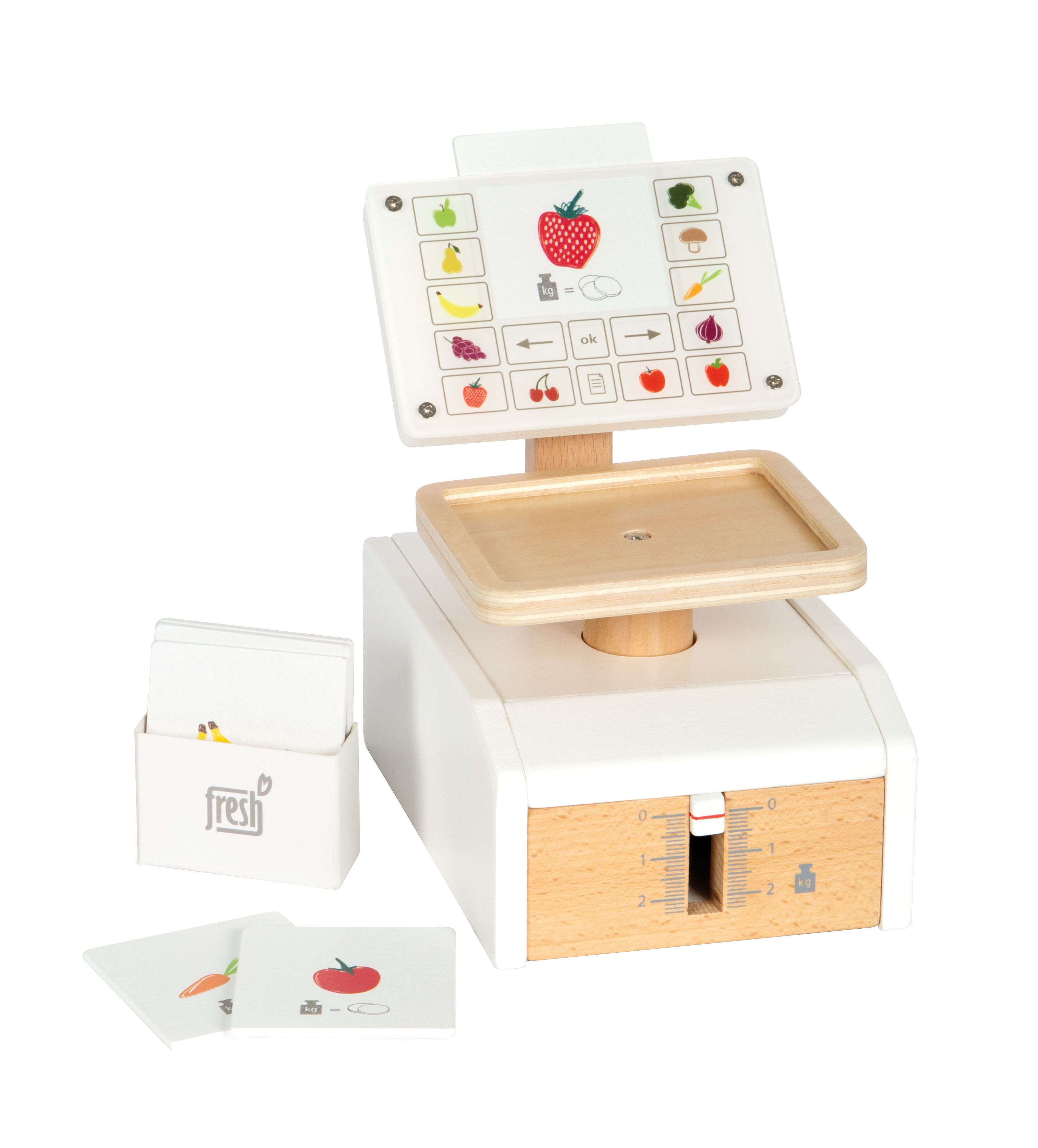 Per rendere il gioco ancora più realistico, esiste un’ampia gamma di accessori che stimolano la fantasia dei bambini. Dai set di frutta e verdura realistici alle casse, bilance e carrelli – small foot offre una vasta scelta.