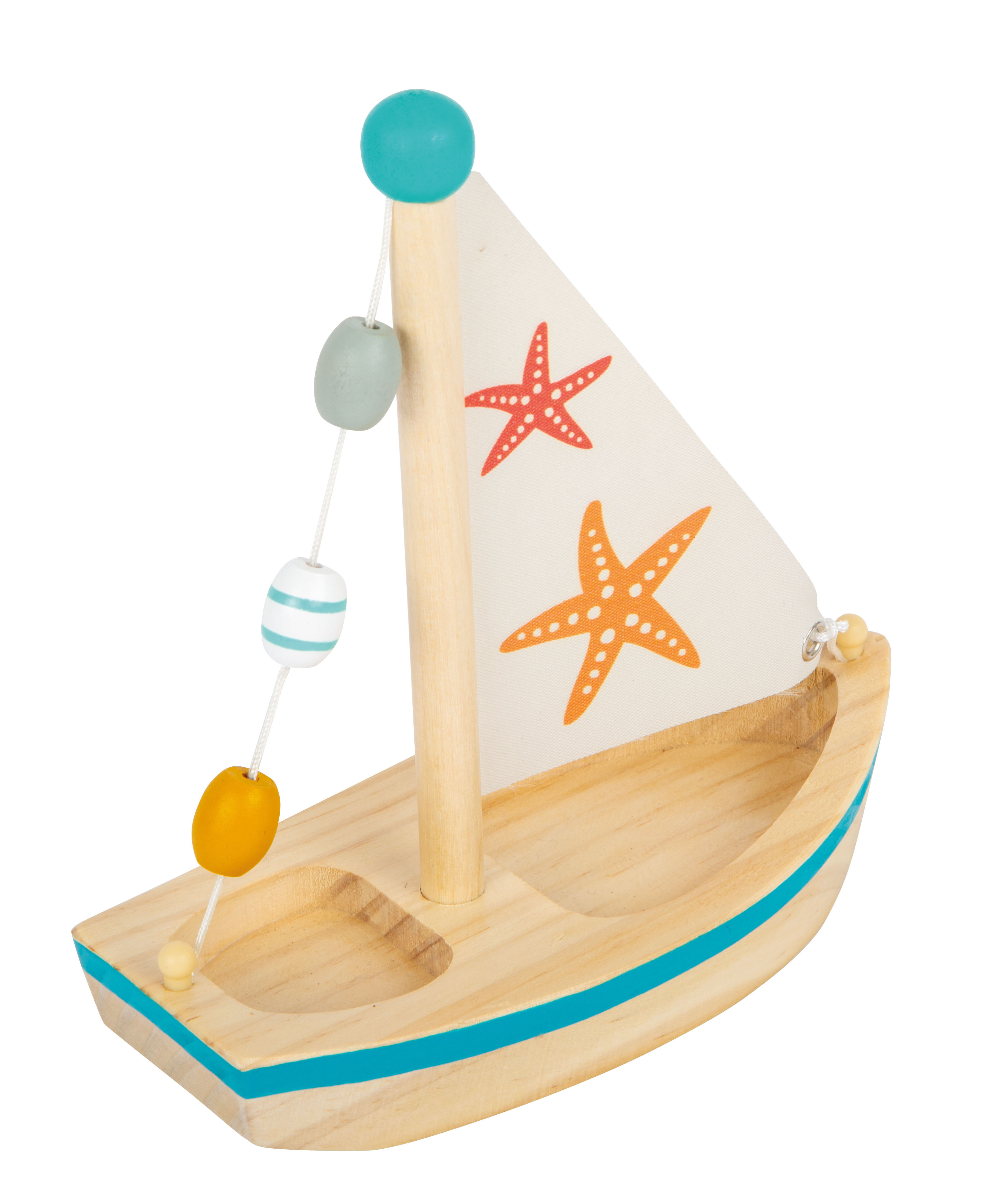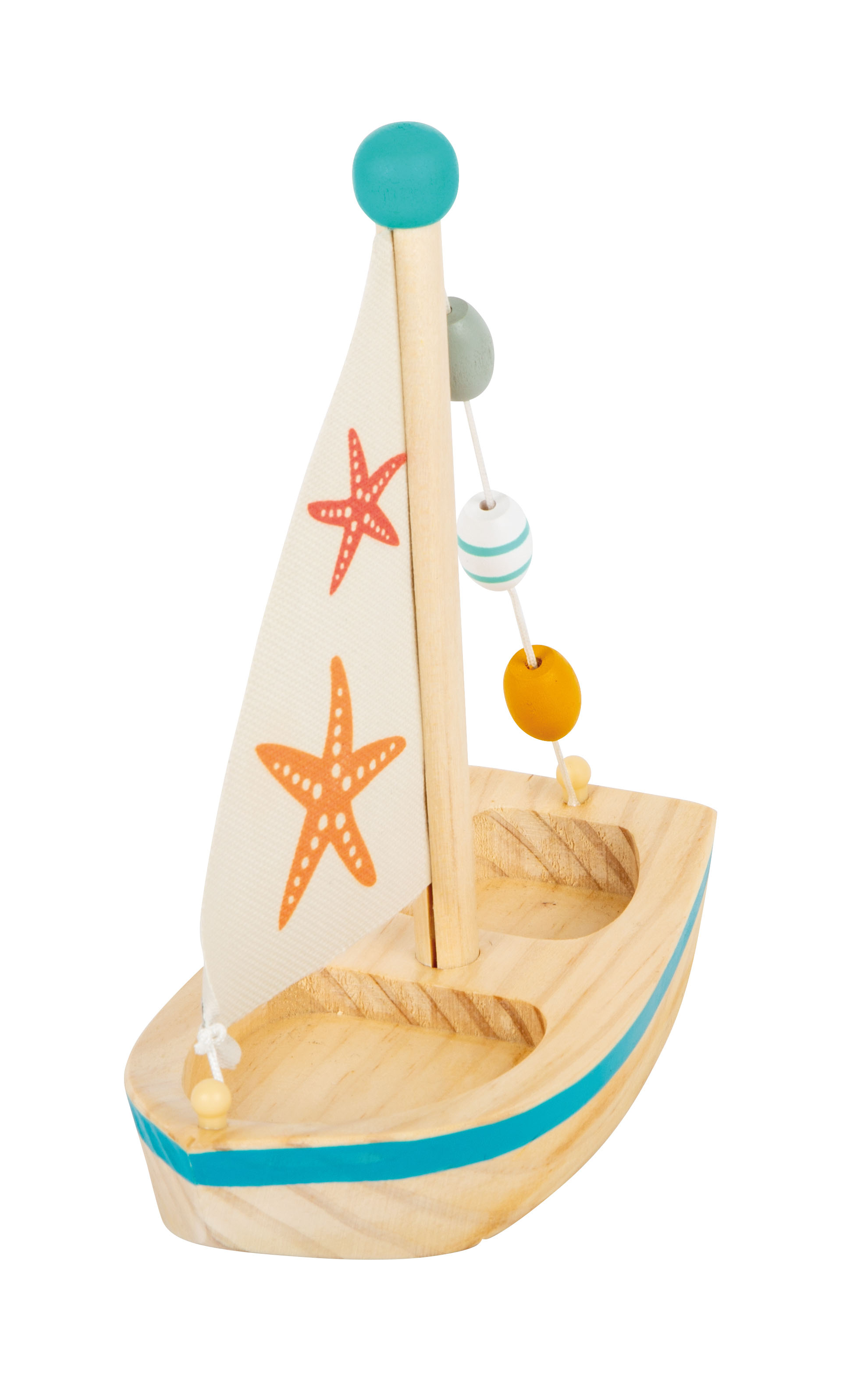 Adornata con stelle di mare e perle di legno, questa barchetta attirerà tutti gli sguardi su di sé! I giochi acquatici in legno rappresentano l'alternativa sostenibile ai giocattoli per la vasca da bagno in plastica o agli animali di gomma! La bellissima barca in legno è piccola e maneggevole ed entra senza problemi in ogni borsa da piscina!