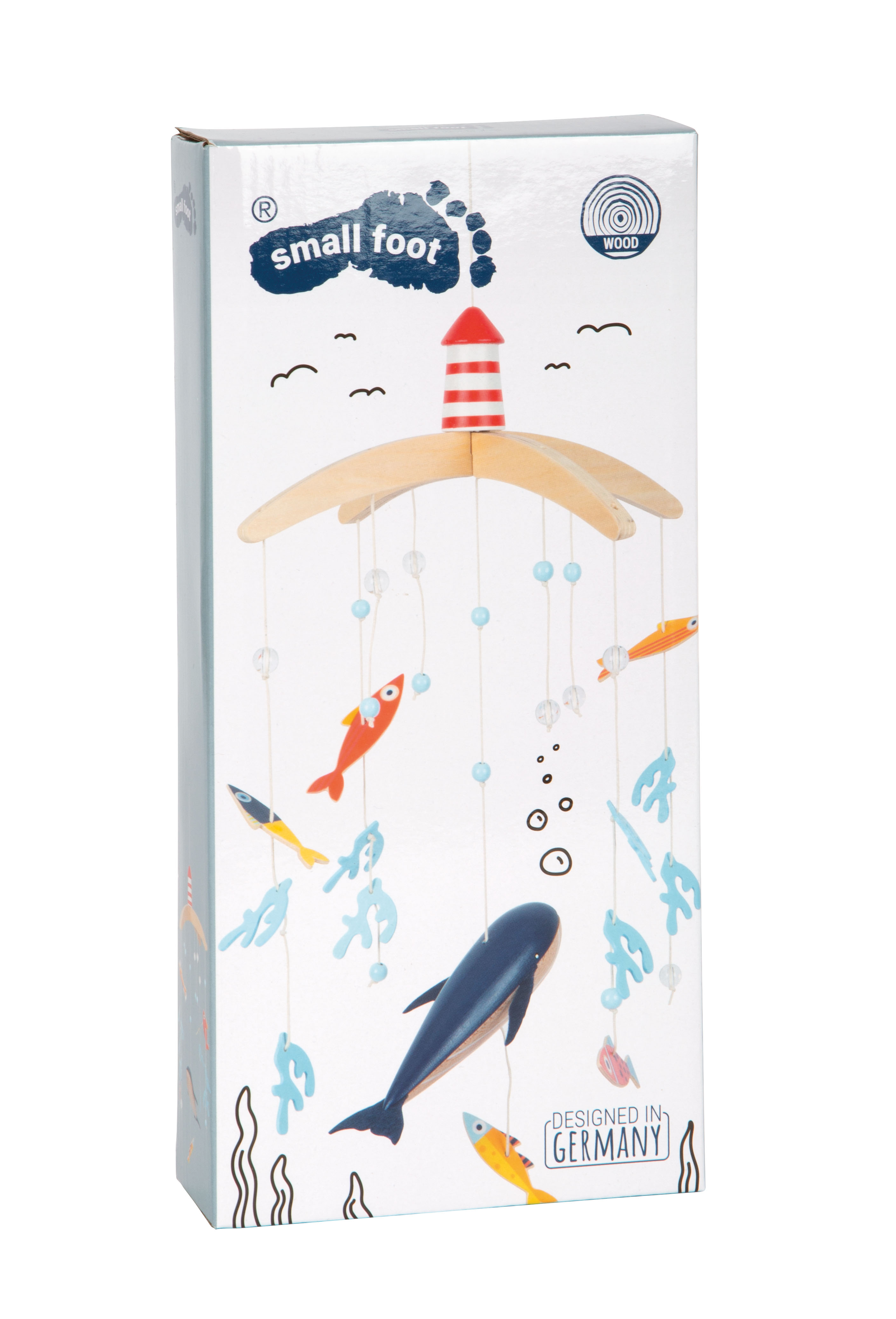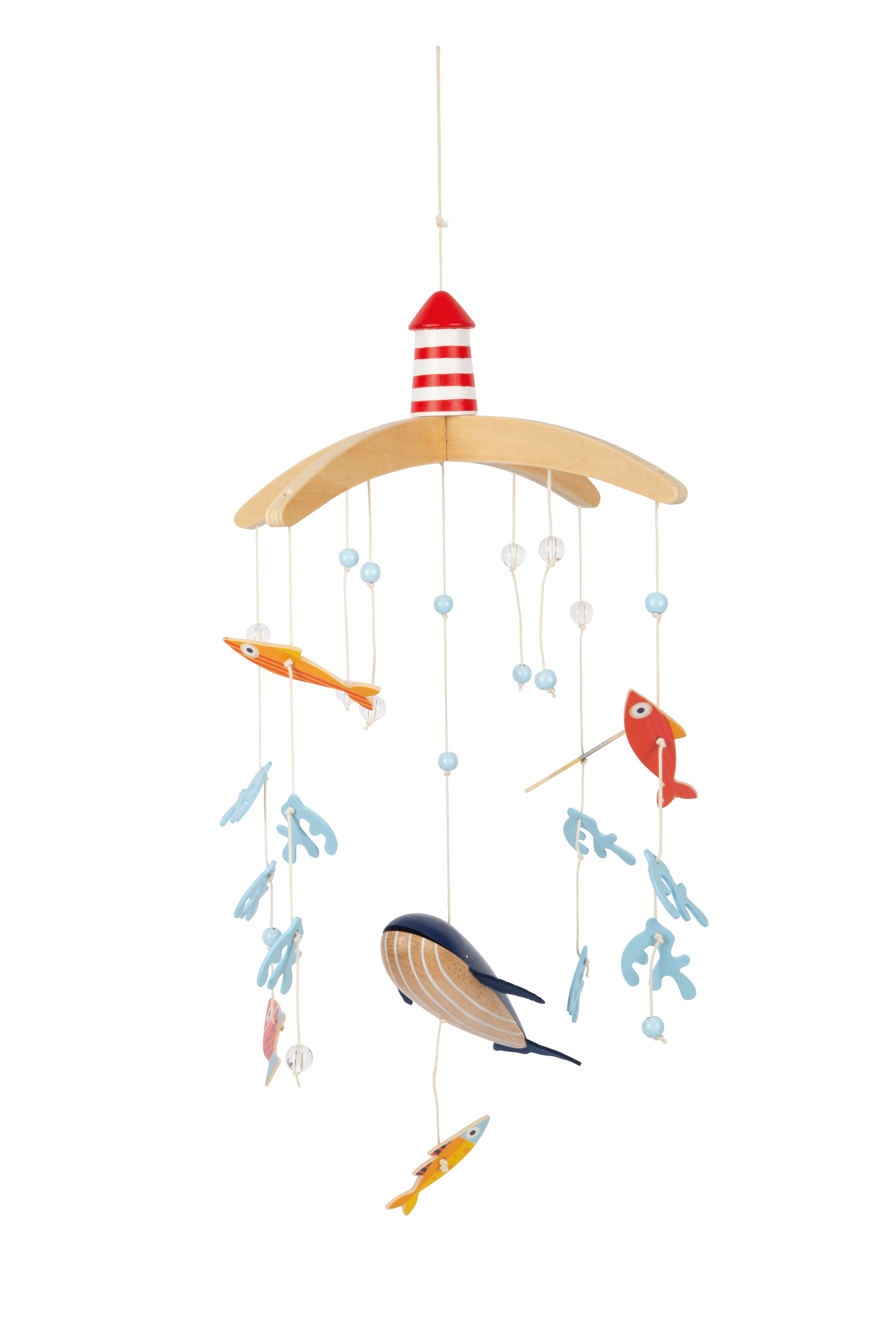 Particolarmente interessante per i piccoli spettatori è l'accessorio in movimento in cameretta, con i pesci che nuotano rassicuranti in cerchio. Con il grande faro, questa giostrina non sarà una grande e decorativa attrattiva solo per i piccoli subacquei in cameretta.