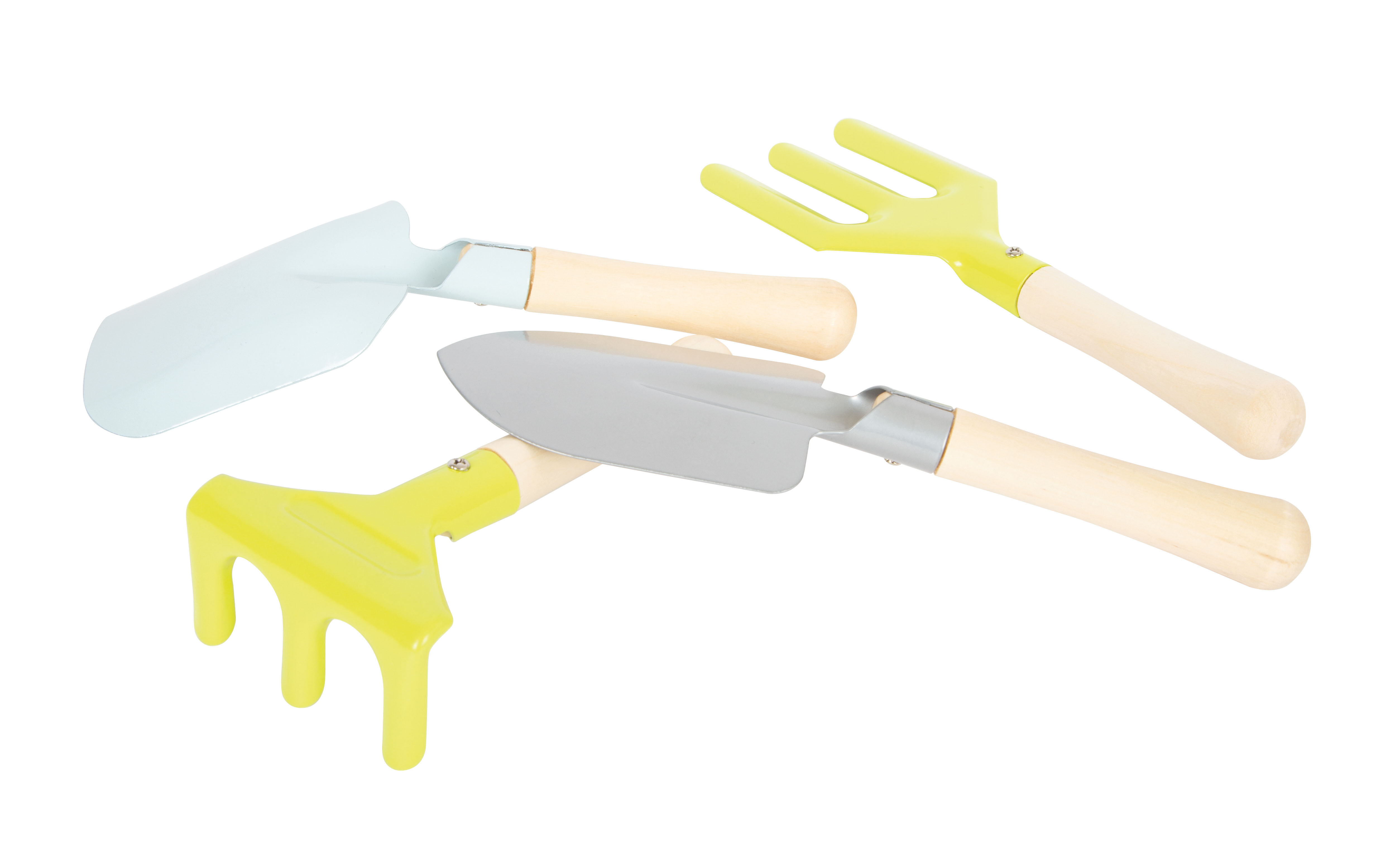 - Set completo con quattro pratici attrezzi da giardinaggio (vanga, rastrello, paletta e rastrello per fiori)