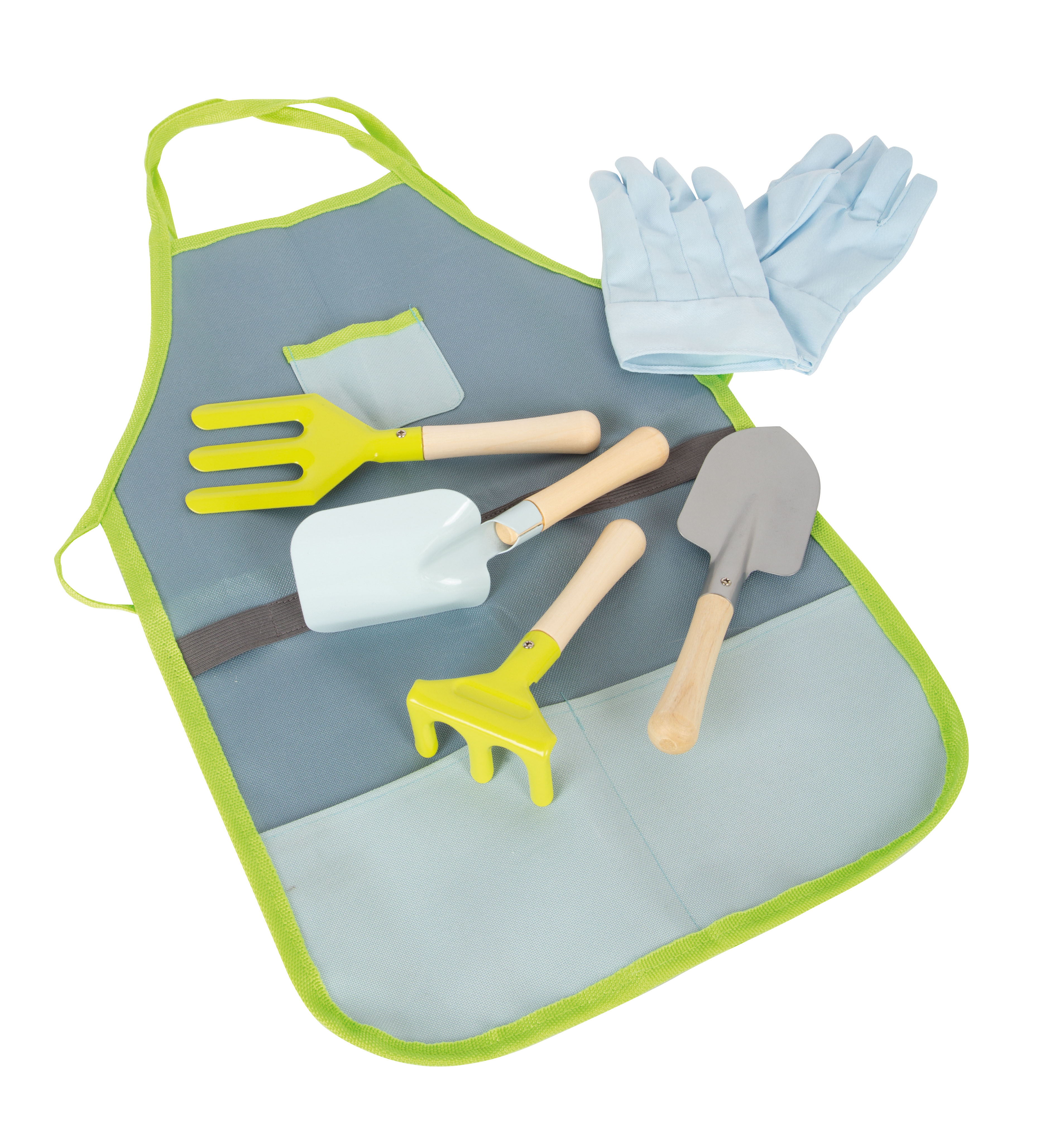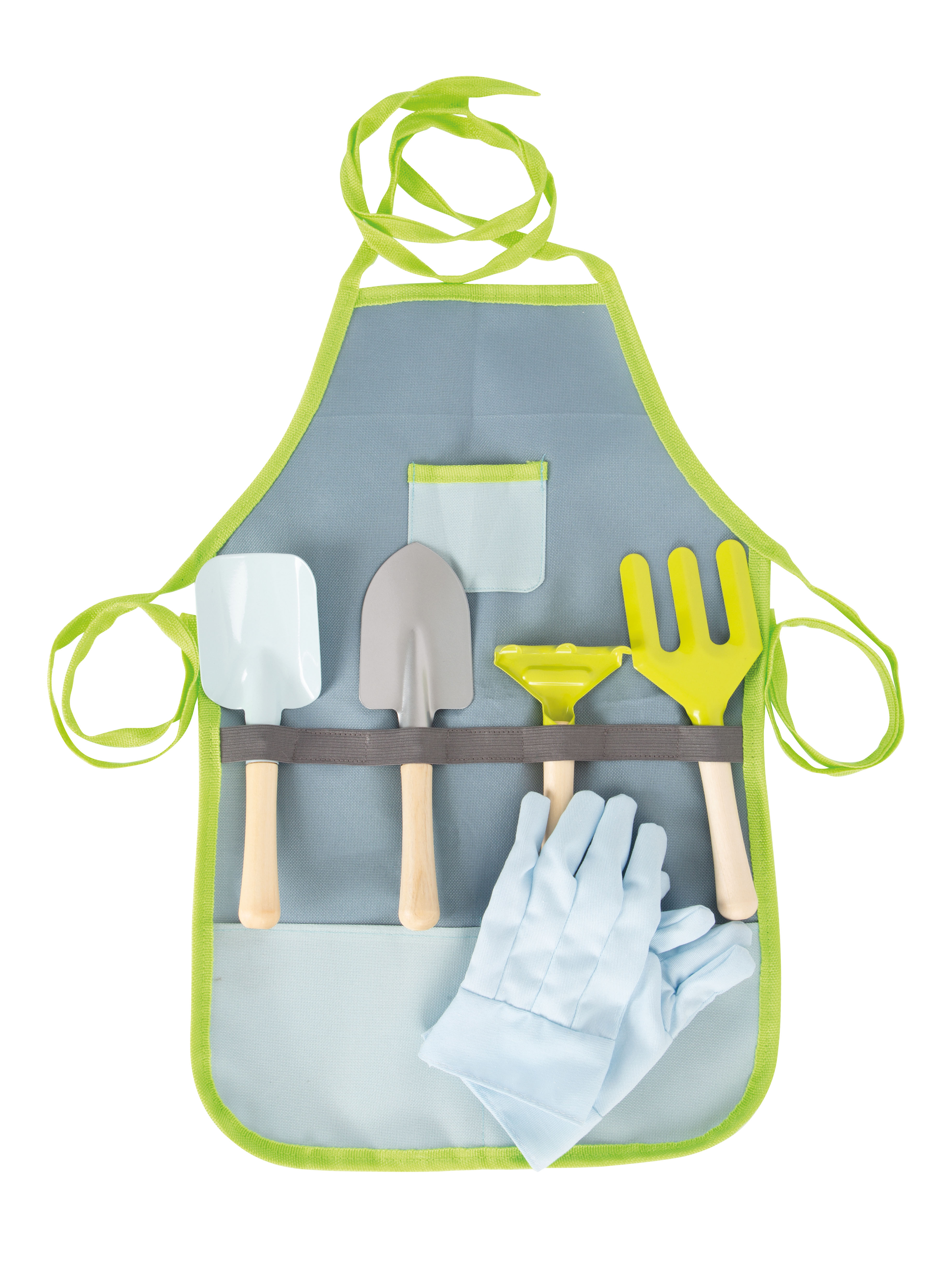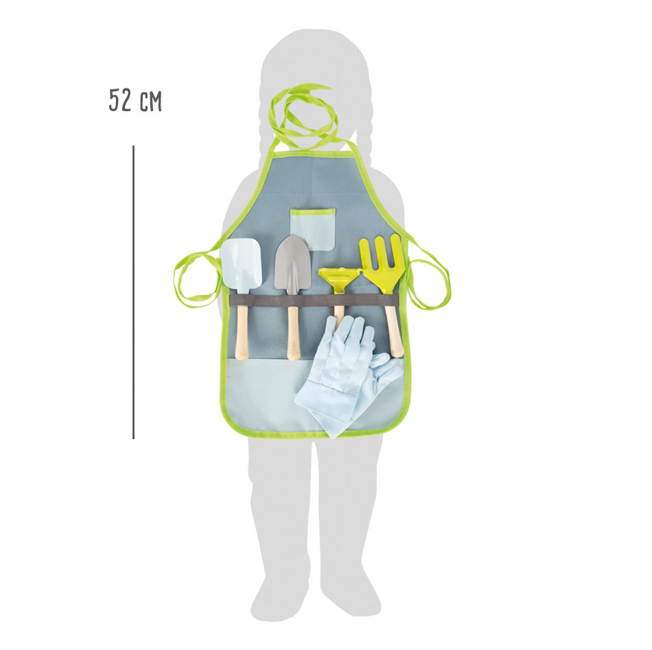 Il grembiule da giardinaggio in semplici colori di tendenza e i guanti proteggono i bambini dallo sporco e impediscono che i vestiti si rovinino. Assolutamene d'obbligo per tutti i piccoli con l'hobby del giardinaggio che vogliono aiutare con forza i propri genitori in giardino! Il grembiule da giardinaggio è utilizzabile anche come grembiule da cucina e per dipingere!