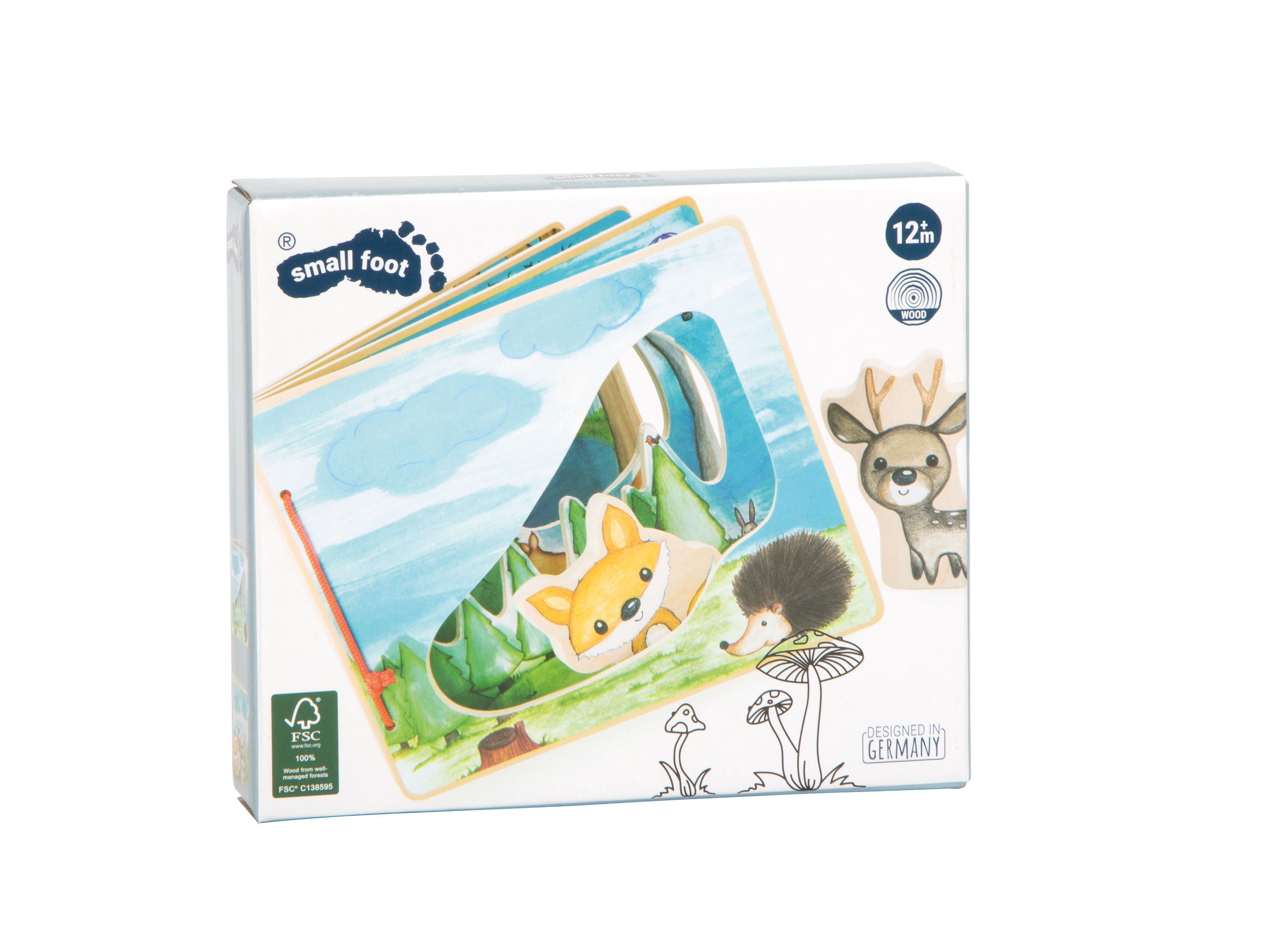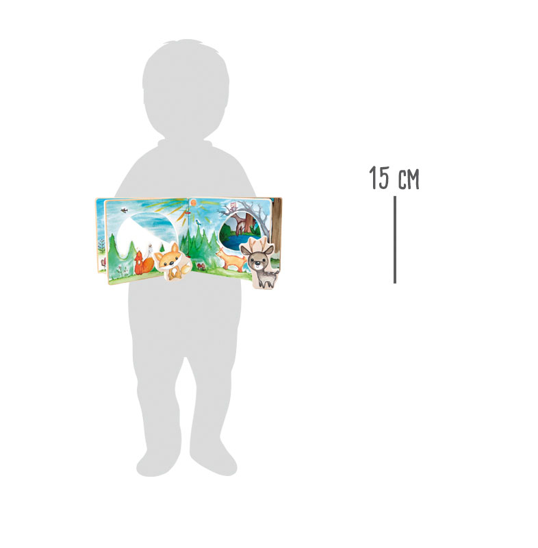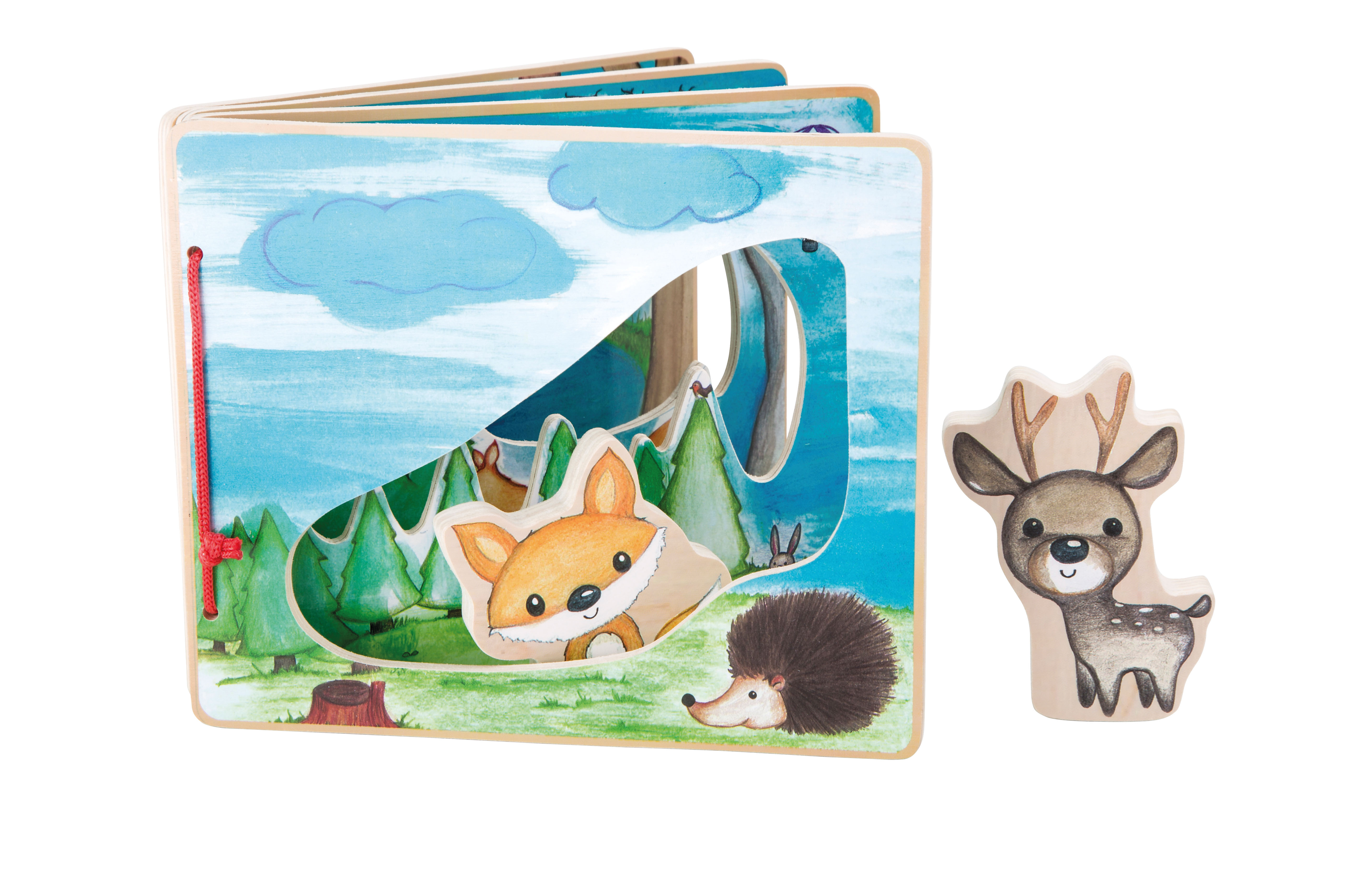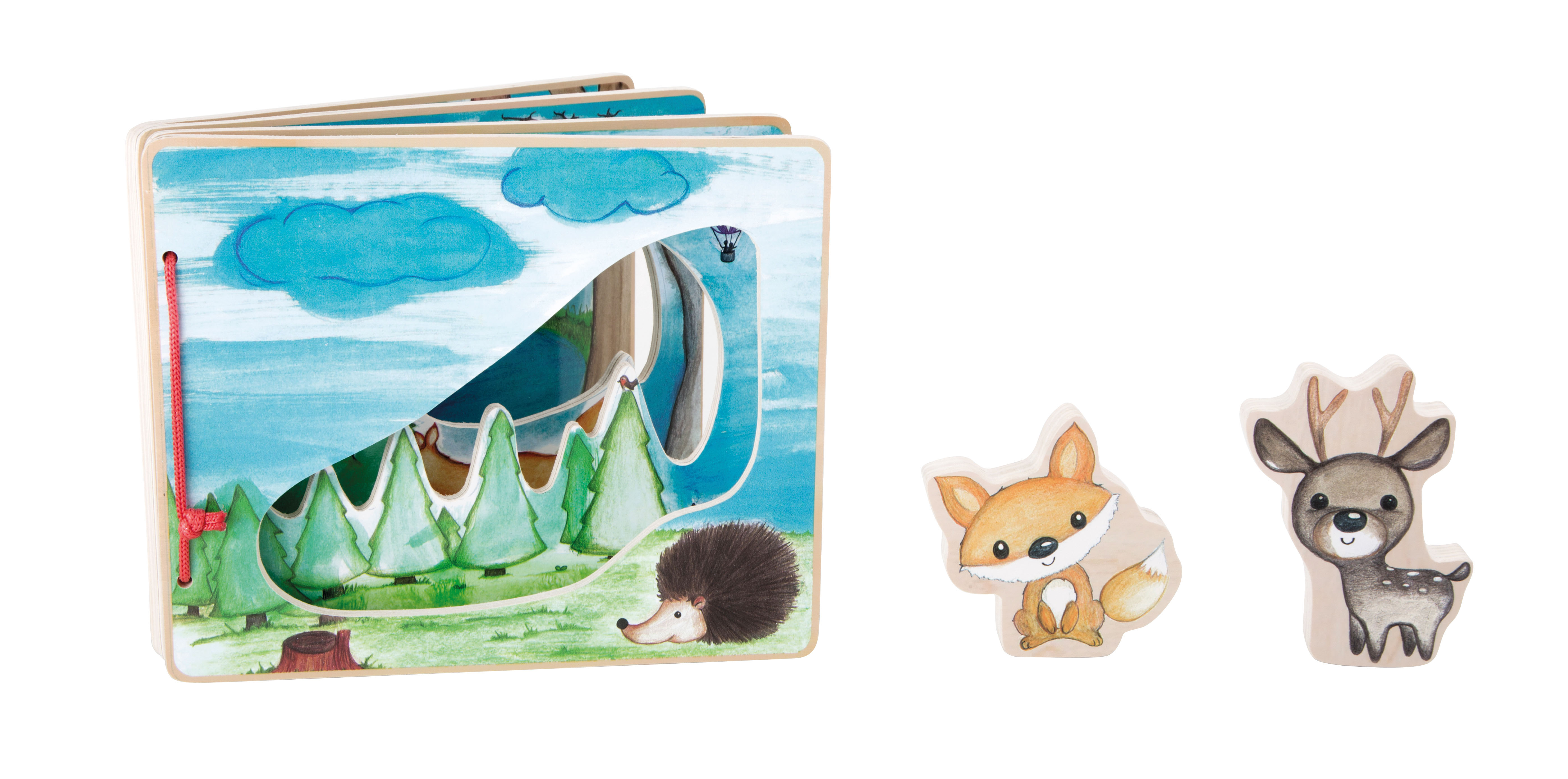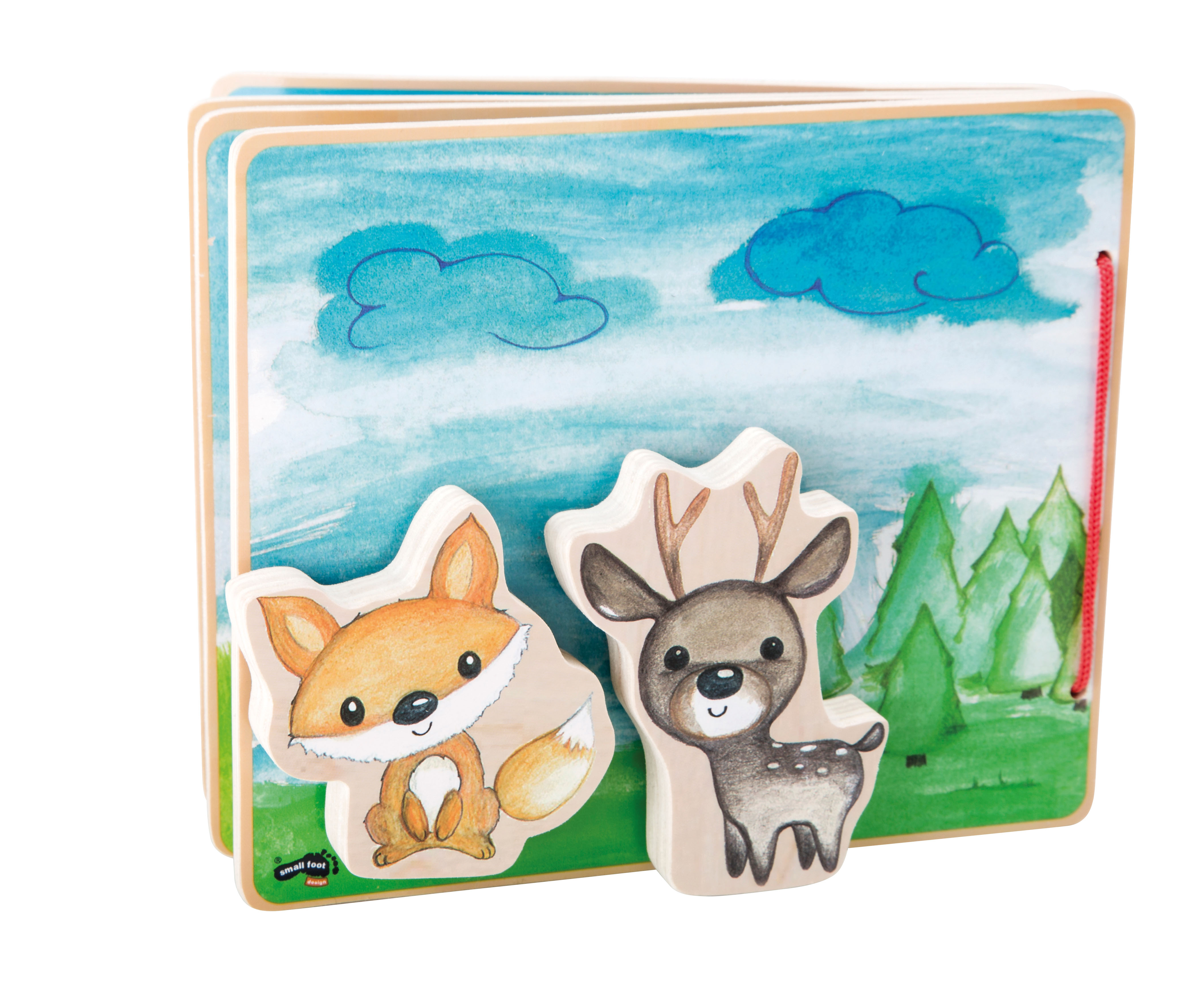 - Libro per bebè interattivo realizzato in legno 100% certificato FSC® a tema foresta