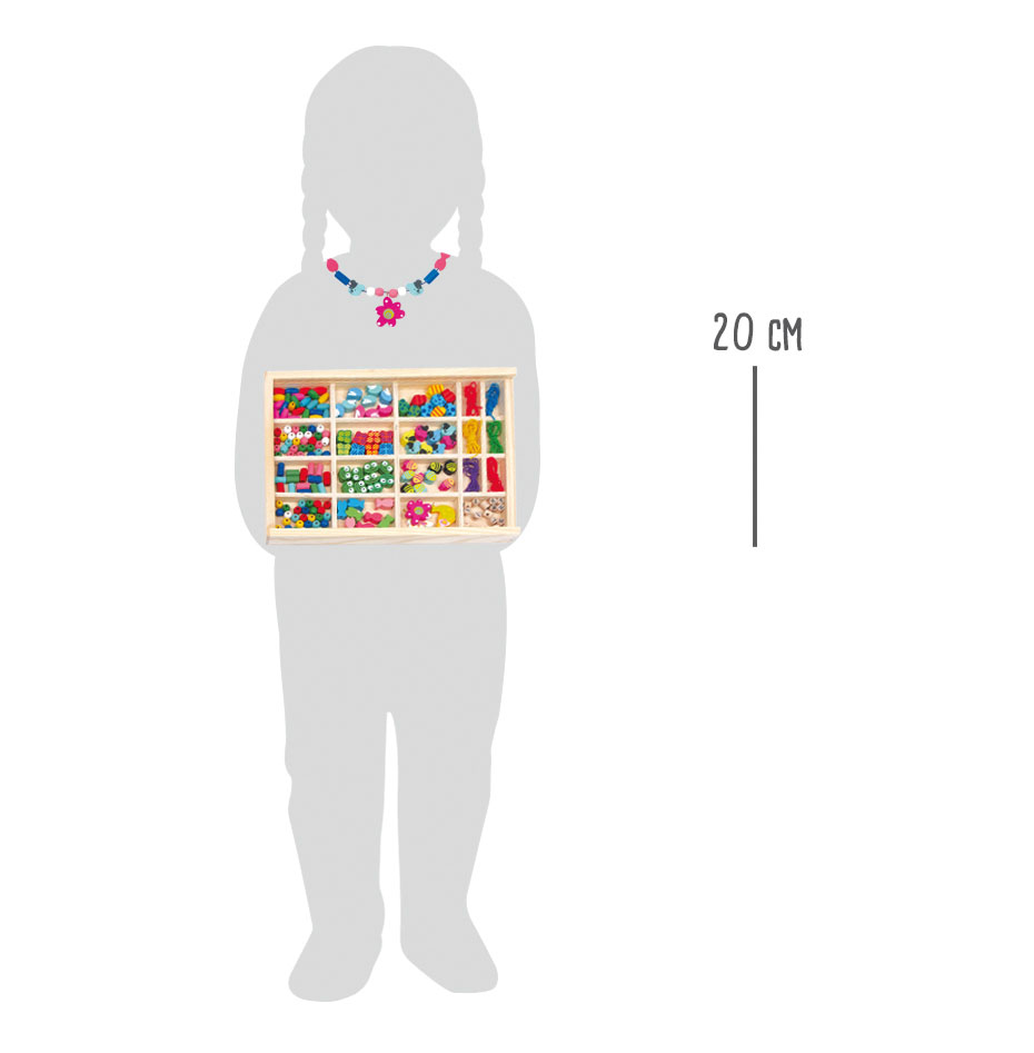 Le perline possono essere utilizzate per la creazione di gioielli fai da te, per il bricolage e per altre idee creative. La motricità e la concentrazione vengono allenate. Il coperchio trasparente e scorrevole custodisce tutto in maniera ordinata e lascia intravedere il contenuto.