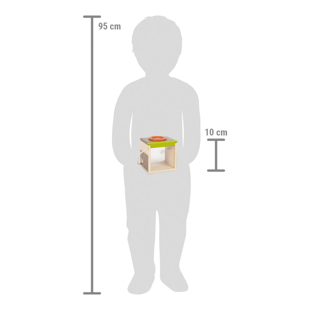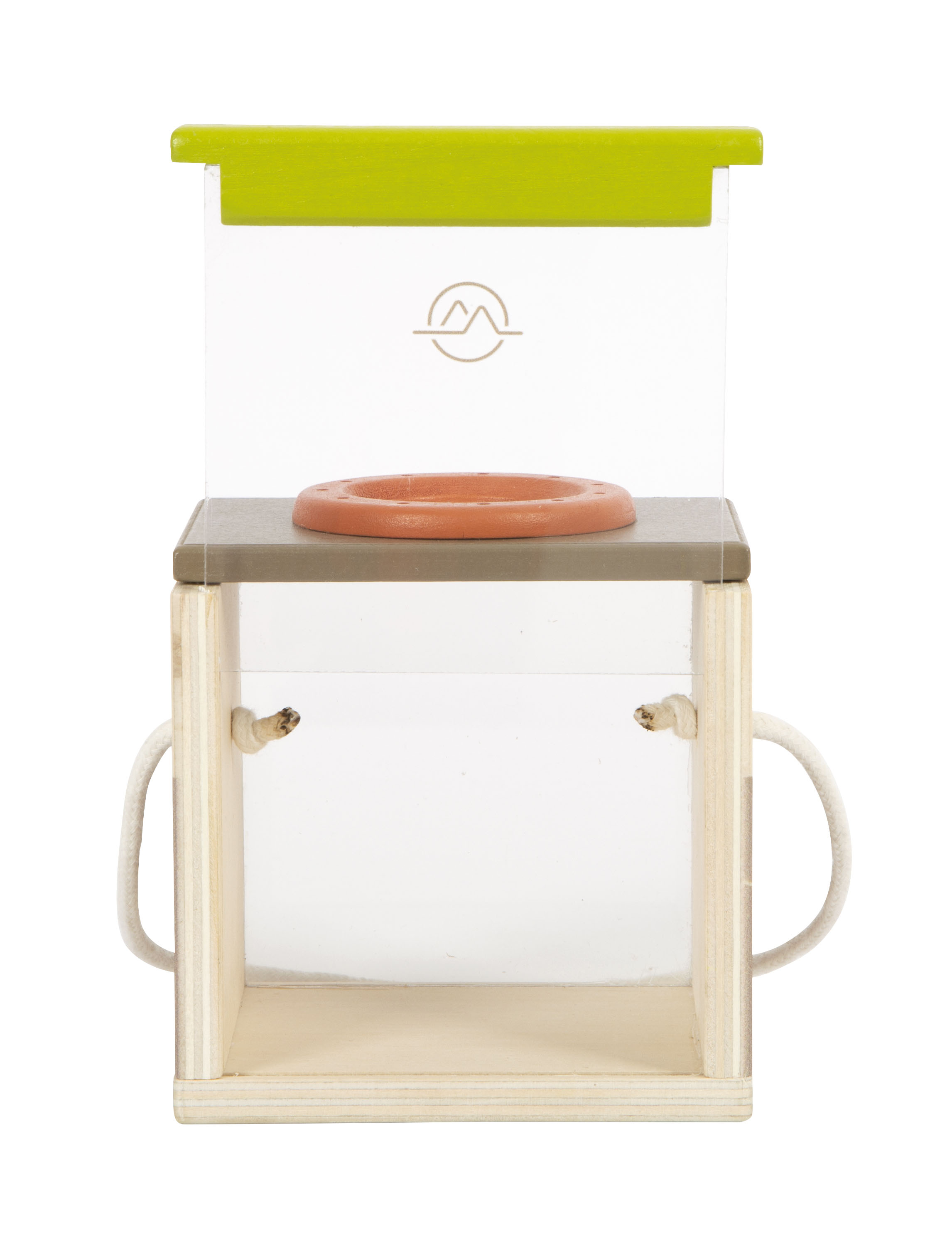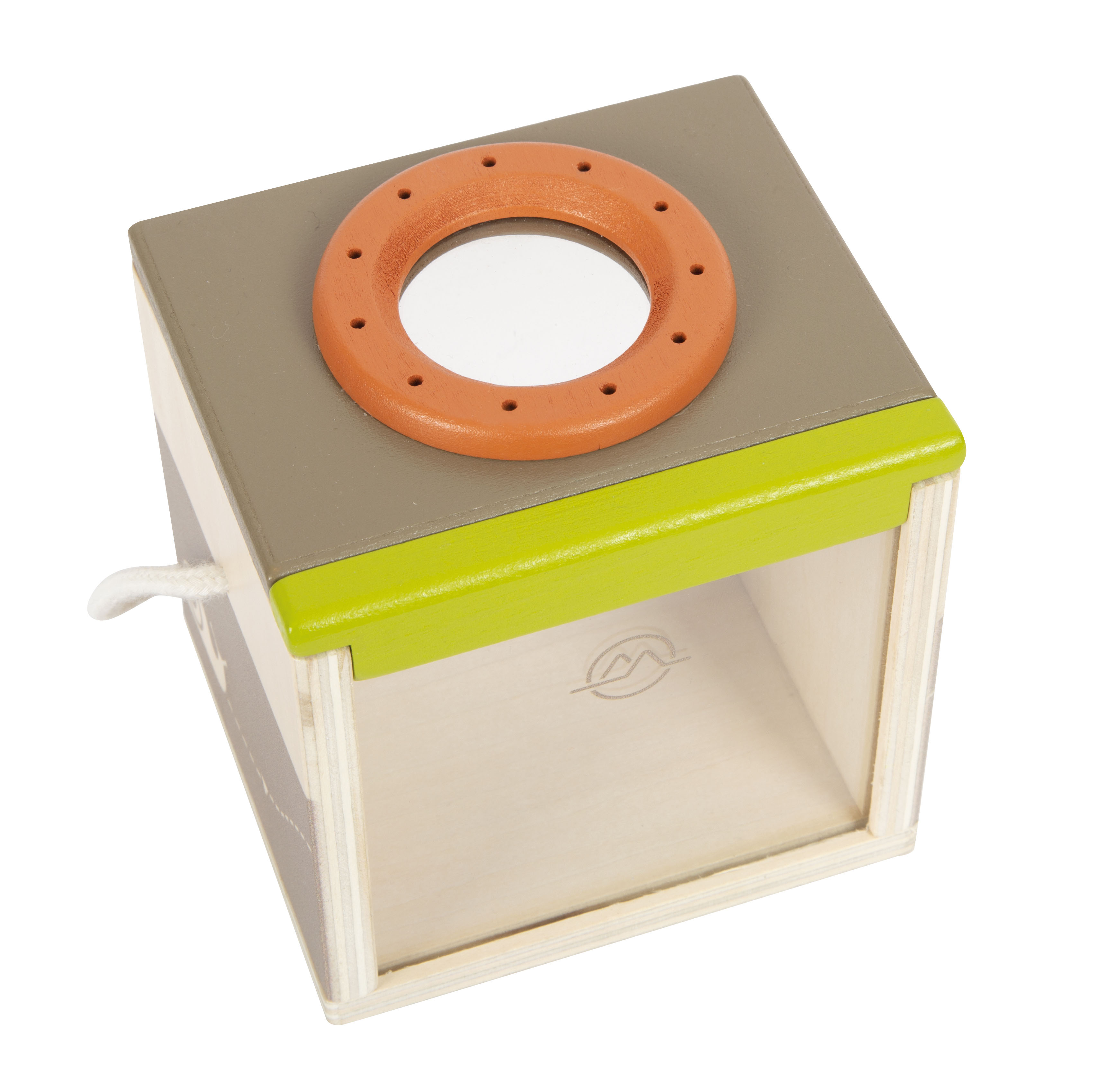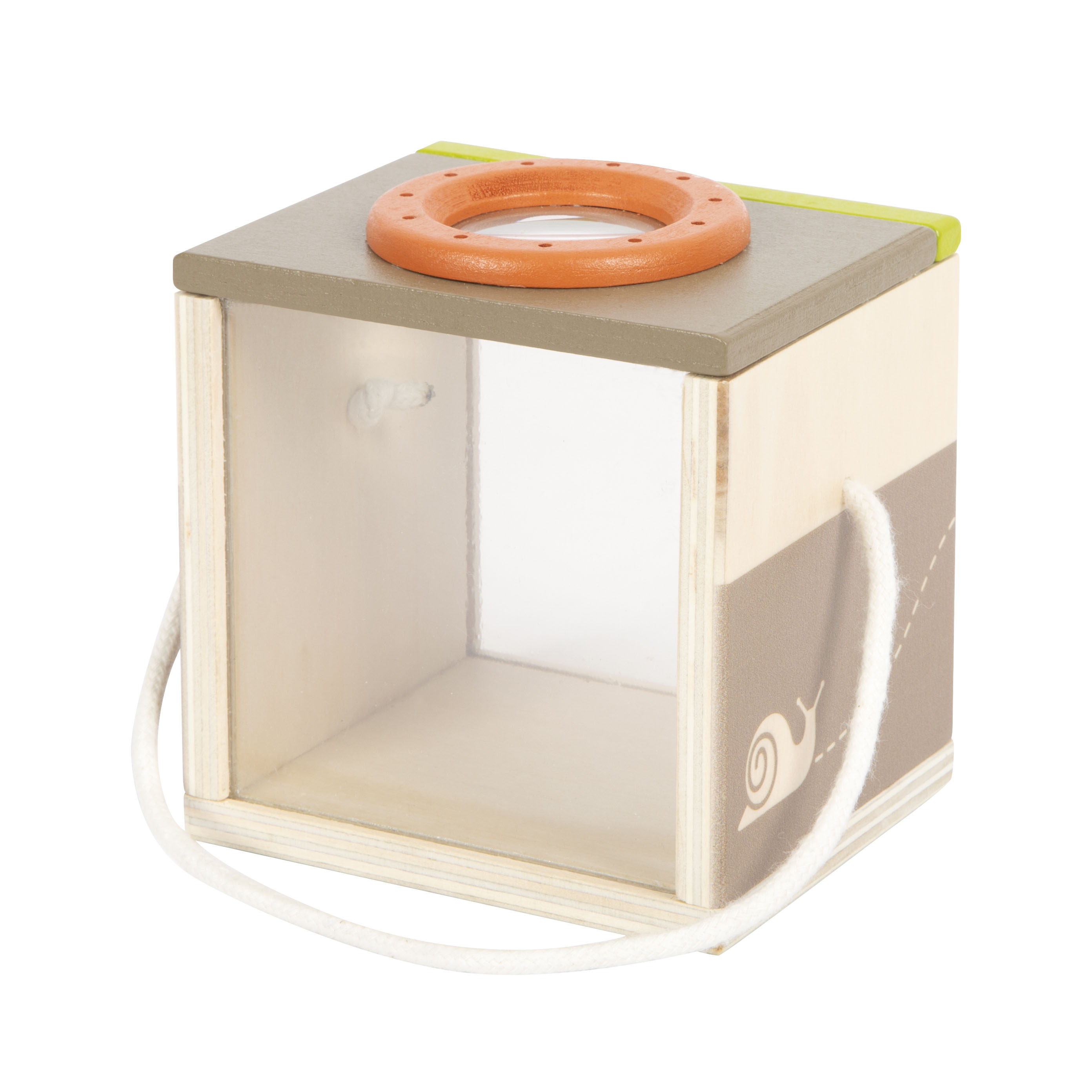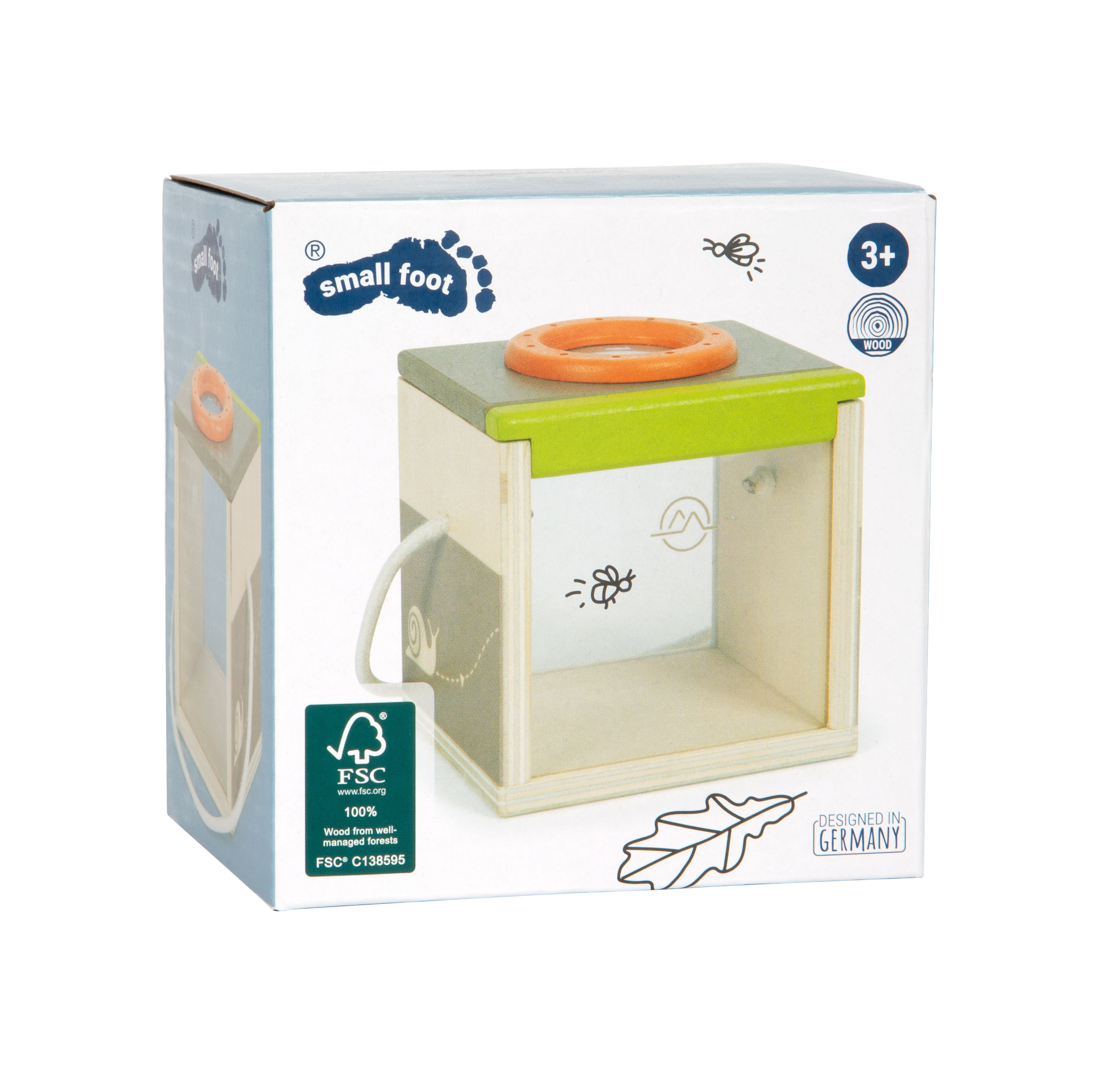 Attrezzatura da esploratori ben studiata per entusiasmanti passeggiate nella natura, spedizioni e osservazioni in giardino, nel bosco o nel prato davanti alla porta di casa! Adatto anche per osservare in maniera ludica formiche, cavallette o insetti volanti quali coccinelle o farfalle. Grazie alle sua elevata quantità di legno visibile, al design con colori della terra e tonalità di verde naturali, angoli arrotondati e la stampa di gran pregio, la scatoletta per l'osservazione è bellissima da vedere durante tutte le escursioni nella natura. Un avvertimento: la scatola per insetti non è adatta per ospitare in maniera permanente le creature in essa contenute e serve ad osservarle per un breve periodo di tempo.