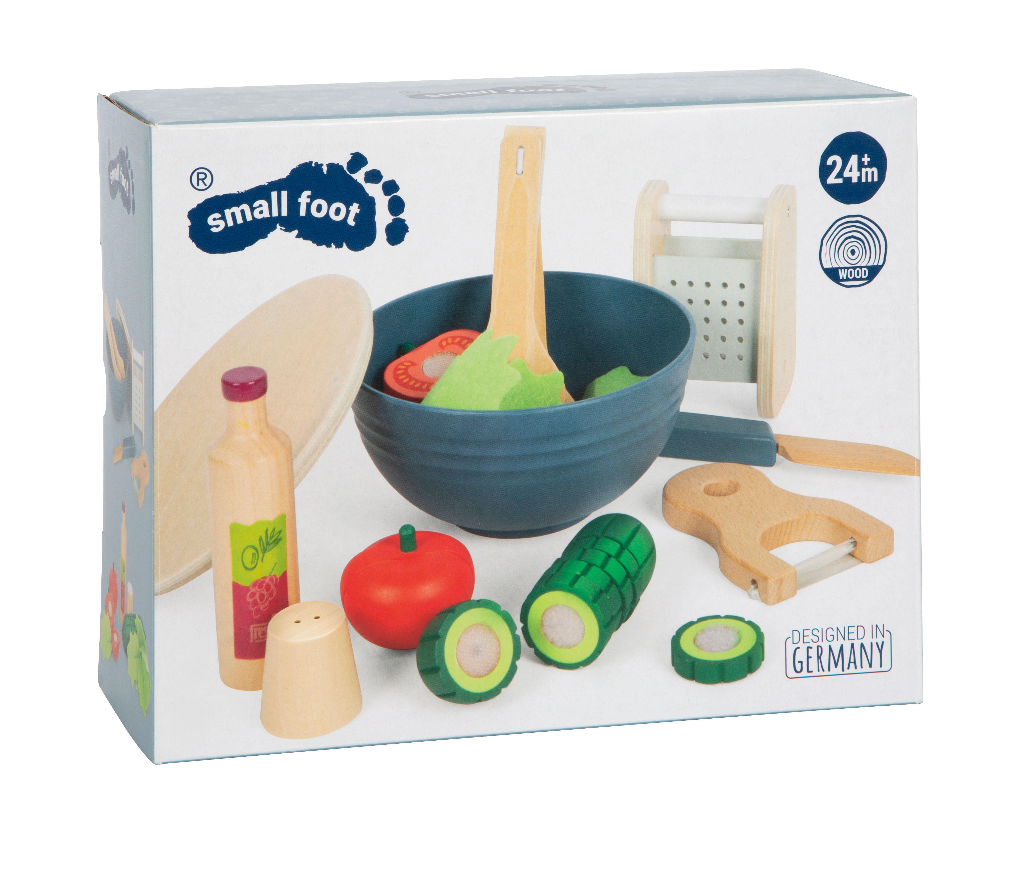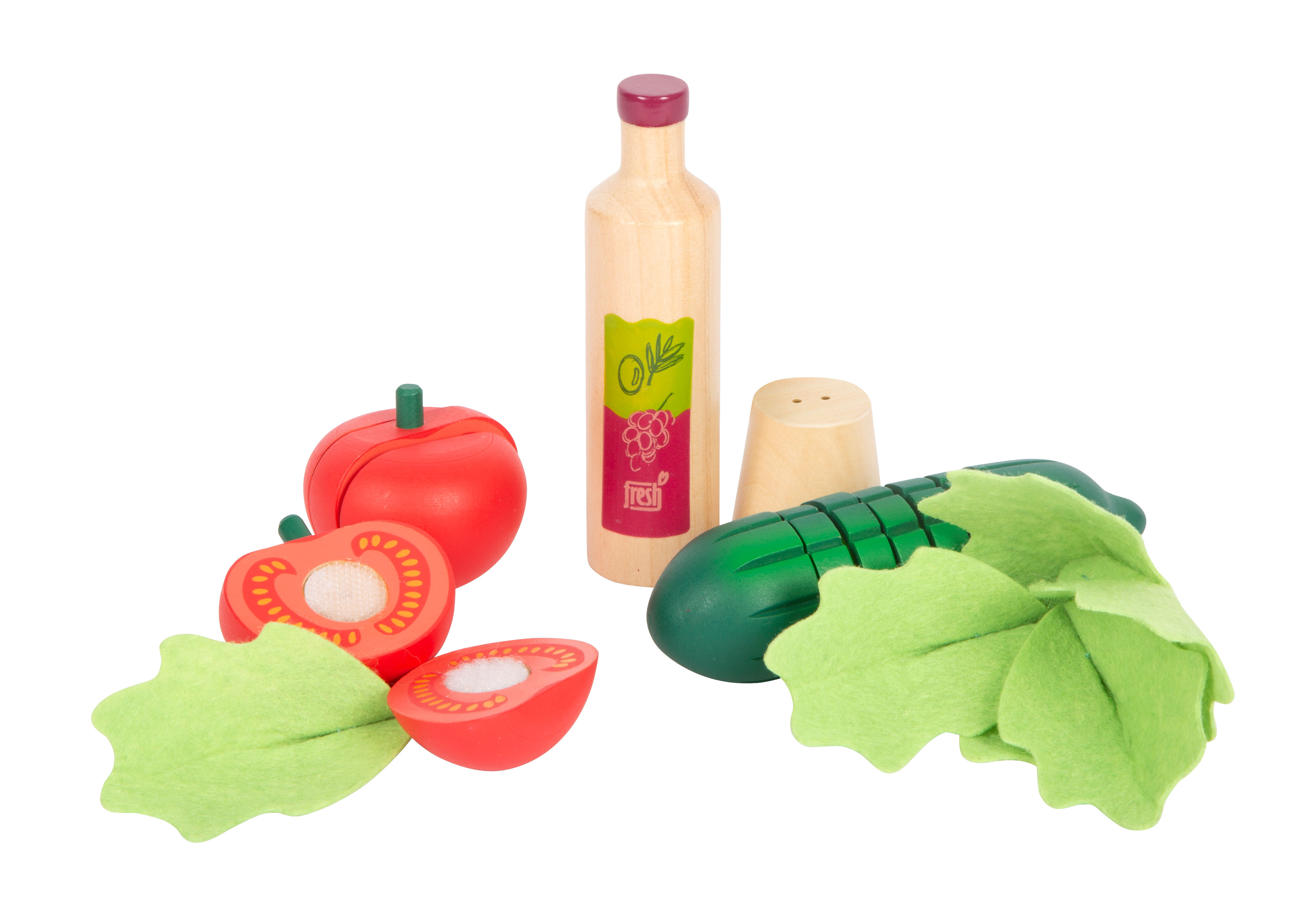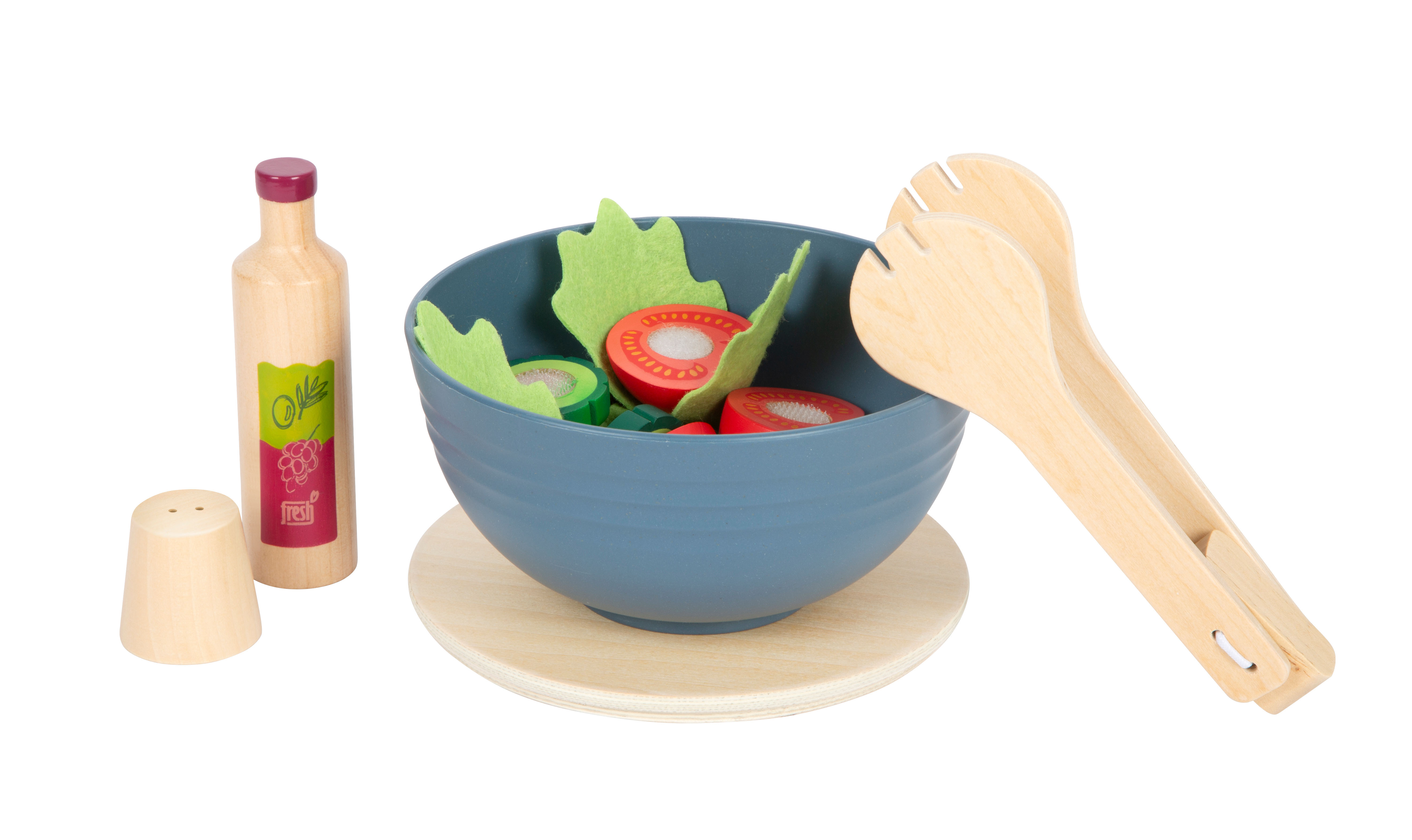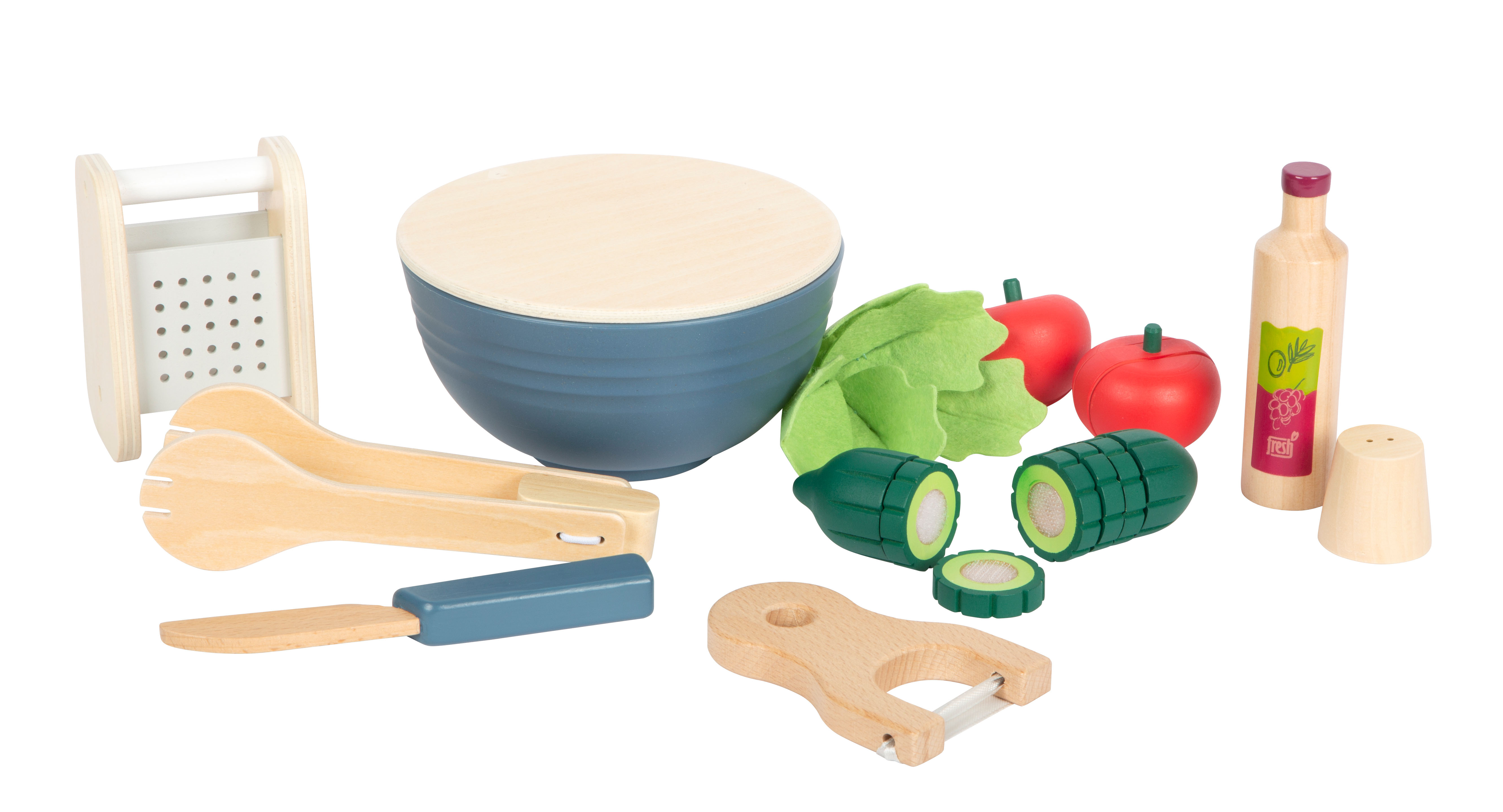 - Un set da gioco con insalata da tagliare in un design moderno e lavorato in legno di qualità
