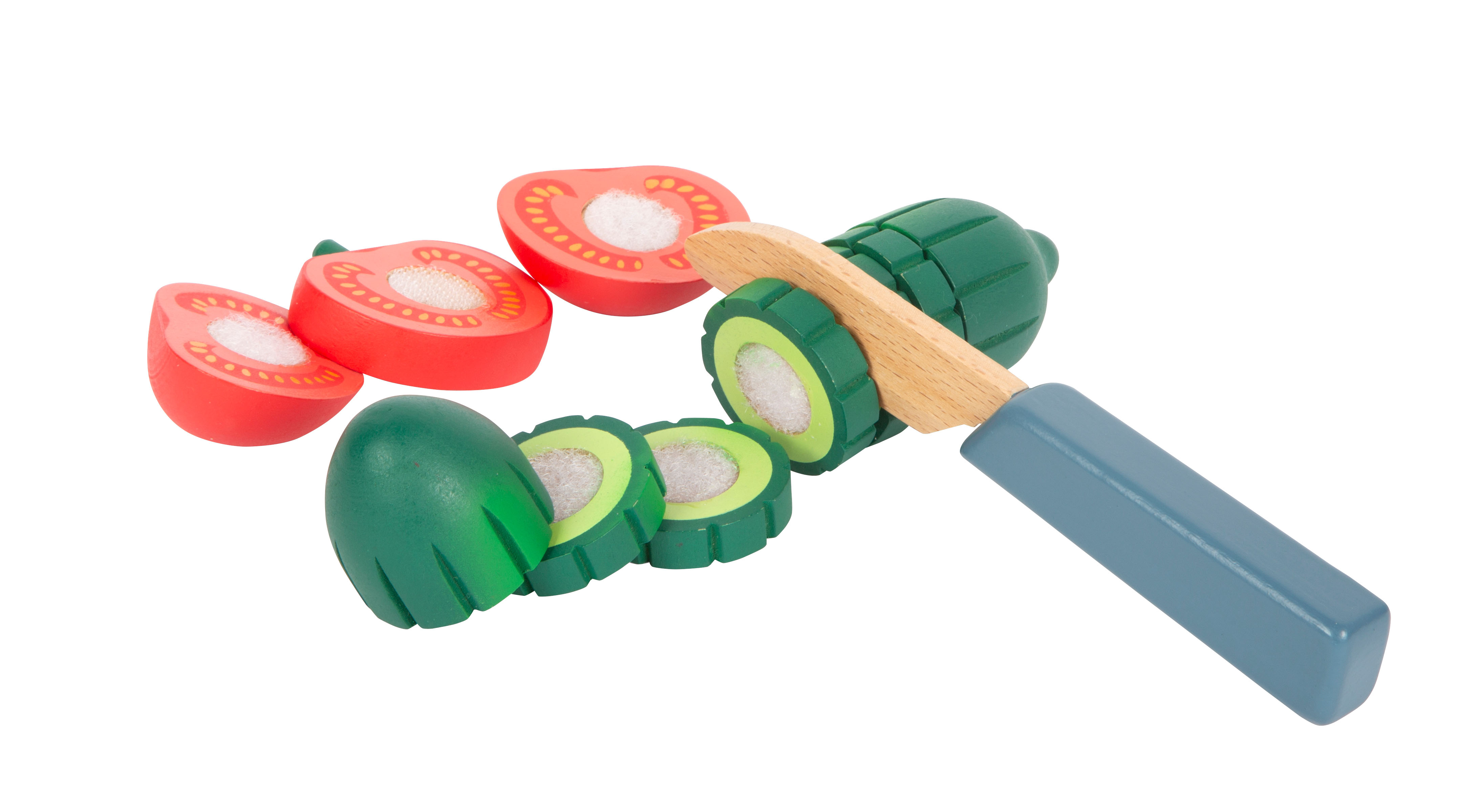 - Cetriolo e pomodori presentano del velcro per poter essere tagliati facilmente
