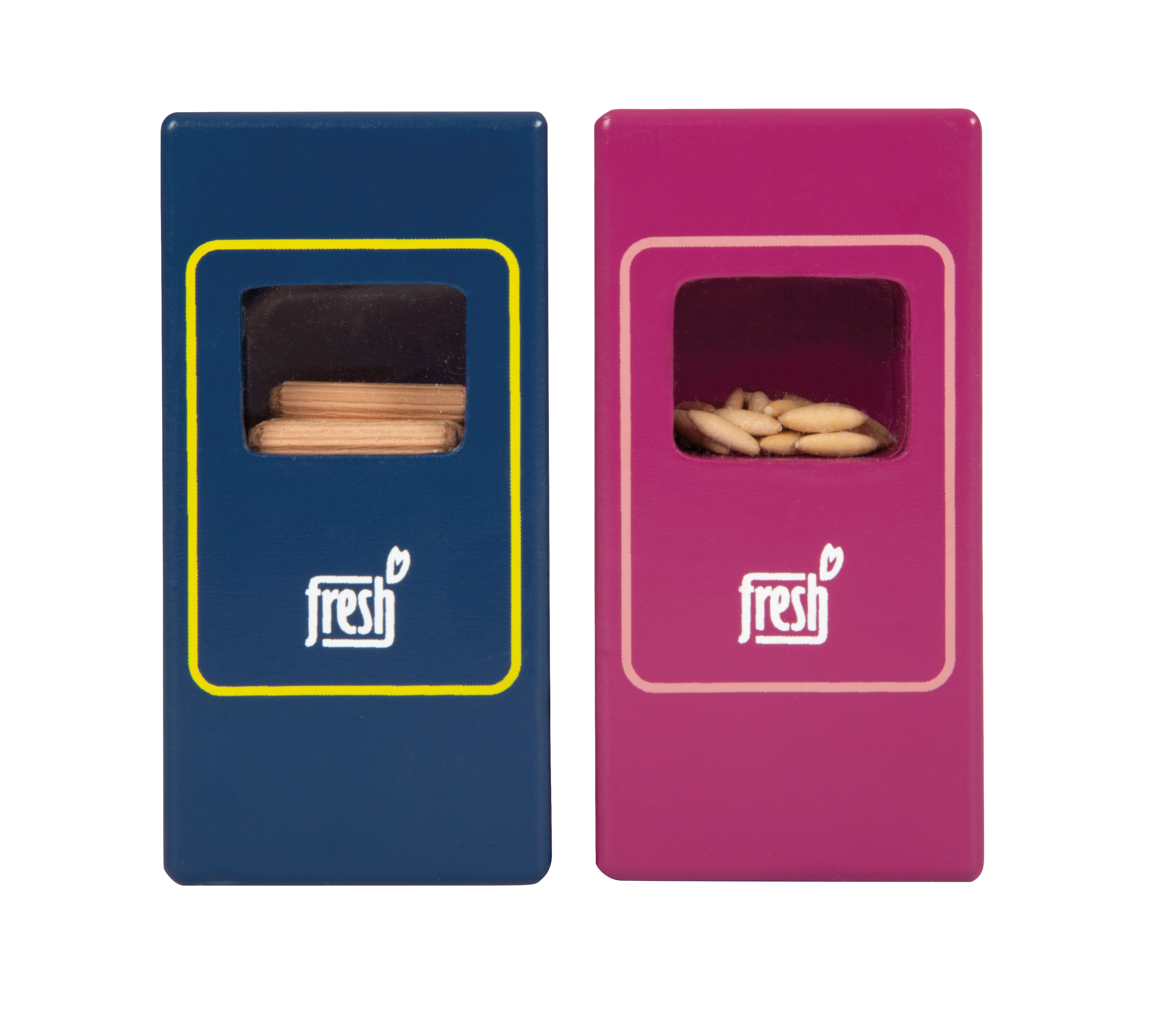 - Confezioni di pasta e riso con finestra di visualizzazione in acrilico (scuotendo il contenuto viene percepito a livello uditivo)