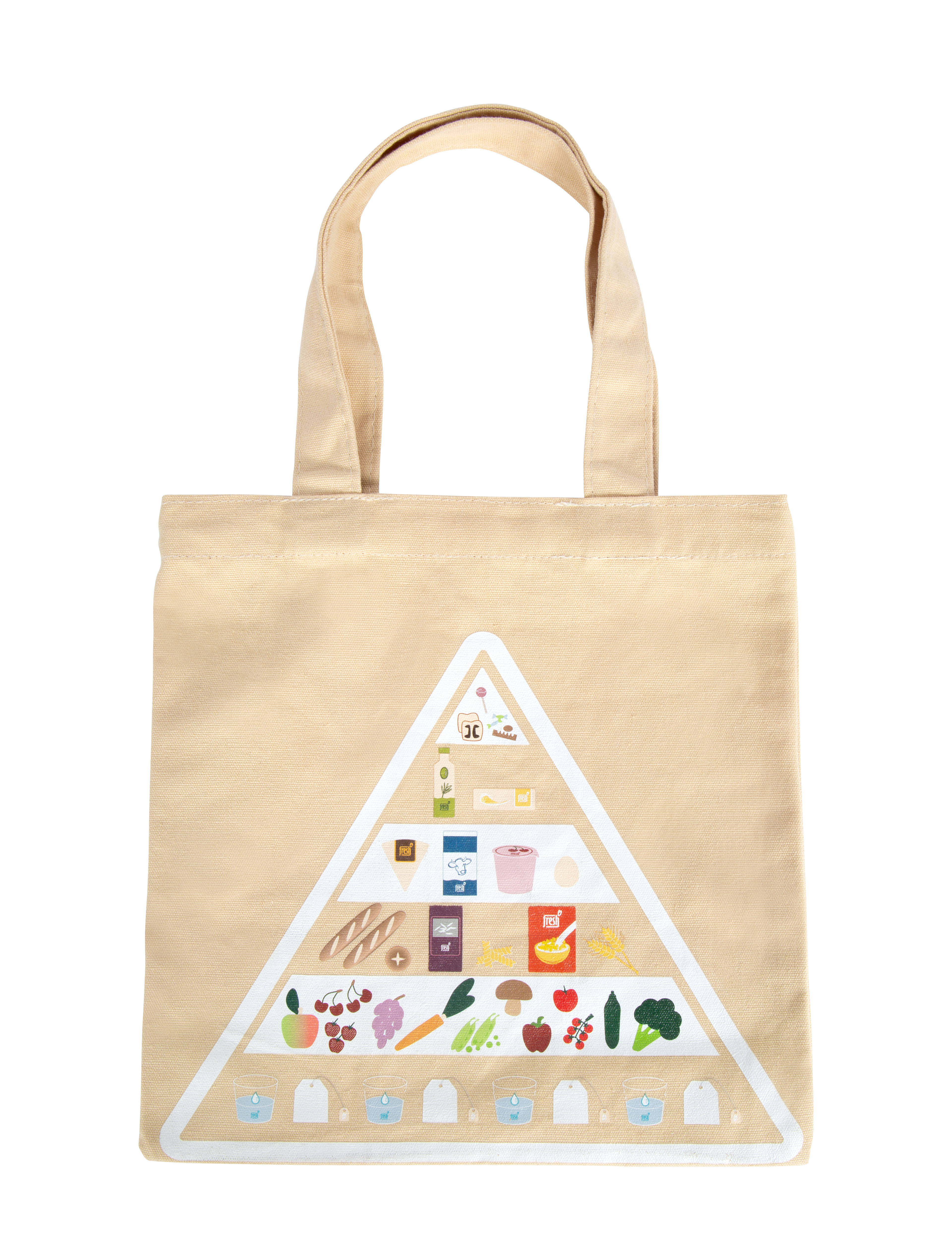 - Incl. borsa della spesa in cotone stampata con la piramide alimentare