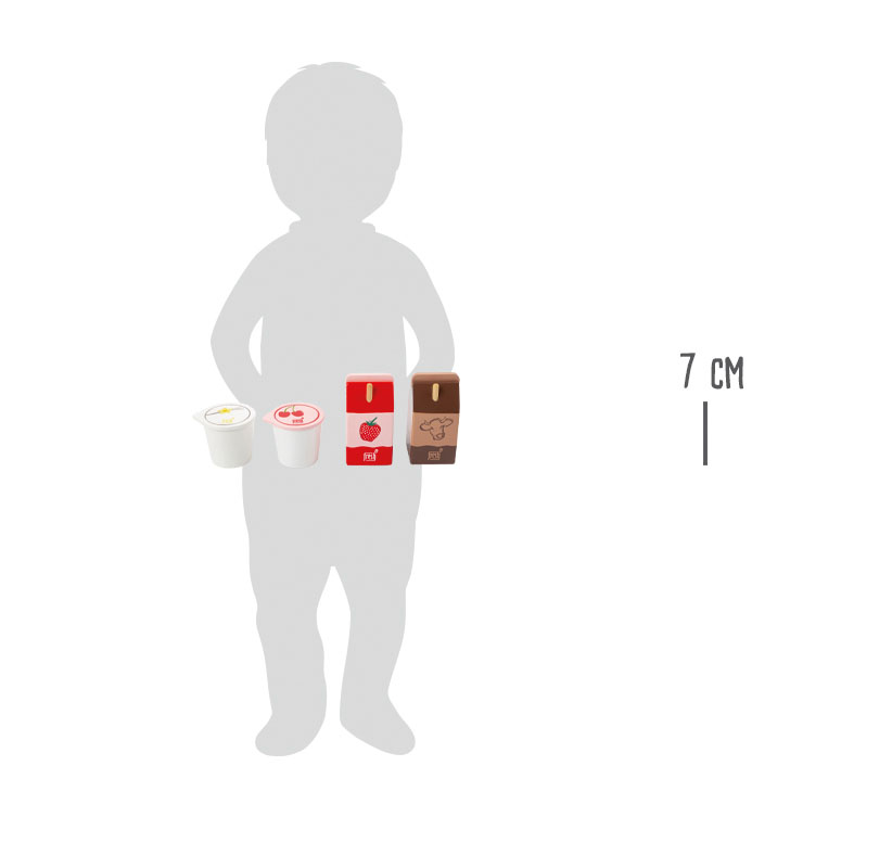 - Sono compresi due yoghurt nei gusti ciliegia e vaniglia e due cartoni di latte, alla fragola e al cacao. Tutto in legno