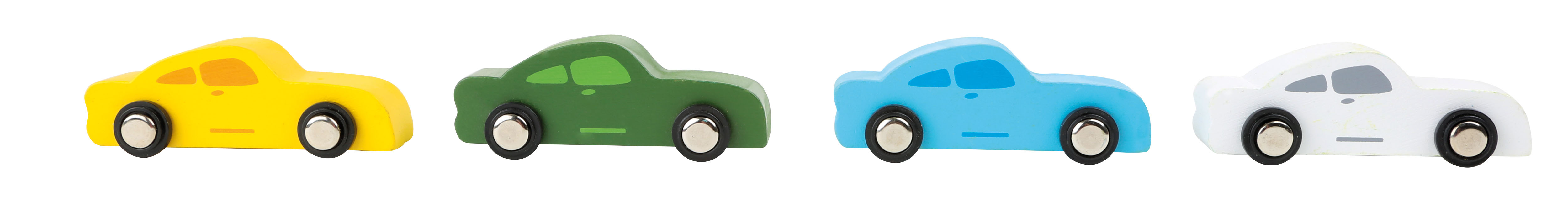 - Sono compresi quattro veicoli in legno dal design sportivo