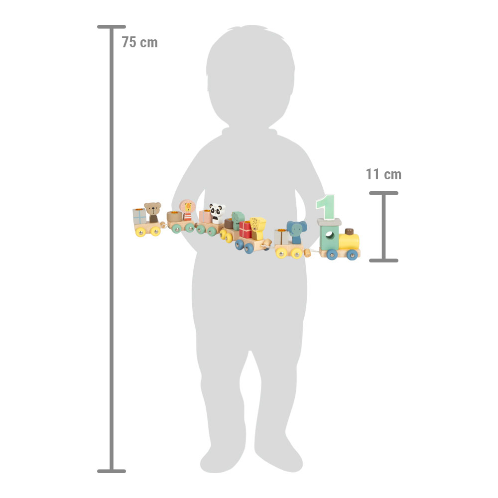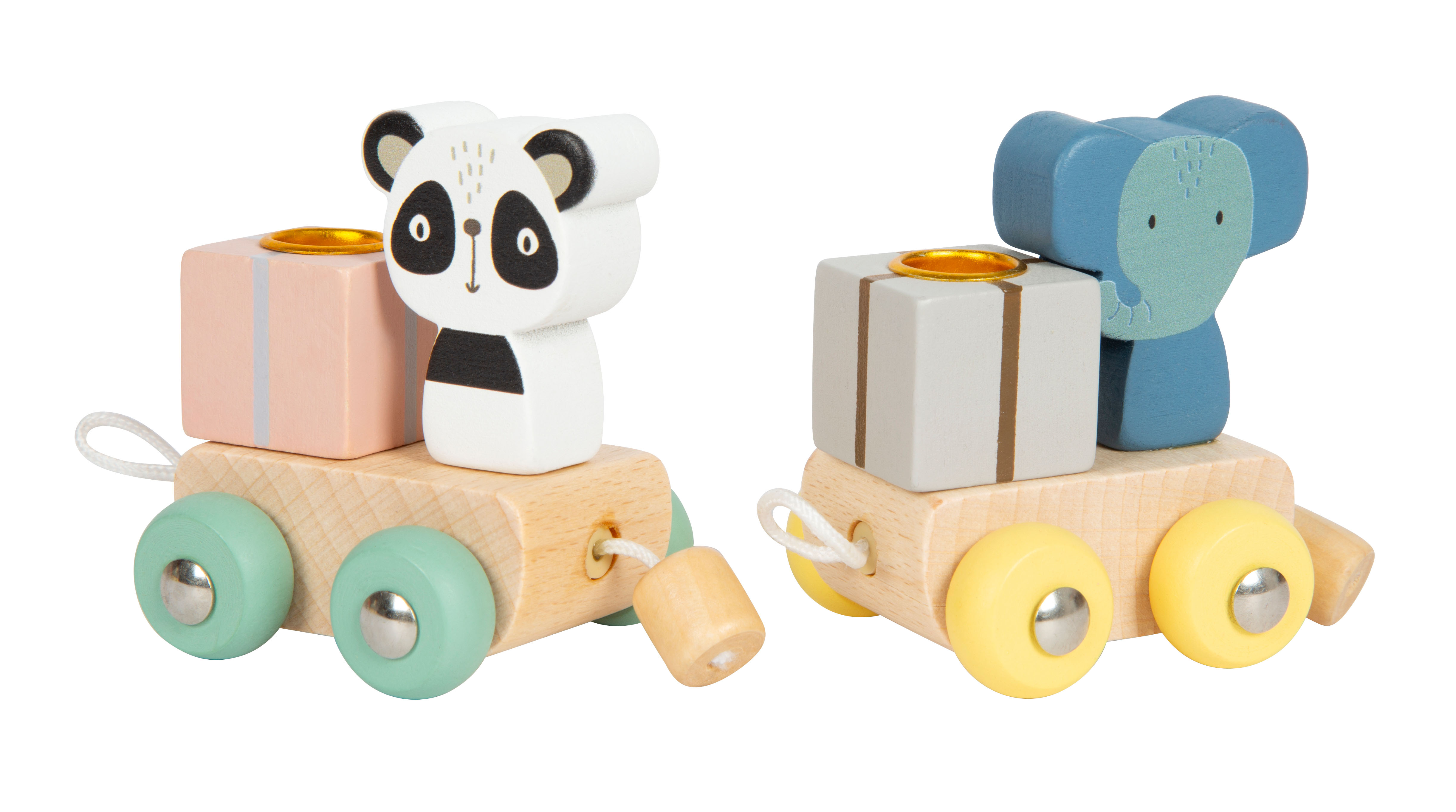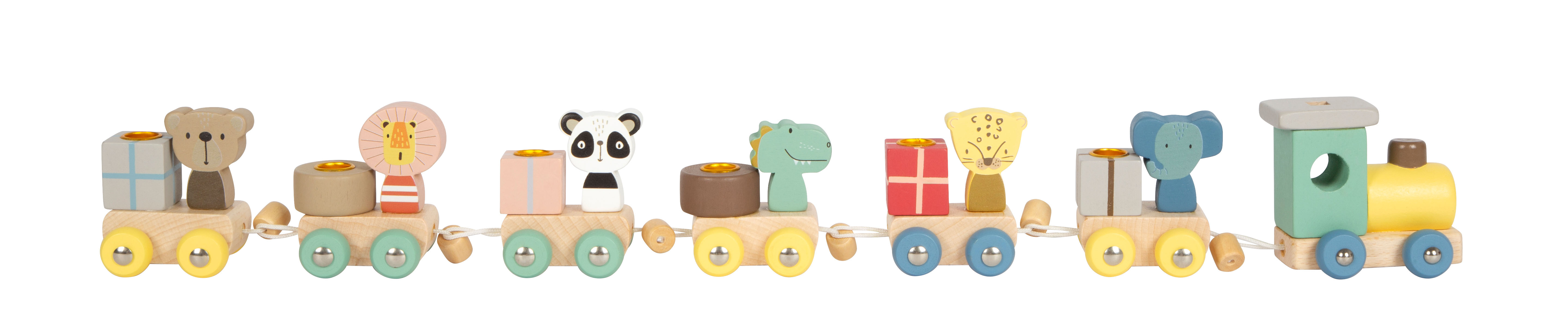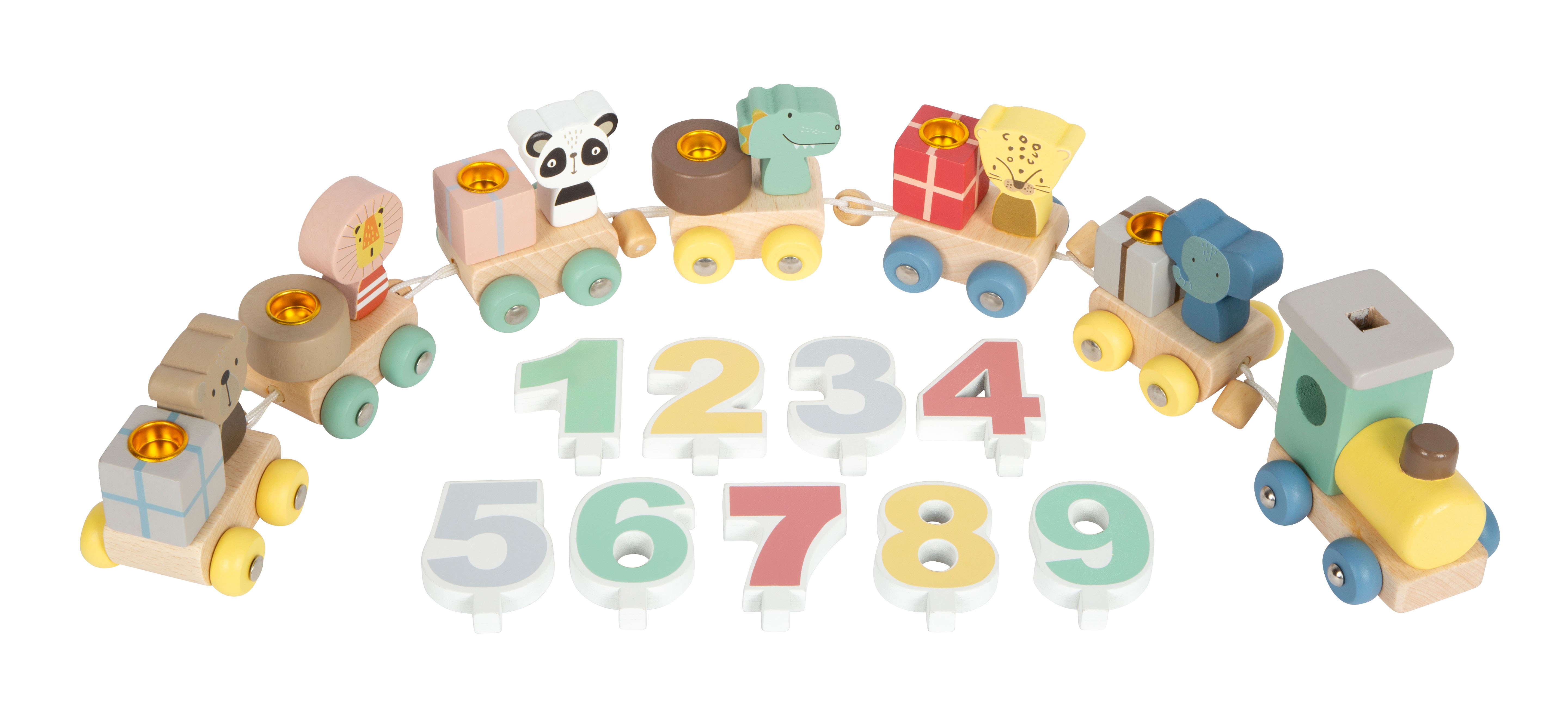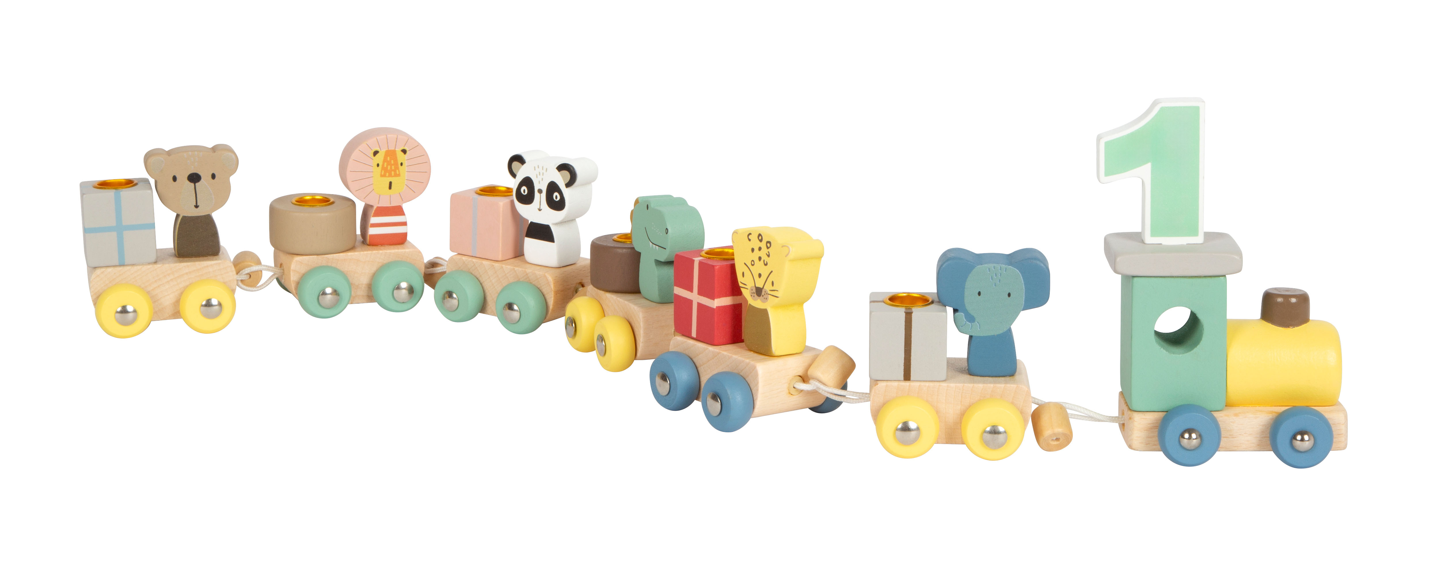 Questo grazioso trenino di compleanno in legno è una bellissima decorazione per ogni festa di compleanno! La locomotiva mobile con i suoi sei vagoni "bestiali" può essere decorato con i numeri da 1 a 9, che possono essere semplicemente infilati sopra. I dolci animali, tra cui un leone, un panda, un elefante, conferiscono al trenino un design colorato e adatto ai bambini. Ogni vagone è dotato di un portacandela per candeline piccole (circa 1,5 cm di diametro), che mettono il tavolo del compleanno nella giusta luce. Il trenino di compleanno non solo è una decorazione meravigliosa, bensì può essere utilizzato anche come giocattolo. Grazie alla sua lavorazione robusta e al design adatto ai bambini è adatto per i piccoli fan dei treni. Un regalo duraturo che regala nuovamente gioia ogni anno!