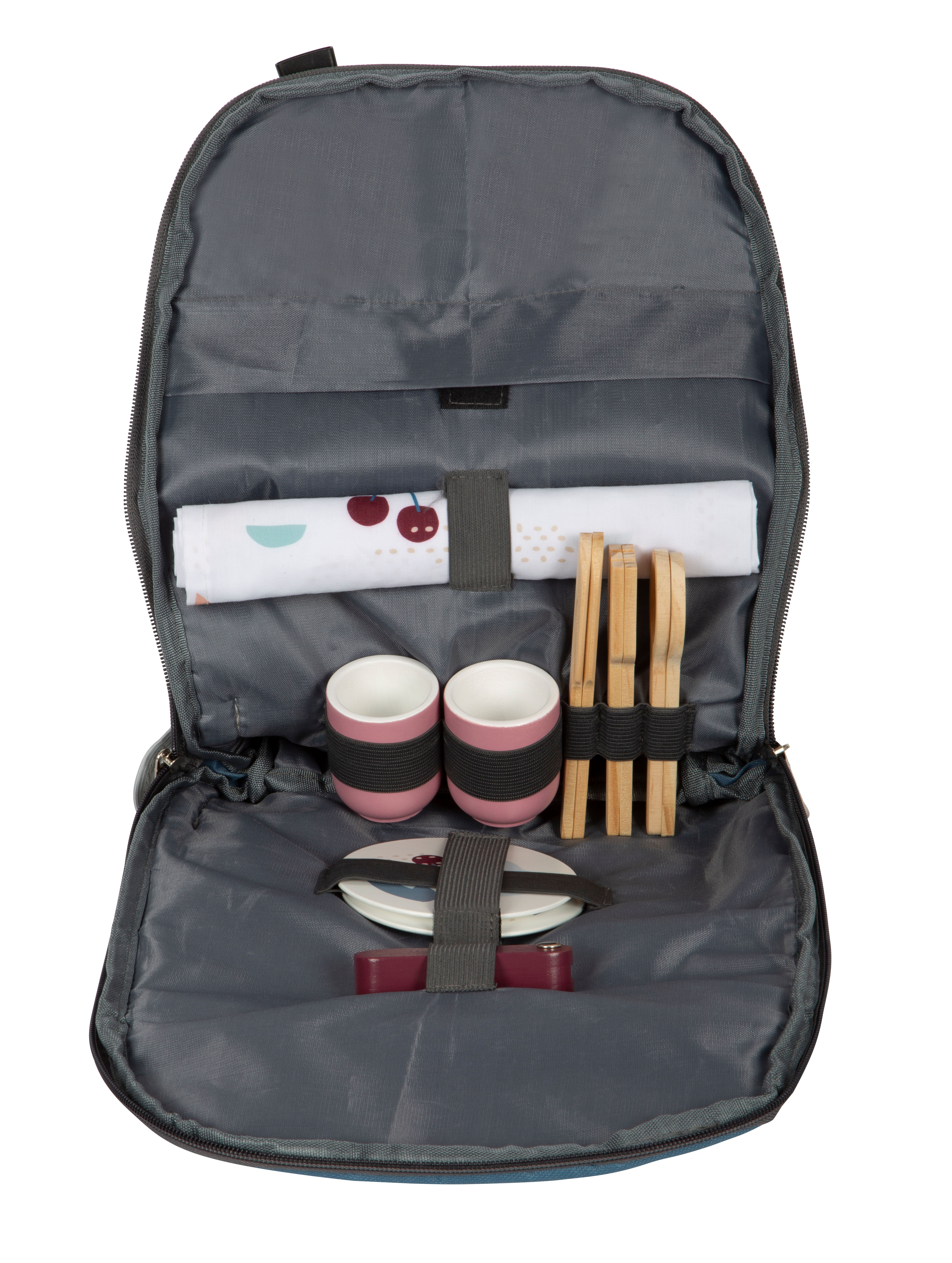 - incl. piatti, bicchieri, posate, thermos, coltello pieghevole e coperta da picnic