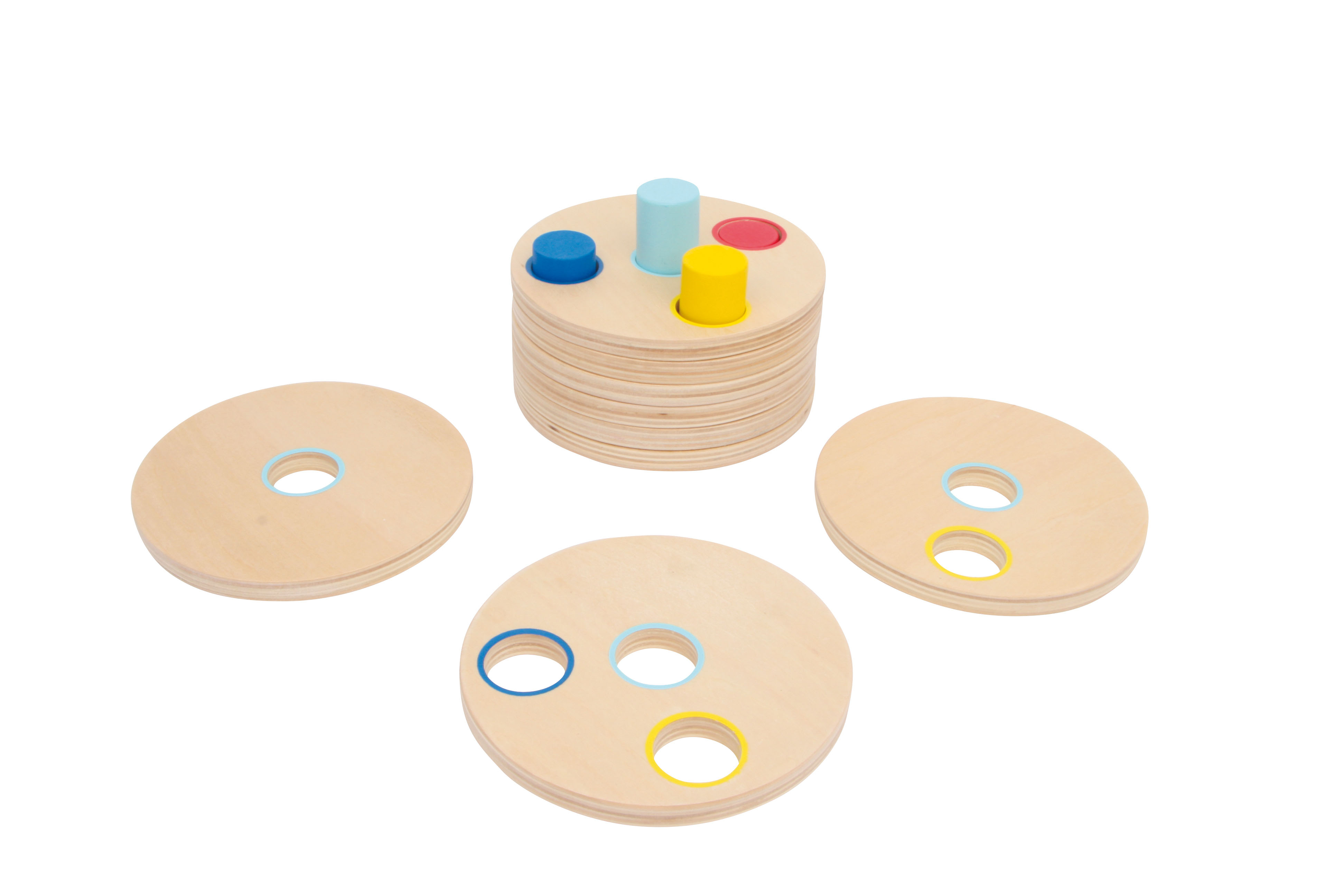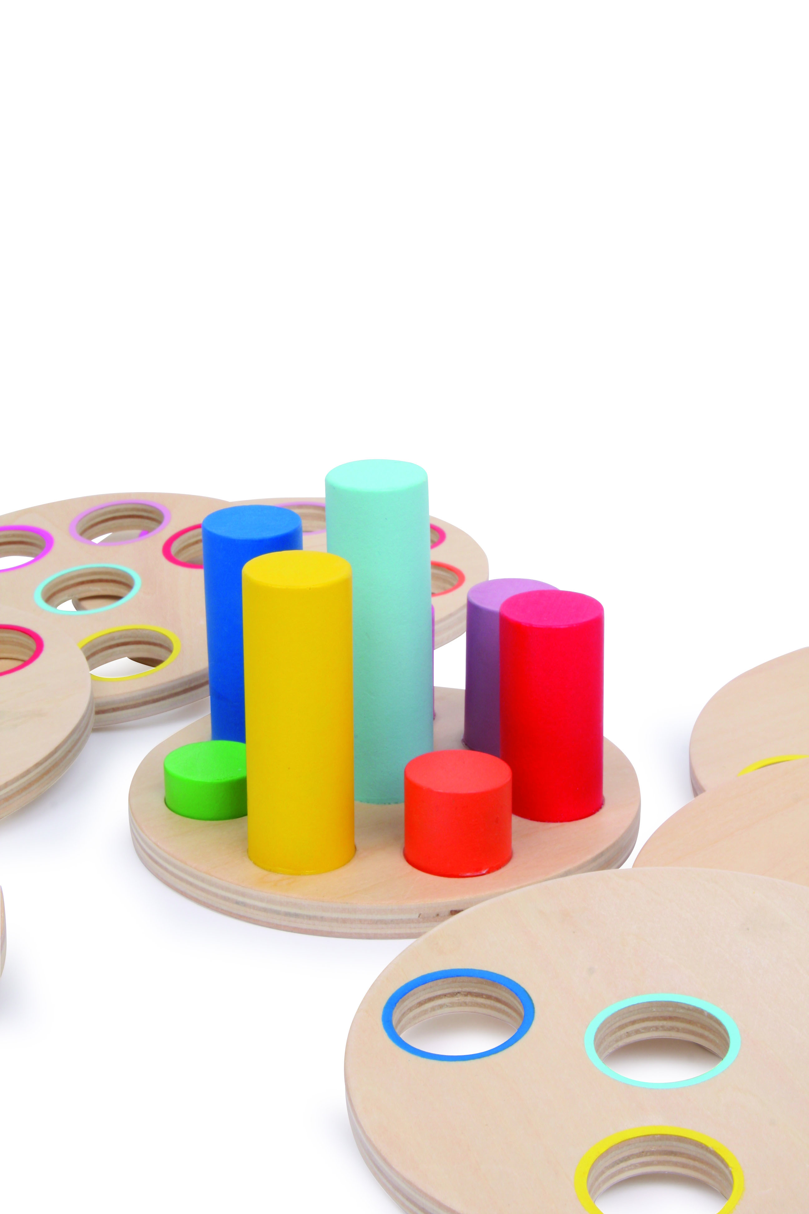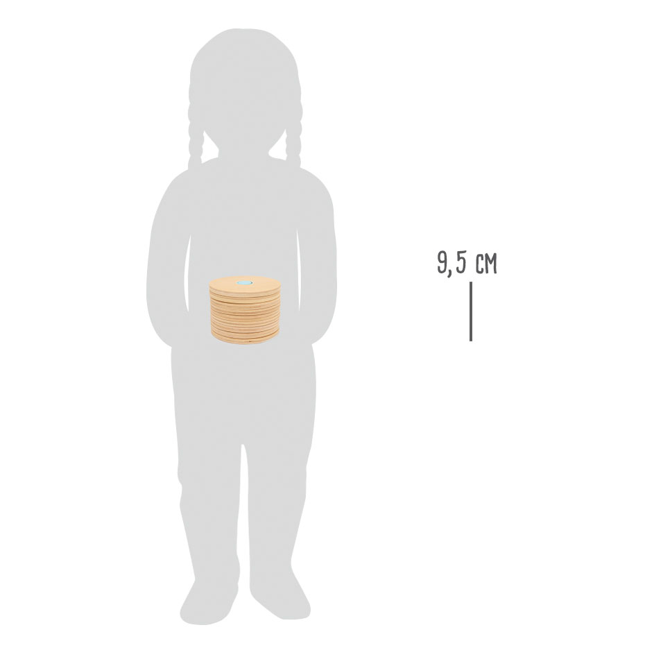 Genau schauen, überlegen, probieren und passend stecken – ein tolles Steckspiel zur Schulung der Motorik und der Hand-Augen-Koordination! Acht stabile Scheiben (1 cm stark) aus fein geschliffenem Schichtholz sollen auf die farbigen Stäbe gesteckt werden. Da die Stäbe unterschiedlich lang sind und jede Scheibe immer eine Öffnung weniger hat als die vorhergehende, gibt es zur Lösung nur einen Weg!