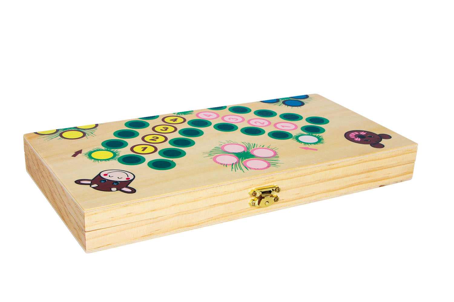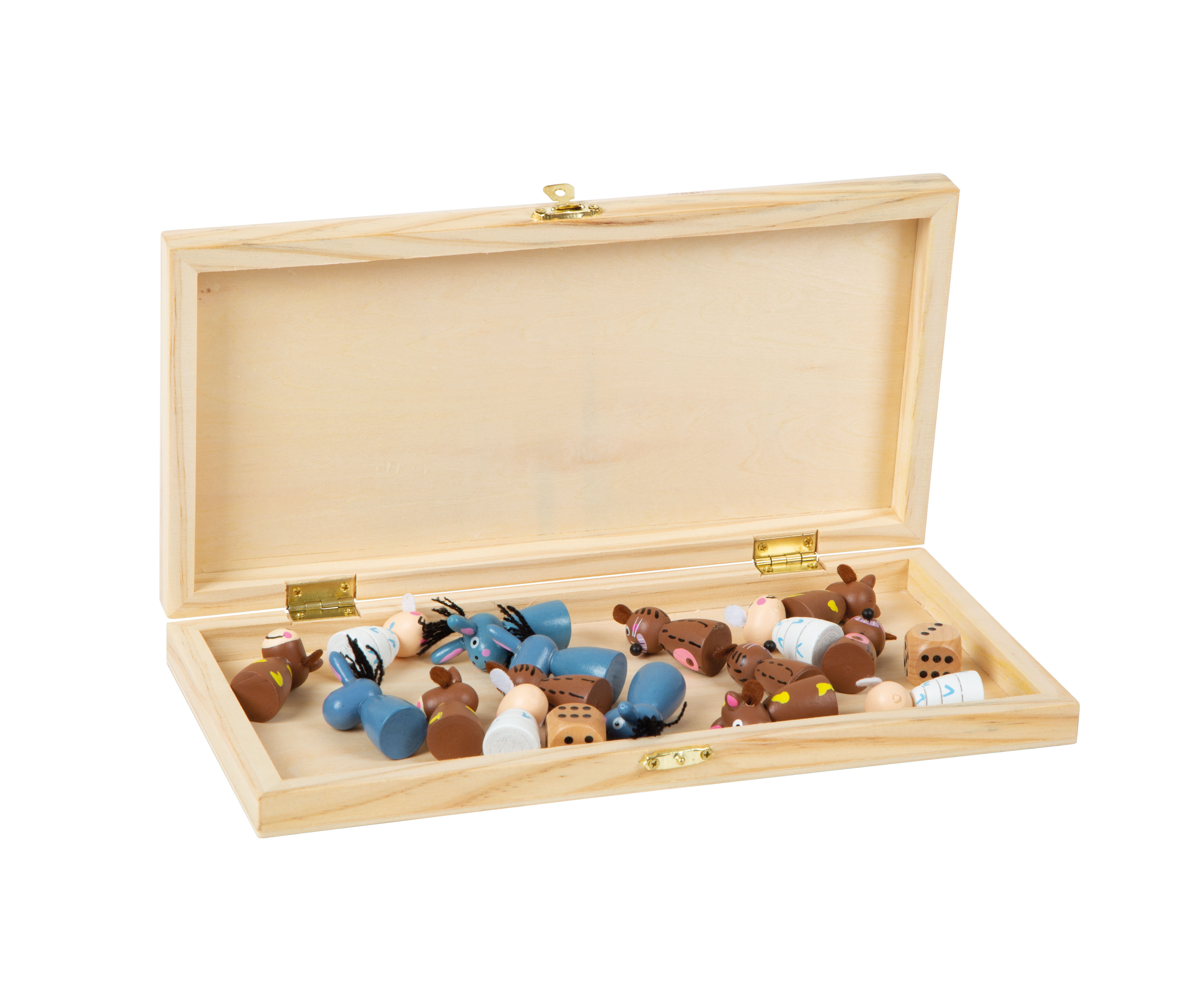 Kinderleicht lässt sich die Holzbox durch einen Klickverschluss verschließen und ist bereit für den nächsten Spieleinsatz.