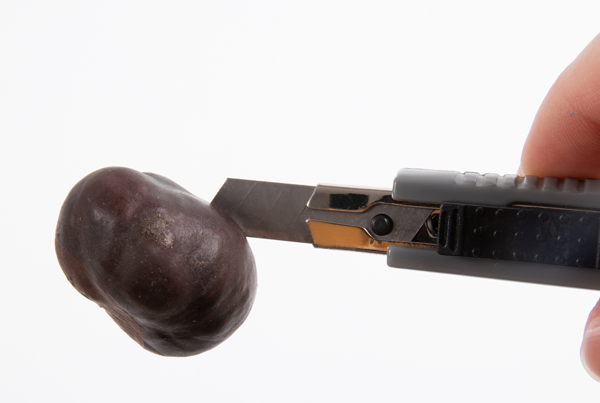 Nun macht ihr ebenfalls einen Schlitz in die Kastanien.