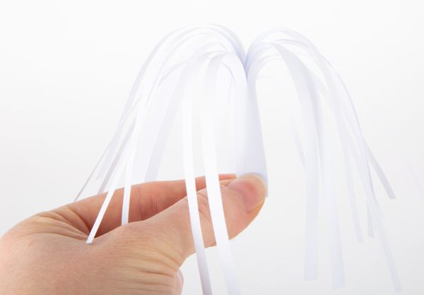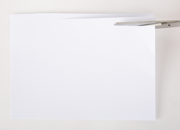 Als nächstes wird nun das weiße Papier in regelmäßigen Abständen eingeschnitten. Achtet darauf, dass unten mindestens 3cm nicht eingeschnitten werden.