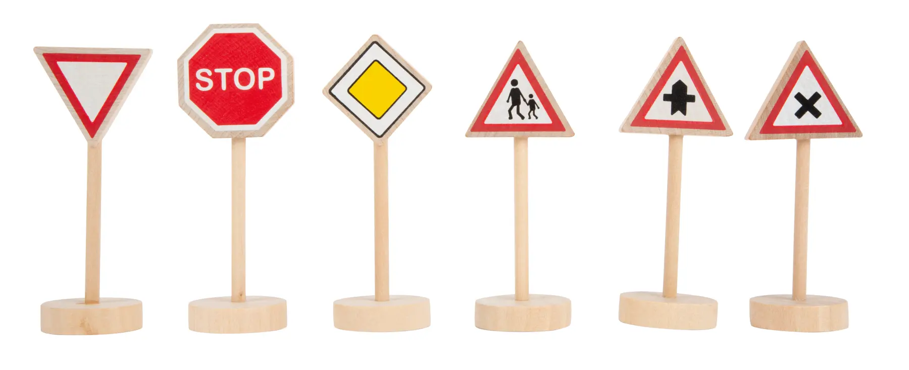 Für Sicherheit und Ordnung im Auto- und Straßenverkehr rund ums Parkhaus sorgt das neue Verkehrsschilder-Set aus Holz der Marke small foot. Dabei regeln die realitätsnah gestalteten internationalen Verkehrszeichen mit standsicherem Holzfuß nicht nur den Verkehr in der Spielwelt, sie vermitteln auch ganz nebenbei die wichtigsten Verkehrsregeln im Sinne einer frühen Verkehrserziehung. Mit dabei ist eine doppelseitige Ampel, die eine Rot- und eine Grünphase zeigt. Eine perfekte Erweiterung zur Parkgarage! Wer weiß, wie das „Stopp“-Schild aussieht und was man an einem Zebrastreifen tut?