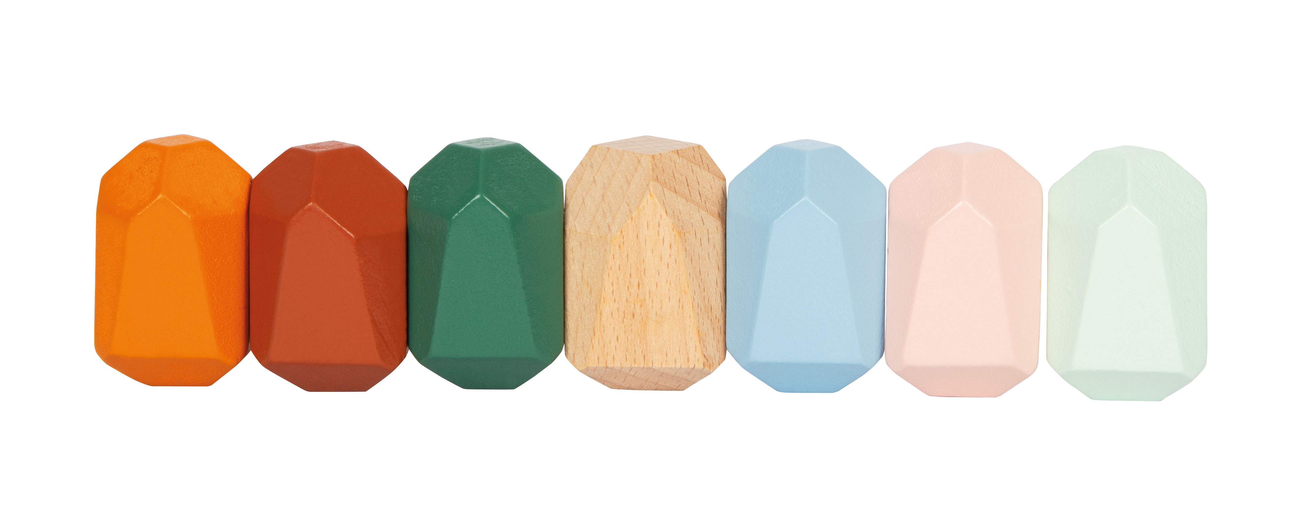 - 18 Balancierbausteine aus hochwertigem Holz in sanften, modernen Farben