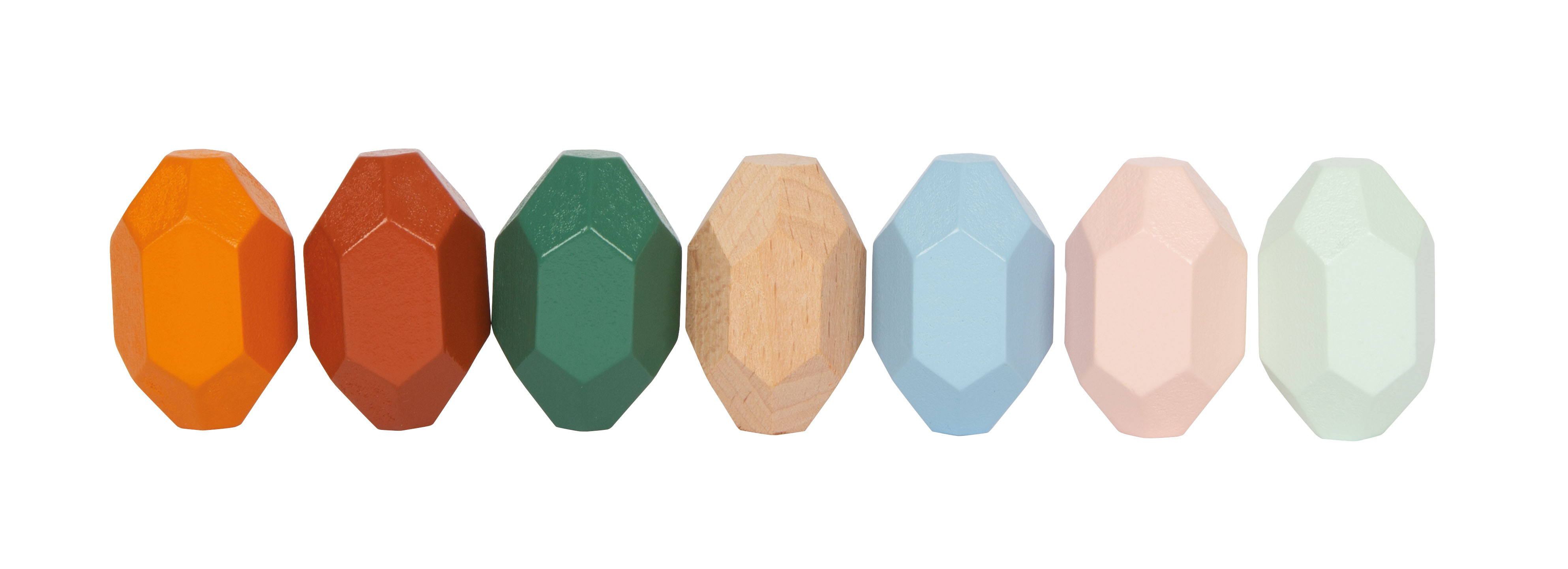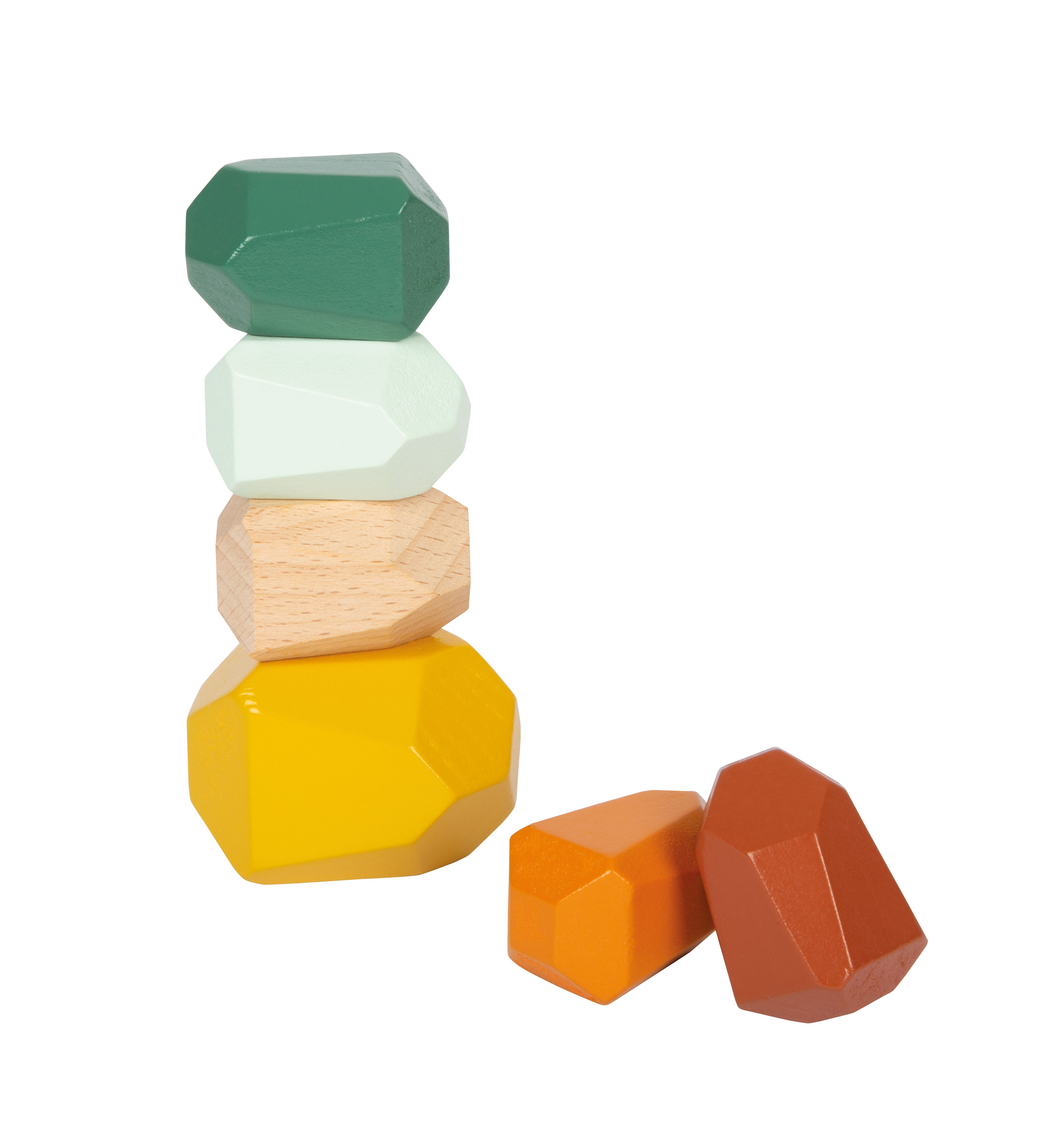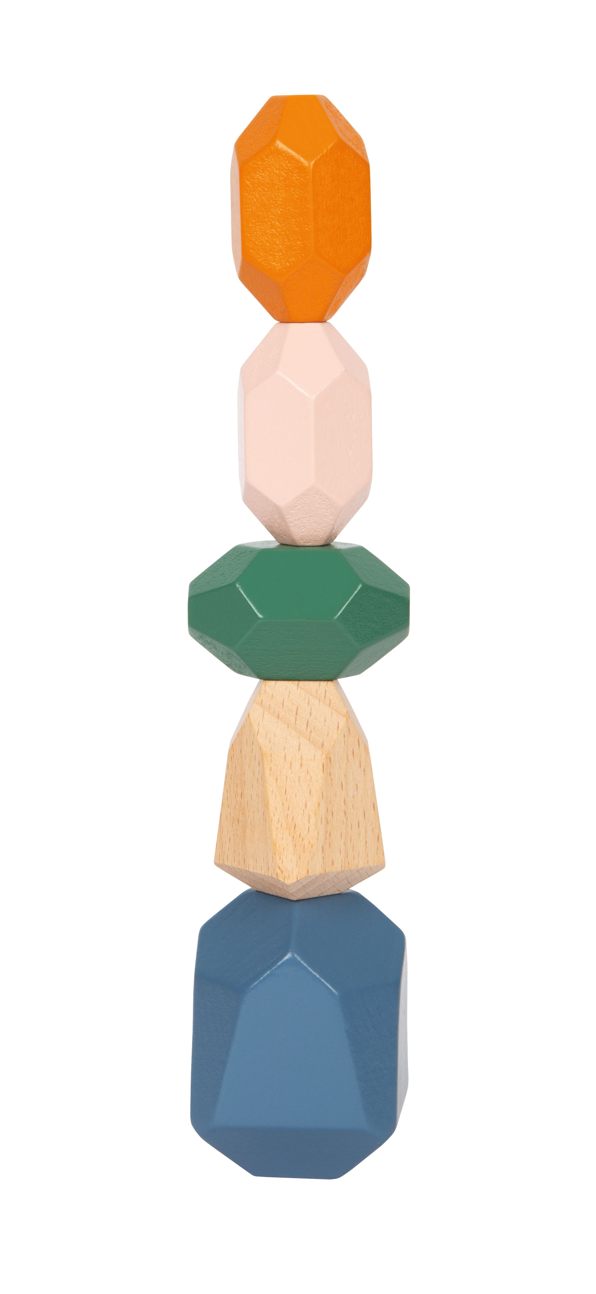 Ein Balance-Bauwerk entsteht – das sorgt für die Extraportion Stapelspaß! Die individuelle Form jedes Steins macht das Stapeln der Bausteine anspruchsvoll. Es sind Konzentration, Geduld, und kreatives Denken erforderlich. Gleichzeitig lernen Kinder, mit Schwerkraft und Balance umzugehen. Ein außergewöhnliches Steinform-Stapelspielzeug, das durch sanfte Farben und angenehme Haptik überzeugt.