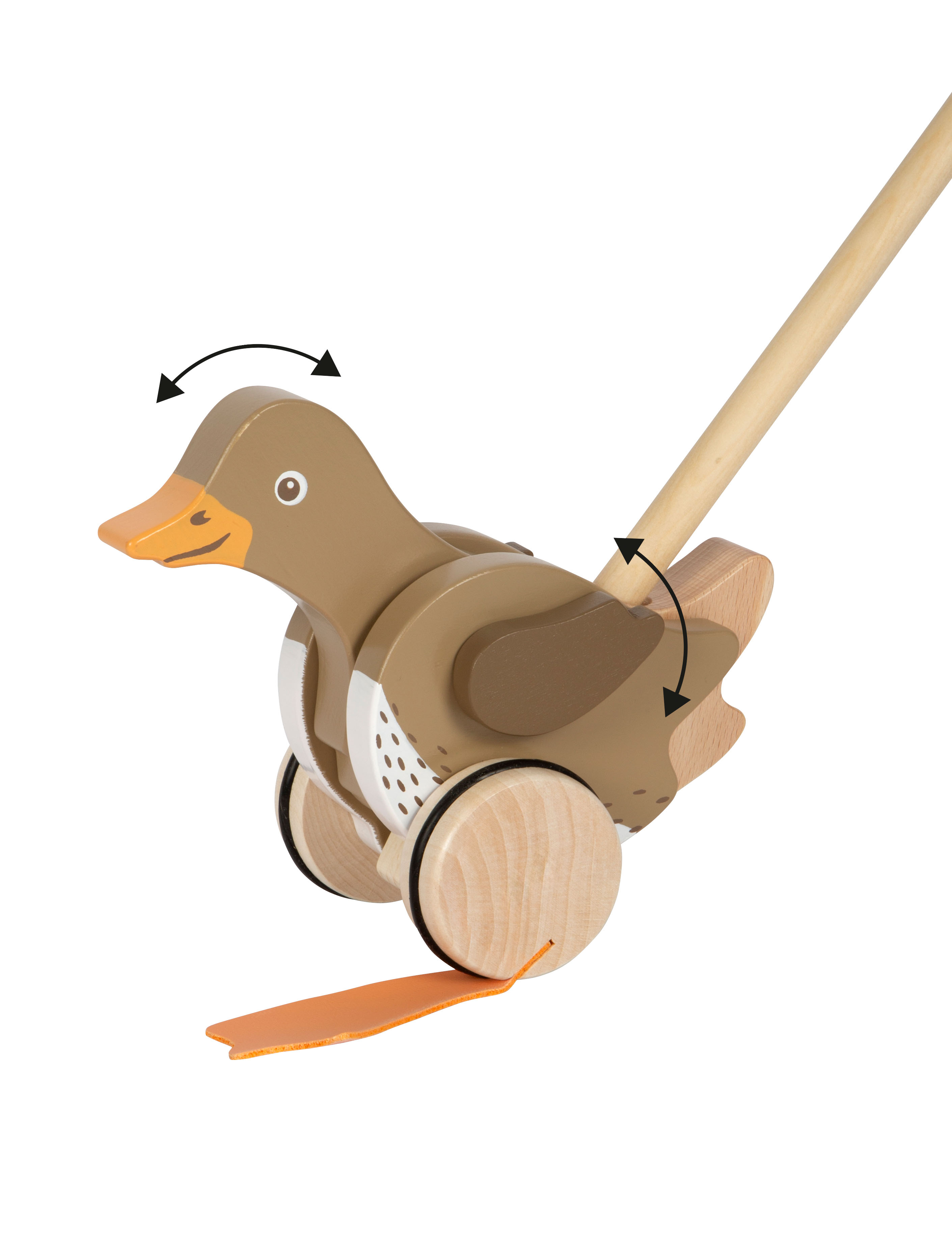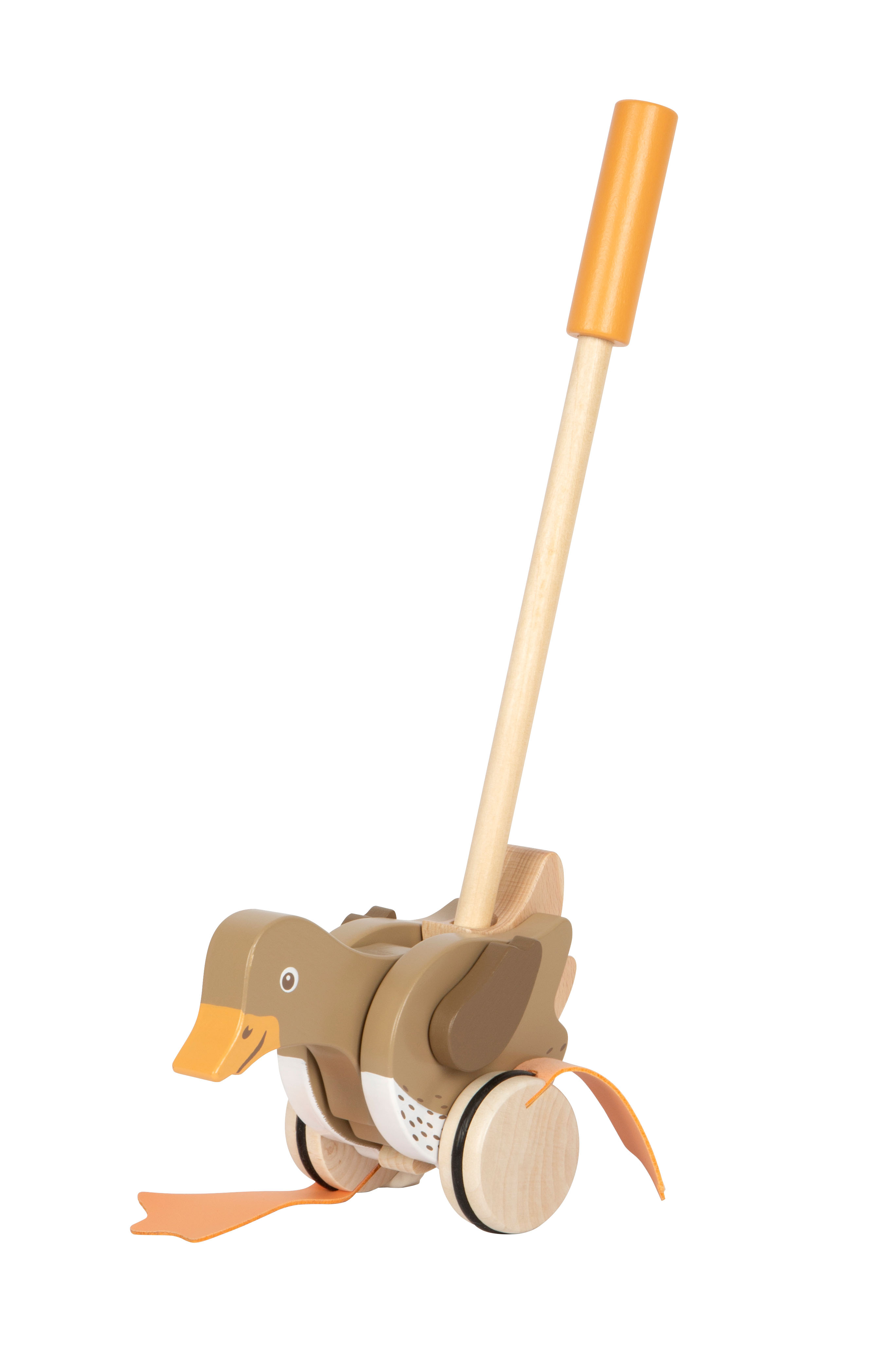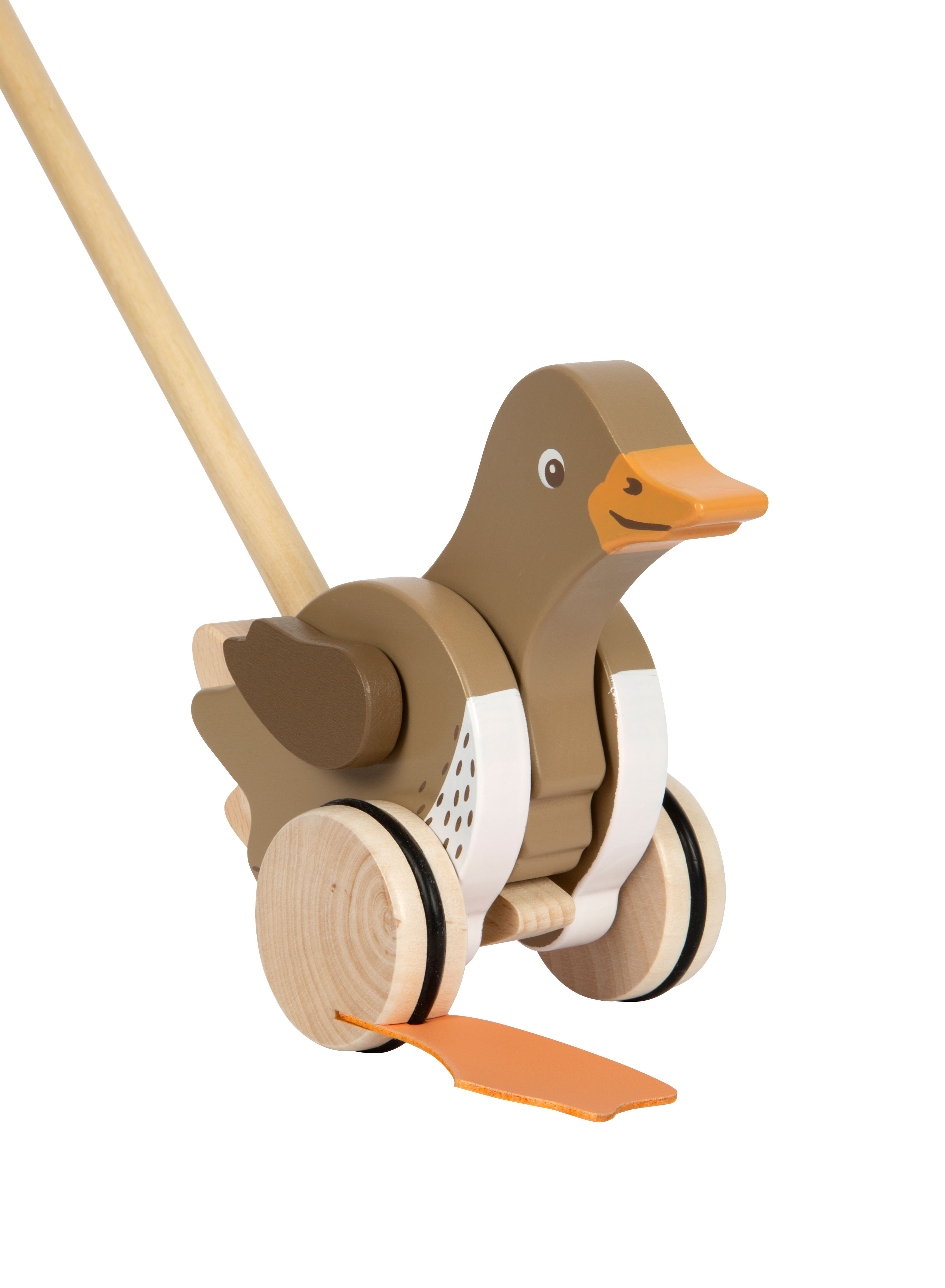 Ein amüsierendes Holzspielzeug für die Kleinen und ein treuer Begleiter auf jedem Spaziergang! Mit für Kinderhände gut zu greifendem Griff und in der Mitte teilbarem Schiebestab.