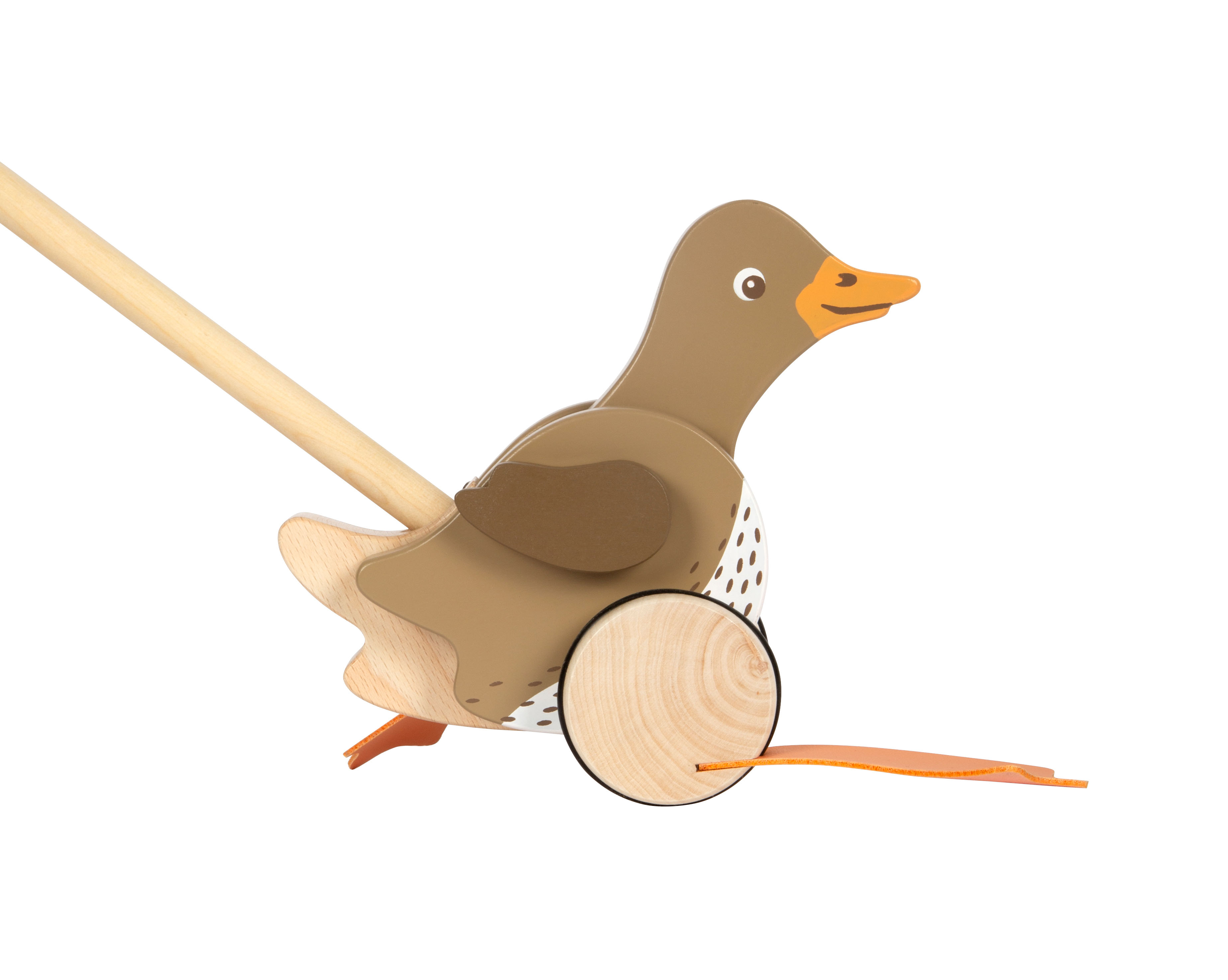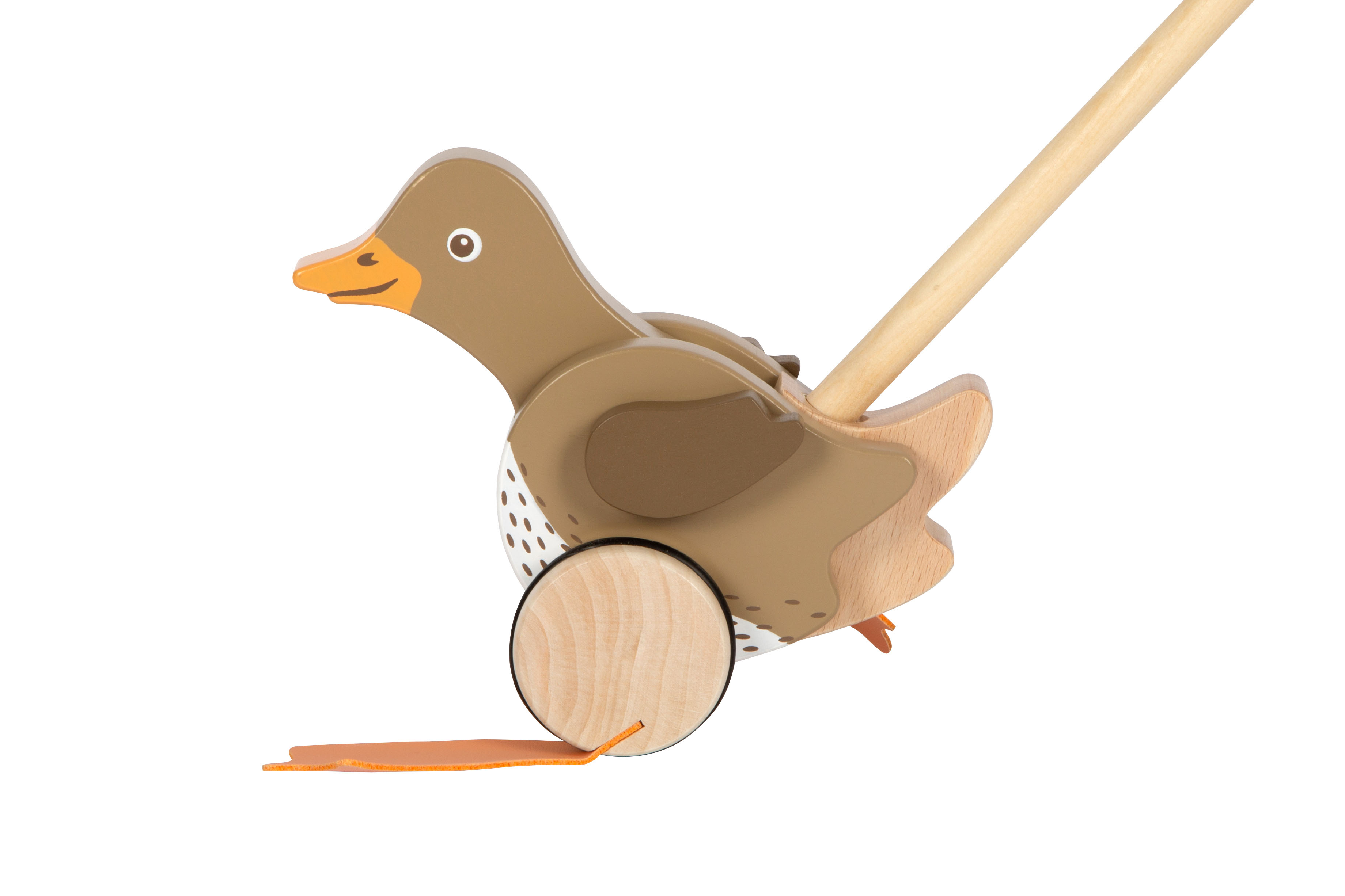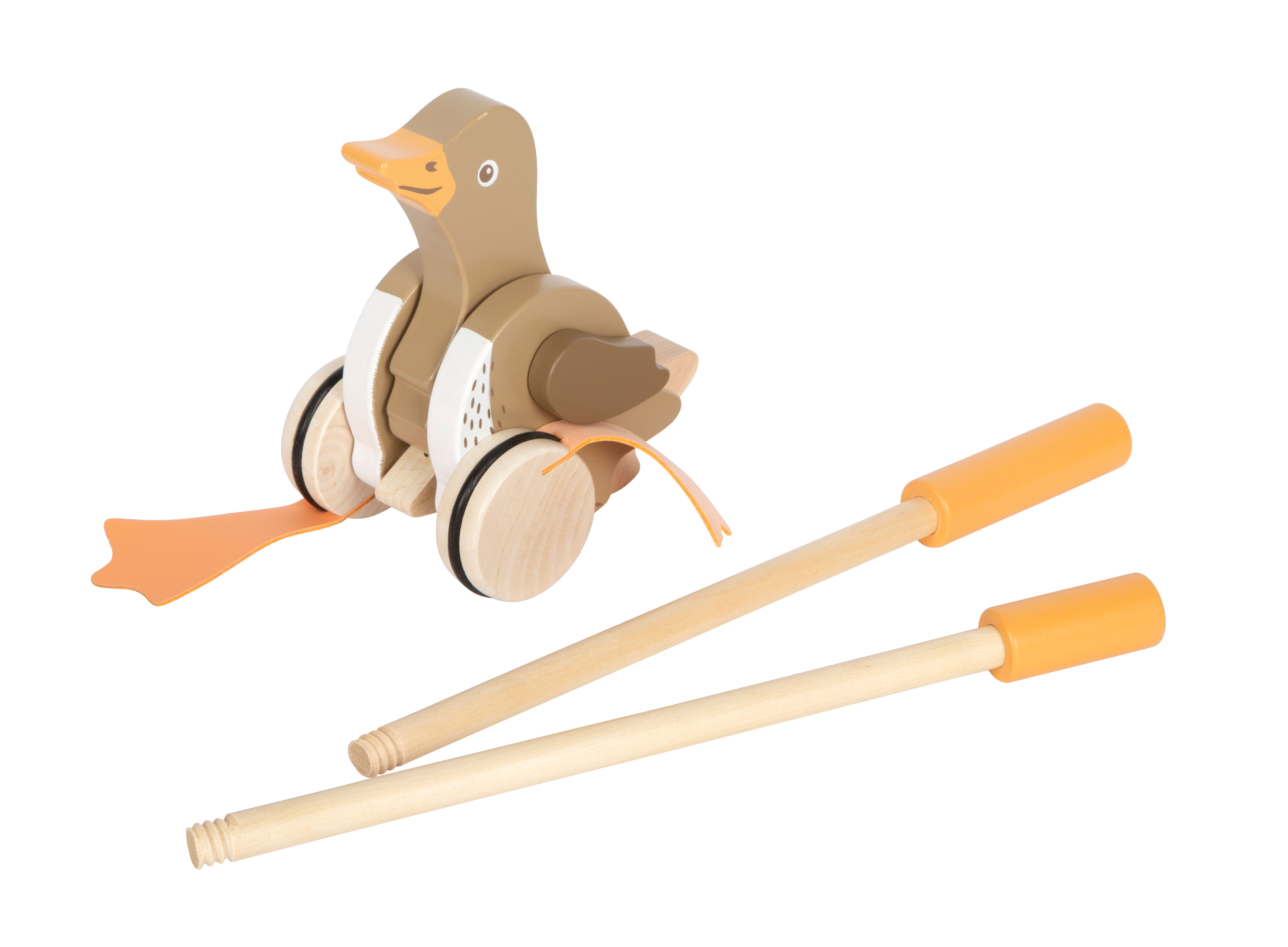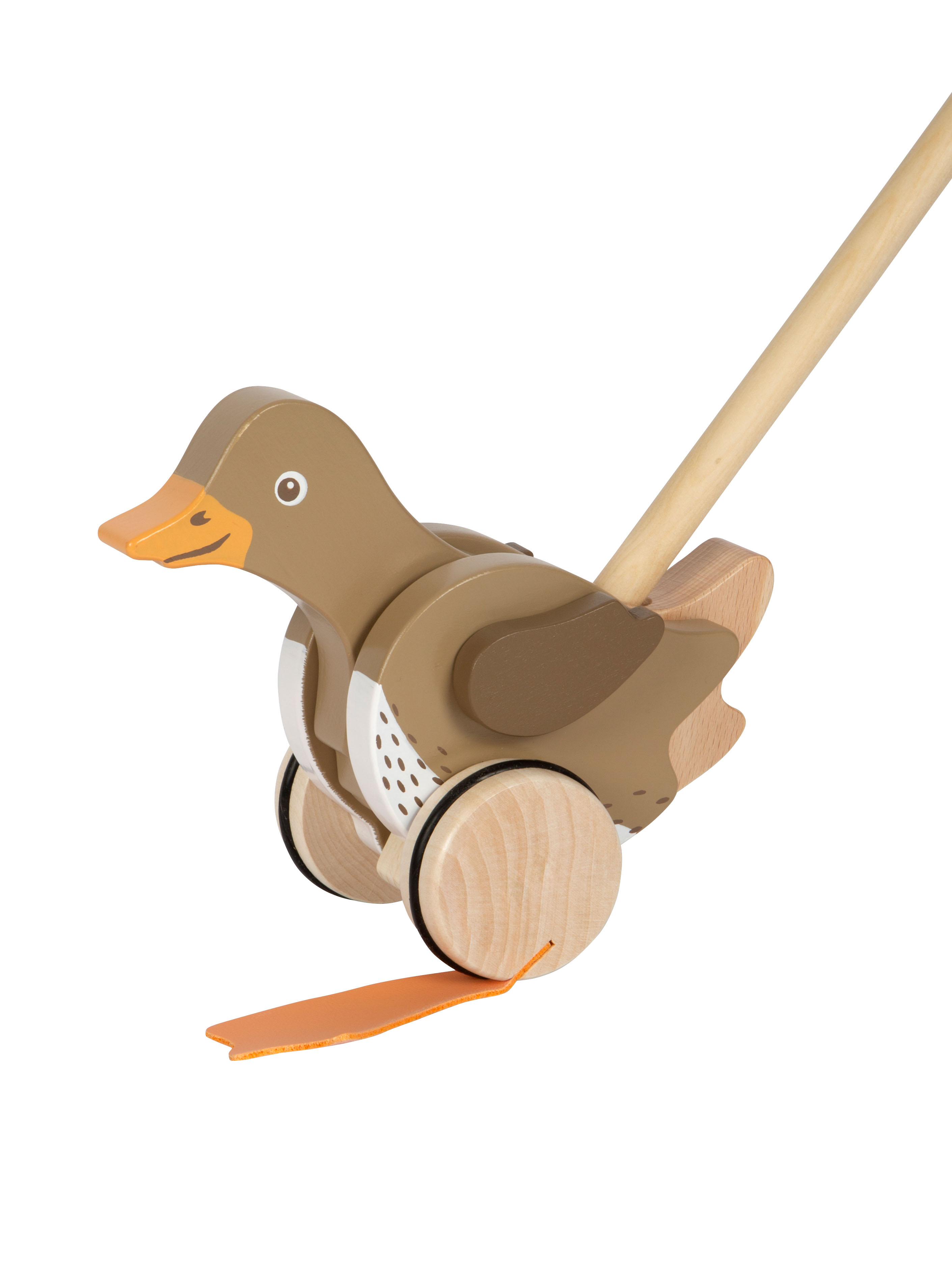 Ein amüsierendes Holzspielzeug für die Kleinen und ein treuer Begleiter auf jedem Spaziergang! Mit für Kinderhände gut zu greifendem Griff und in der Mitte teilbarem Schiebestab.