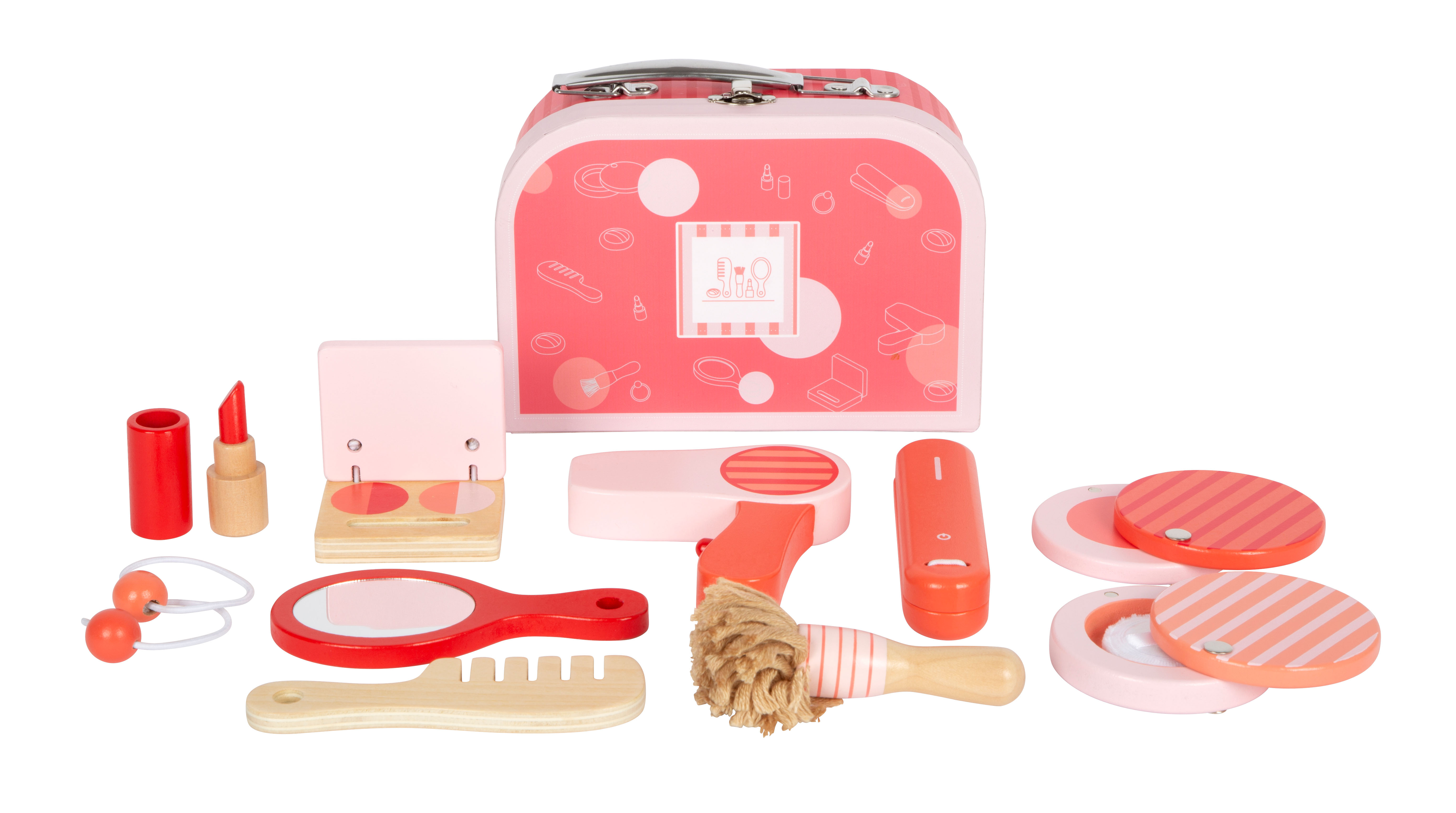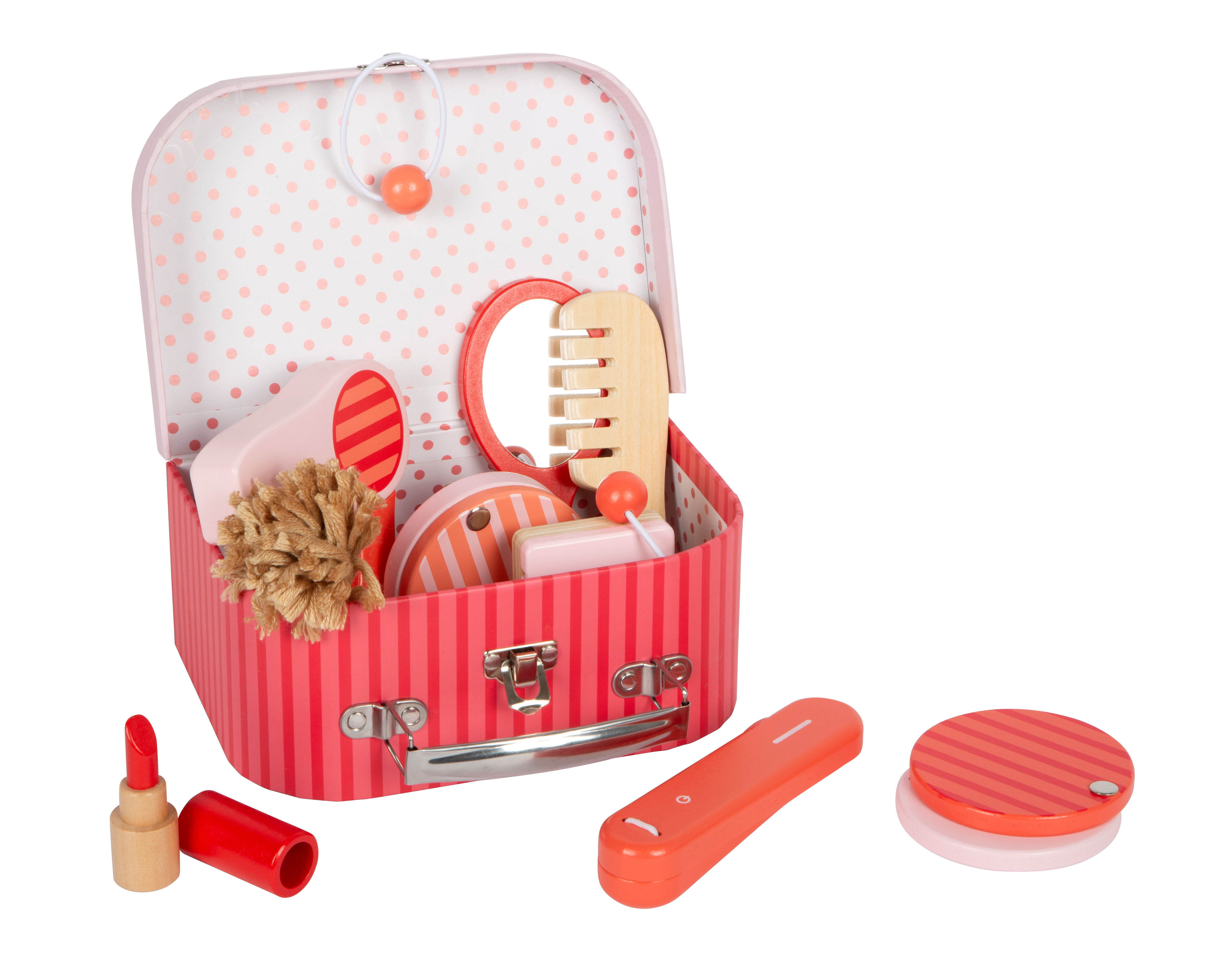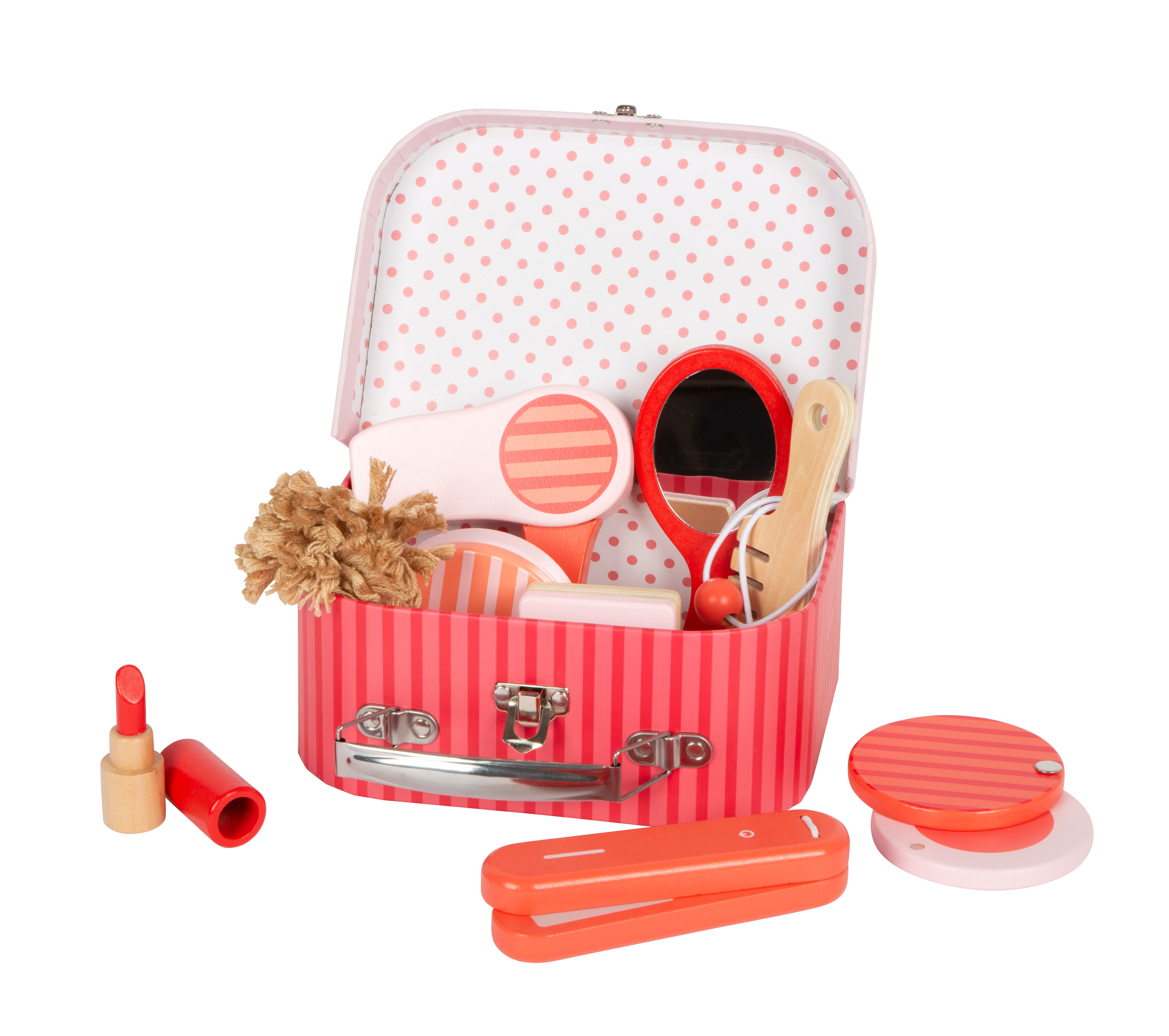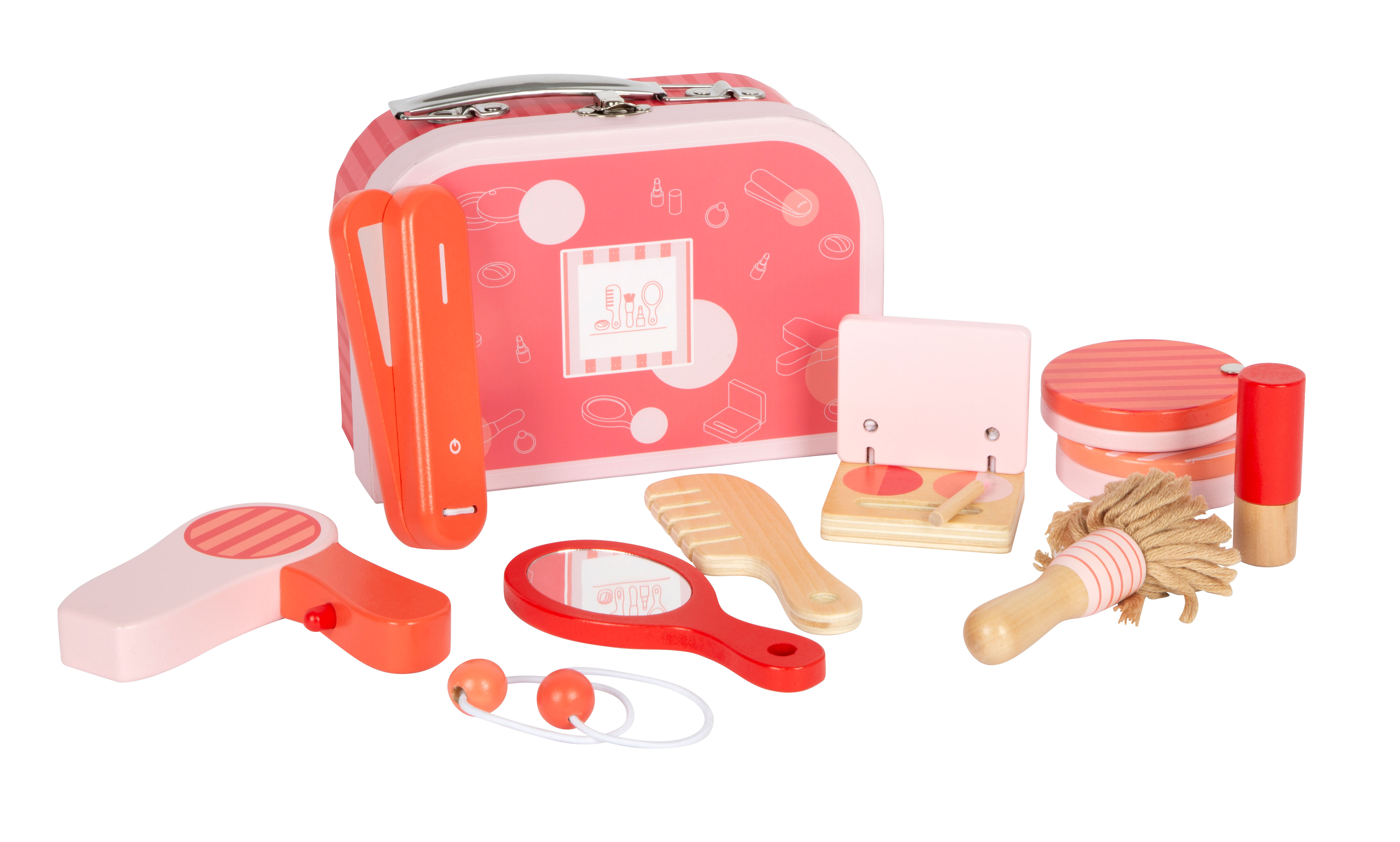 Endlich stylen und schminken wie Mama. Gummischarniere am Koffer sorgen dafür, dass im Eifer des Gefechts kein Finger eingeklemmt wird. In dem Koffer ist genügend Platz, um alle Utensilien sicher aufzubewahren. Das Schminkset fördert das kindliche Rollenspiel und lässt Mädchenträume wahr werden.