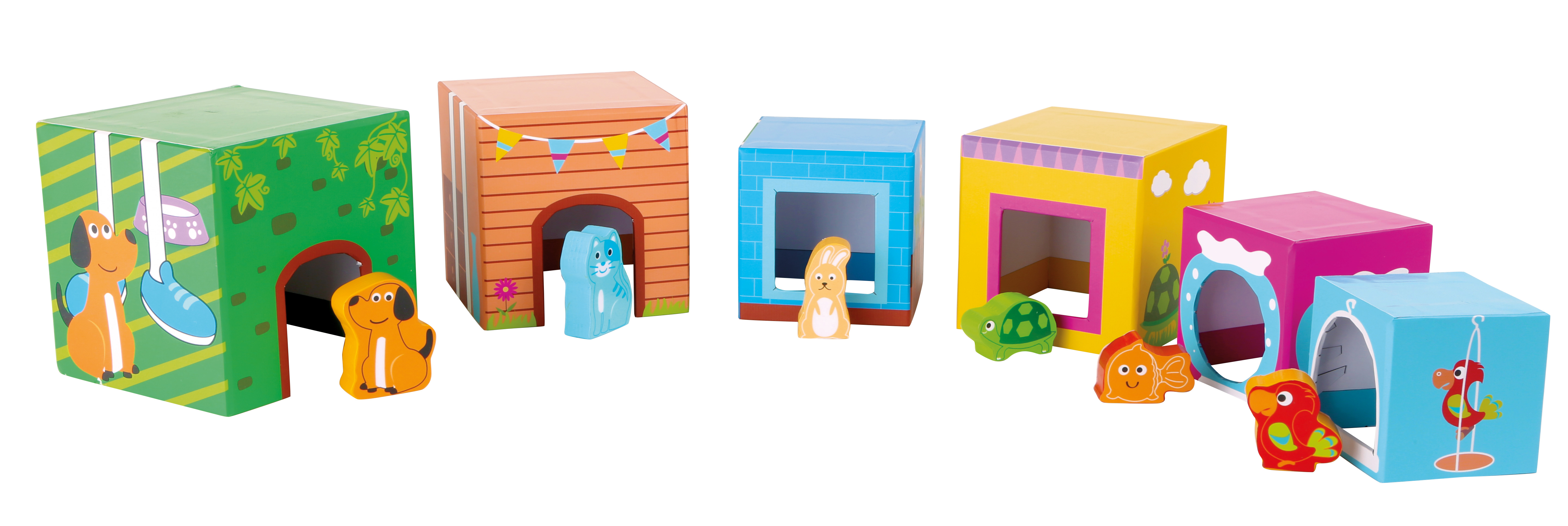 Produktinformationen "Stapelwürfel mit Figuren Haustiere"